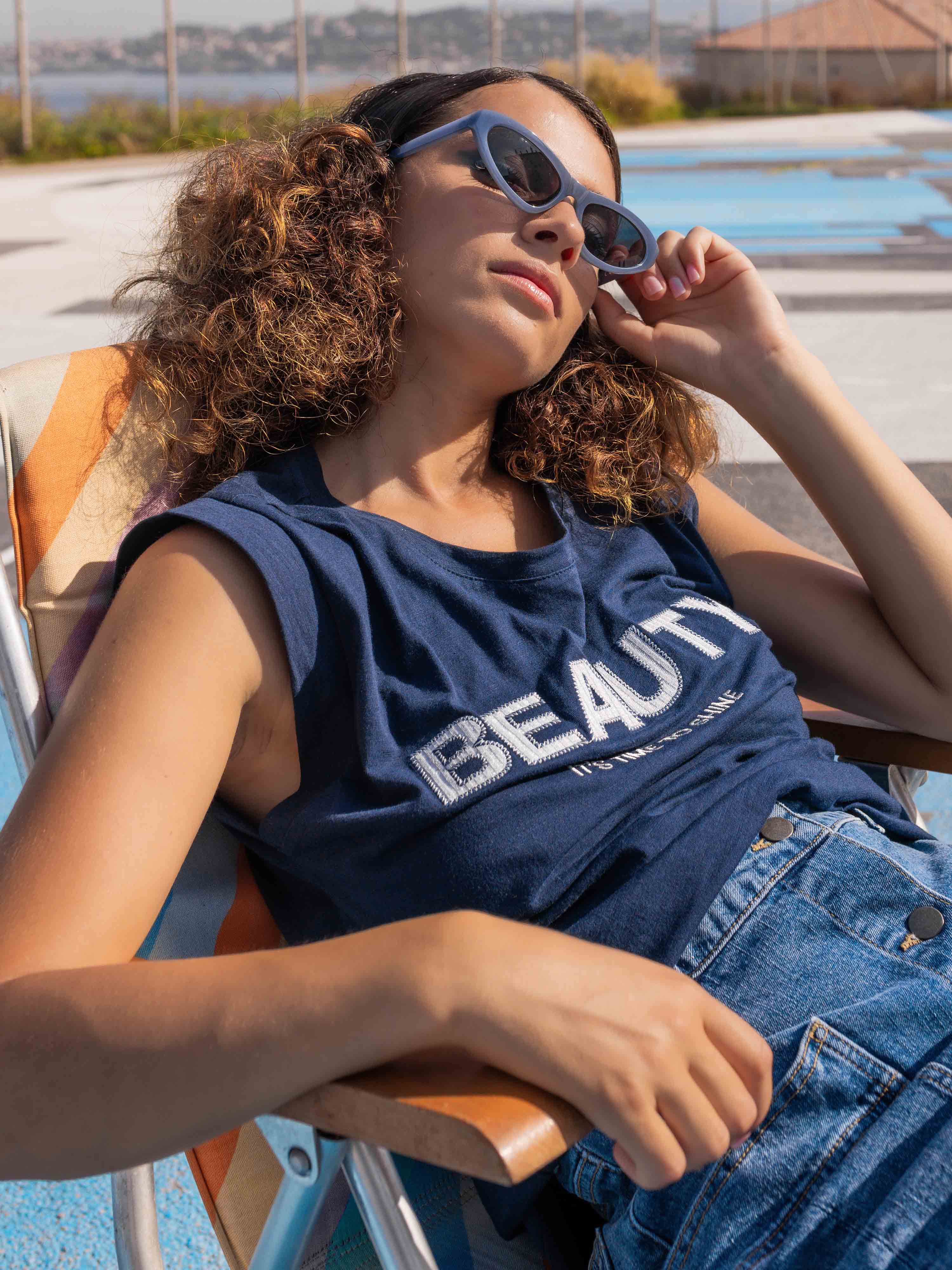 Normale Größe. Wir empfehlen Ihnen, Ihre übliche Größe zu nehmen. Mélina ist 1,70 m groß und trägt Größe 1. Johanna ist 1,74 m groß und trägt Größe 1.