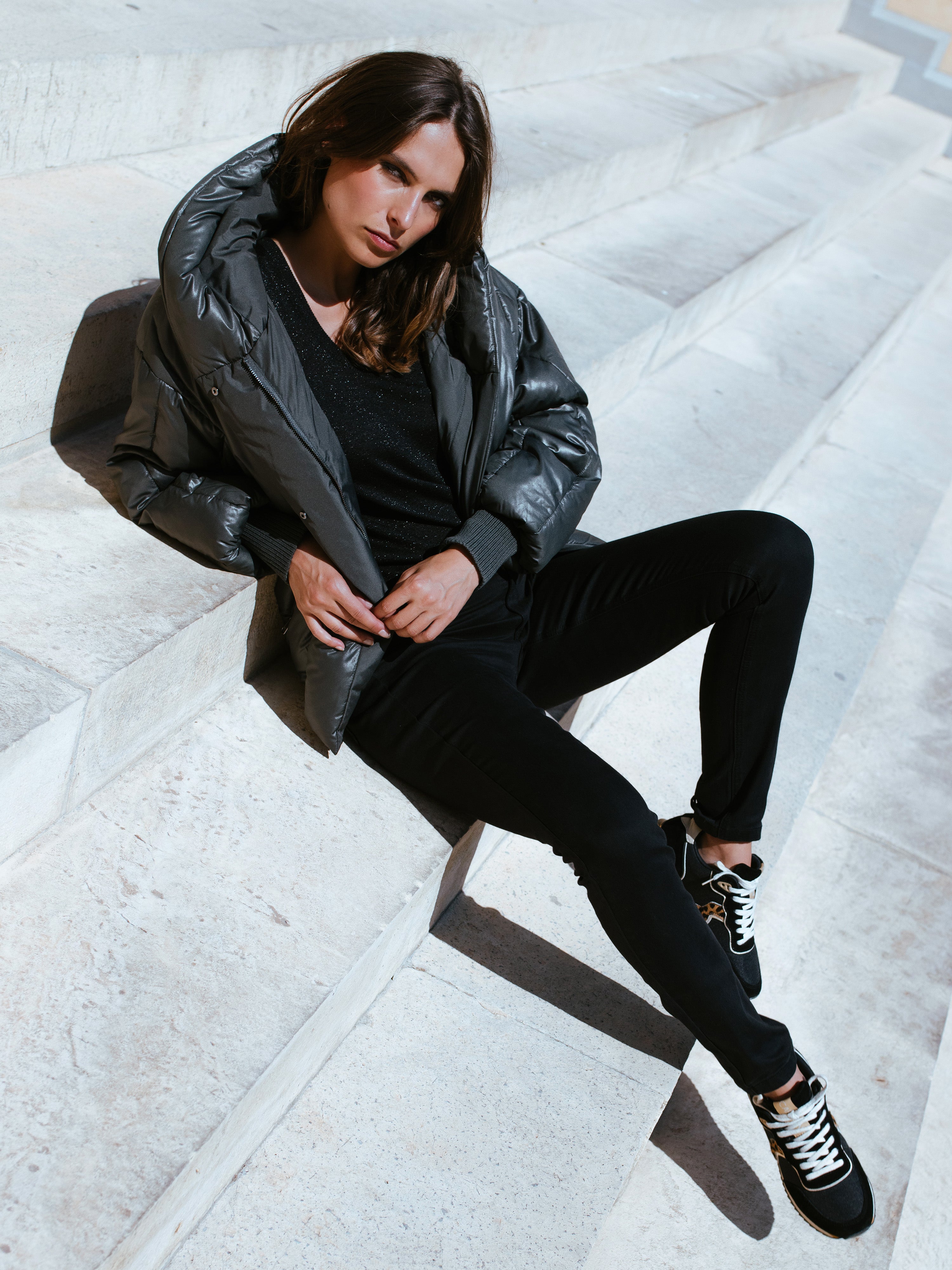 Normale Größe. Wir empfehlen Ihnen, Ihre übliche Größe zu nehmen. Clarisse ist 1,76 m groß und trägt Größe 1. Mailys ist 1,72 m groß und trägt Größe 0.