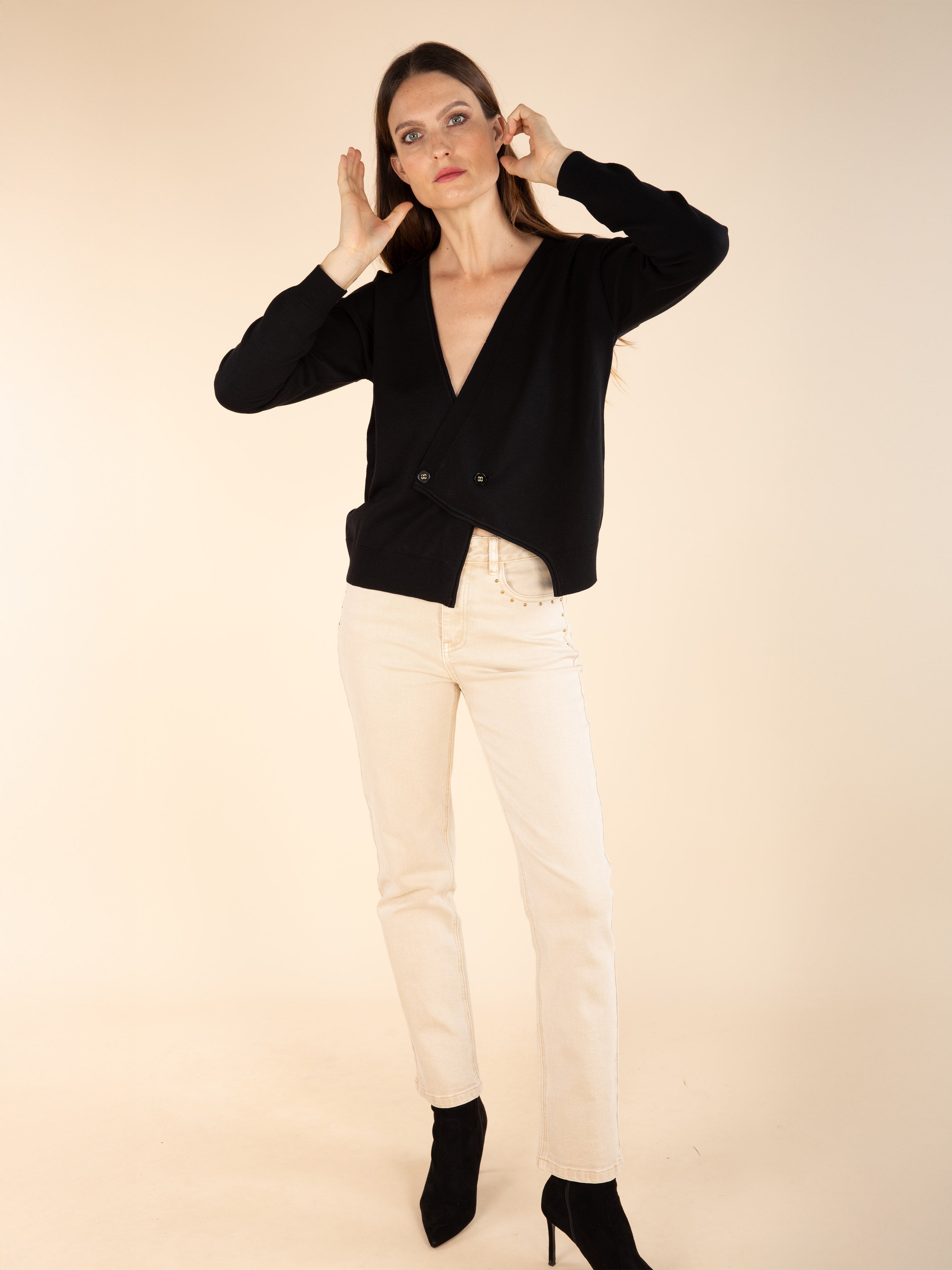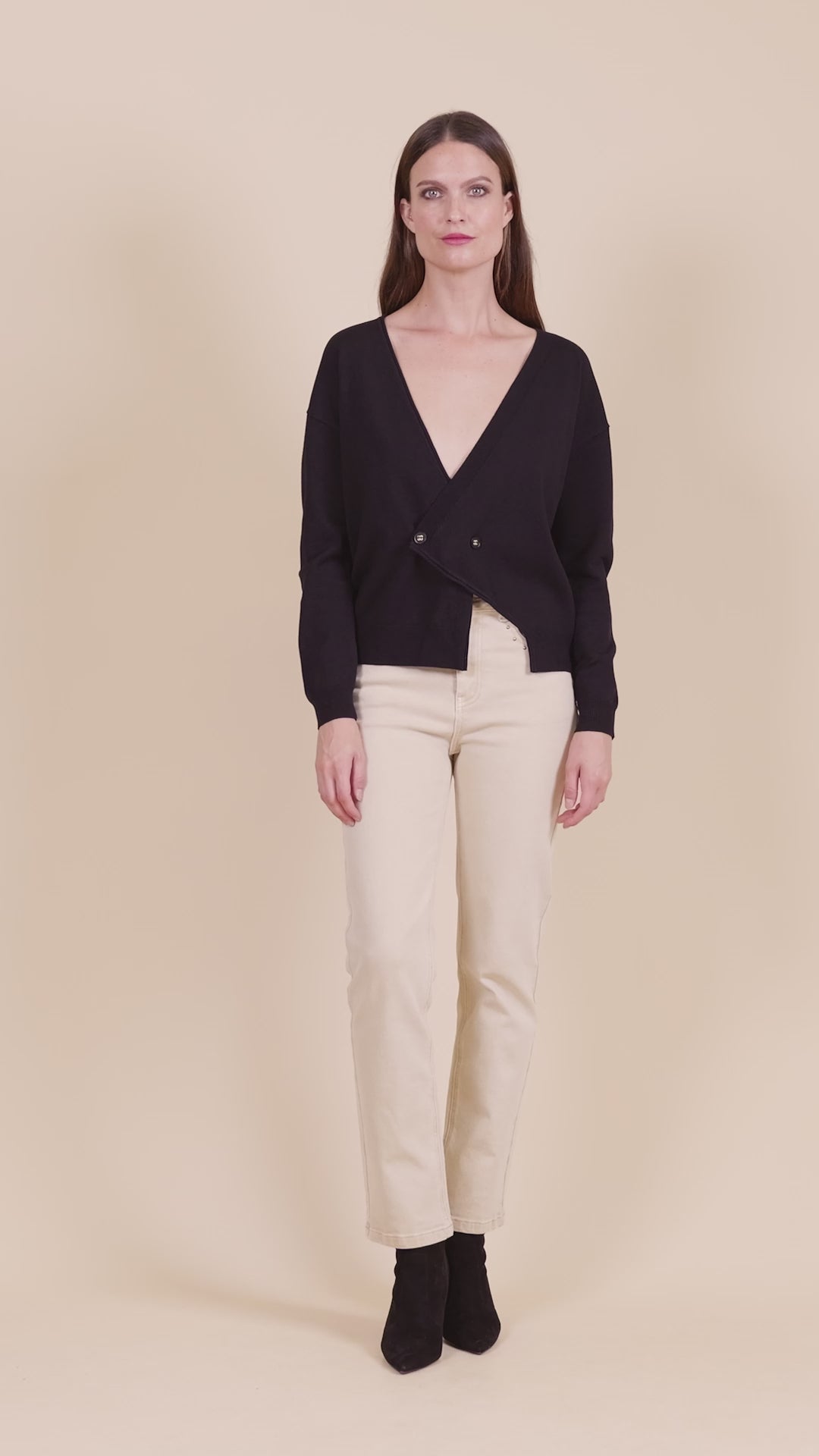 Craquez pour ce cardigan croisé à double boutonnage, alliant élégance et confort dans un style moderne et féminin.