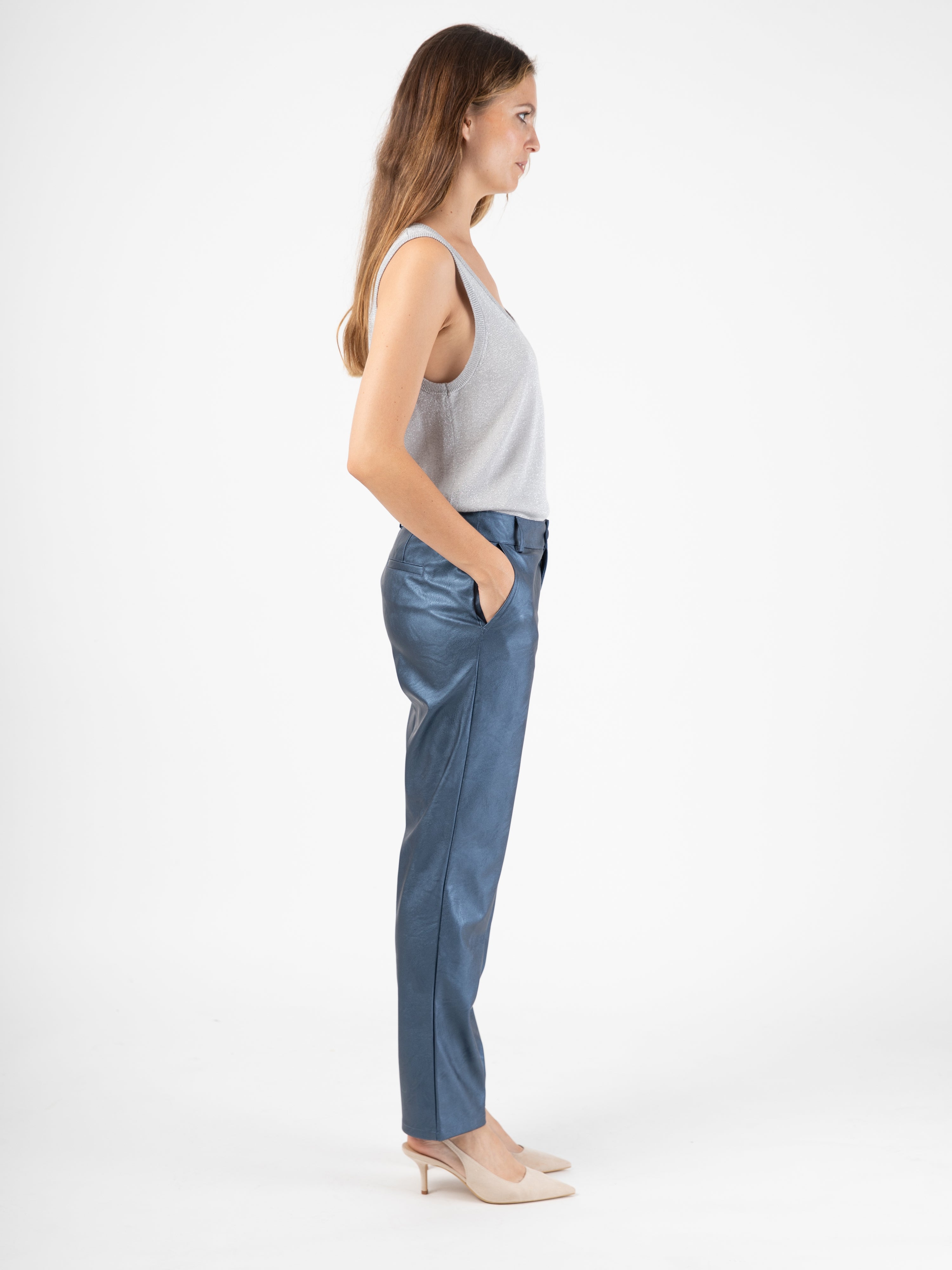 Diese Kunstlederhose vereint Komfort und Kühnheit für einen entschieden modernen Look. Sein gerader Schnitt und die Paspeltaschen verleihen ihm einen schicken und praktischen Touch.