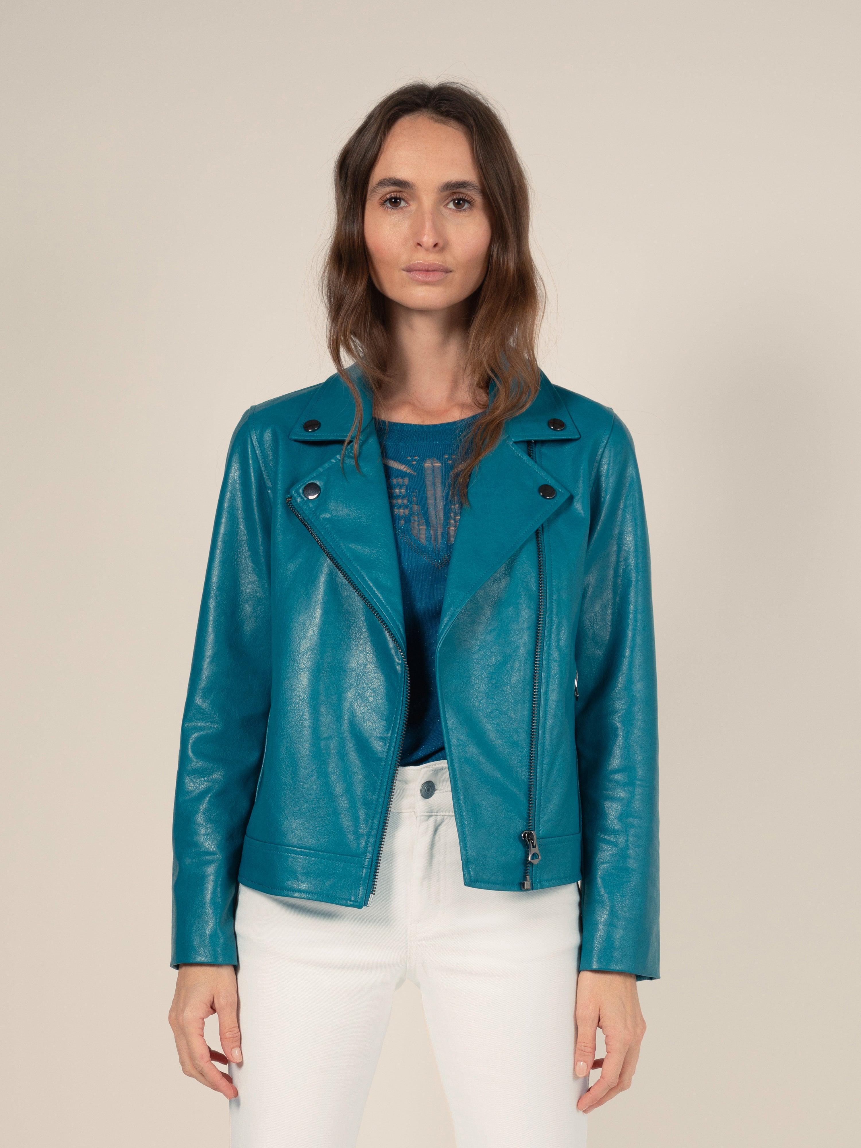 Für eine taillierte Passform empfehlen wir Ihnen, Ihre übliche Größe zu nehmen, für eine bequeme Passform nehmen Sie die oben angegebene Größe. Pauline ist 1,73m groß und trägt Größe 34. Mailys ist 1,72 m groß und trägt Größe 34.