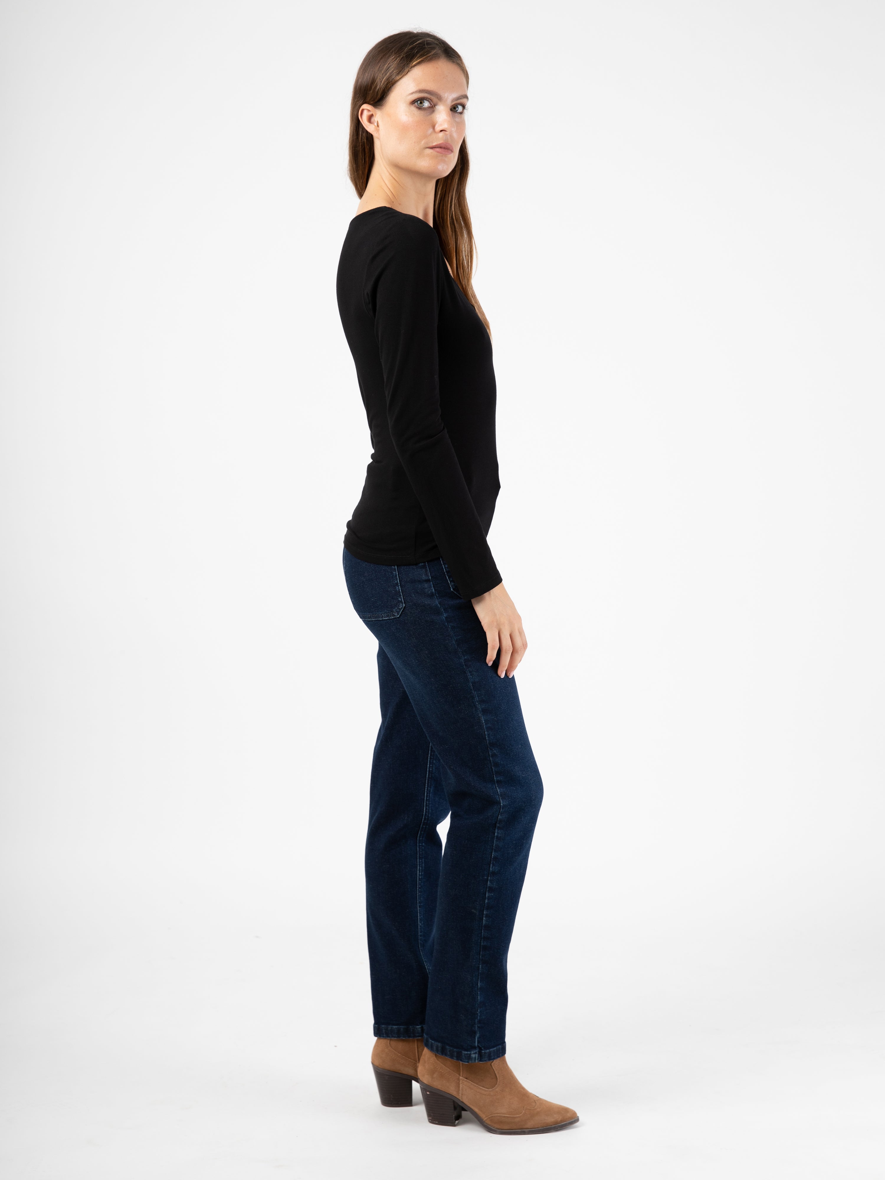 Normale Größe. Wir empfehlen Ihnen, Ihre übliche Größe zu nehmen. Johanna ist 1,74 m groß und trägt Größe 0.