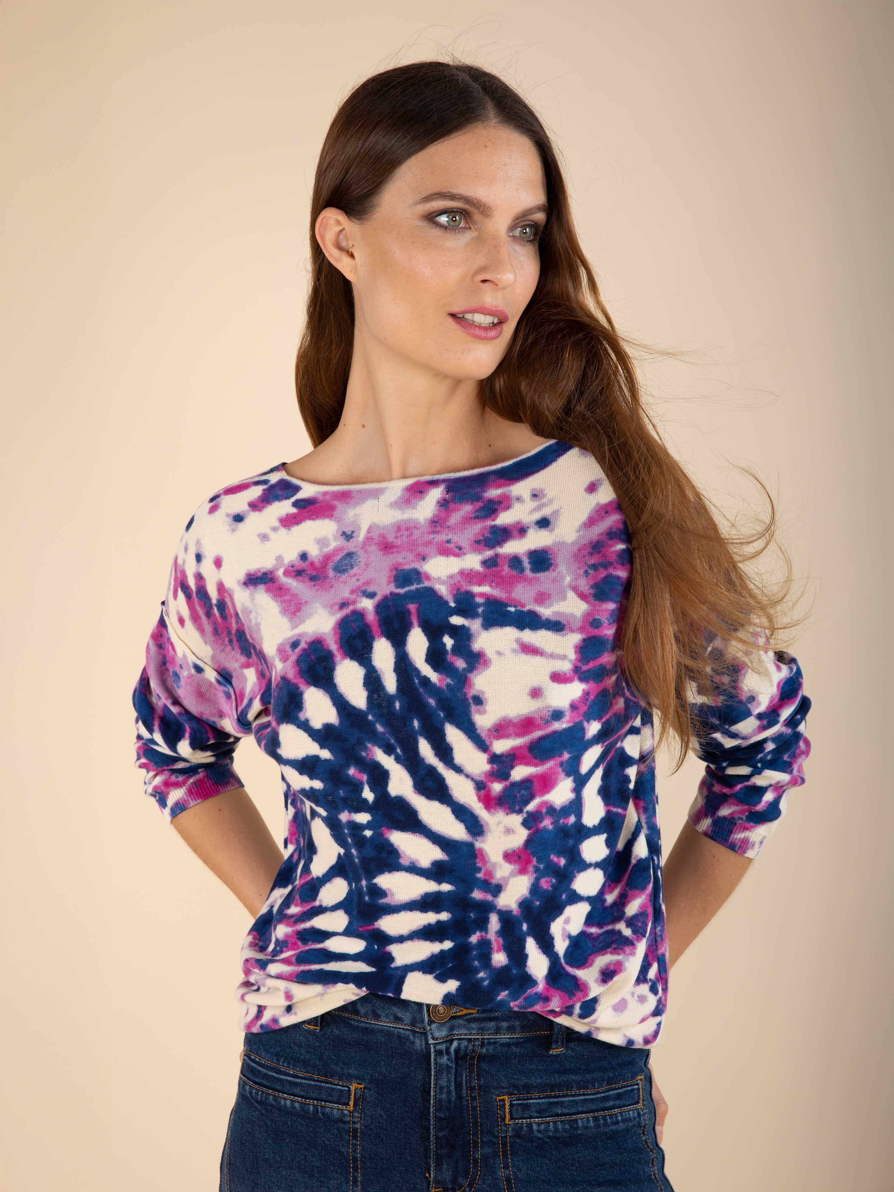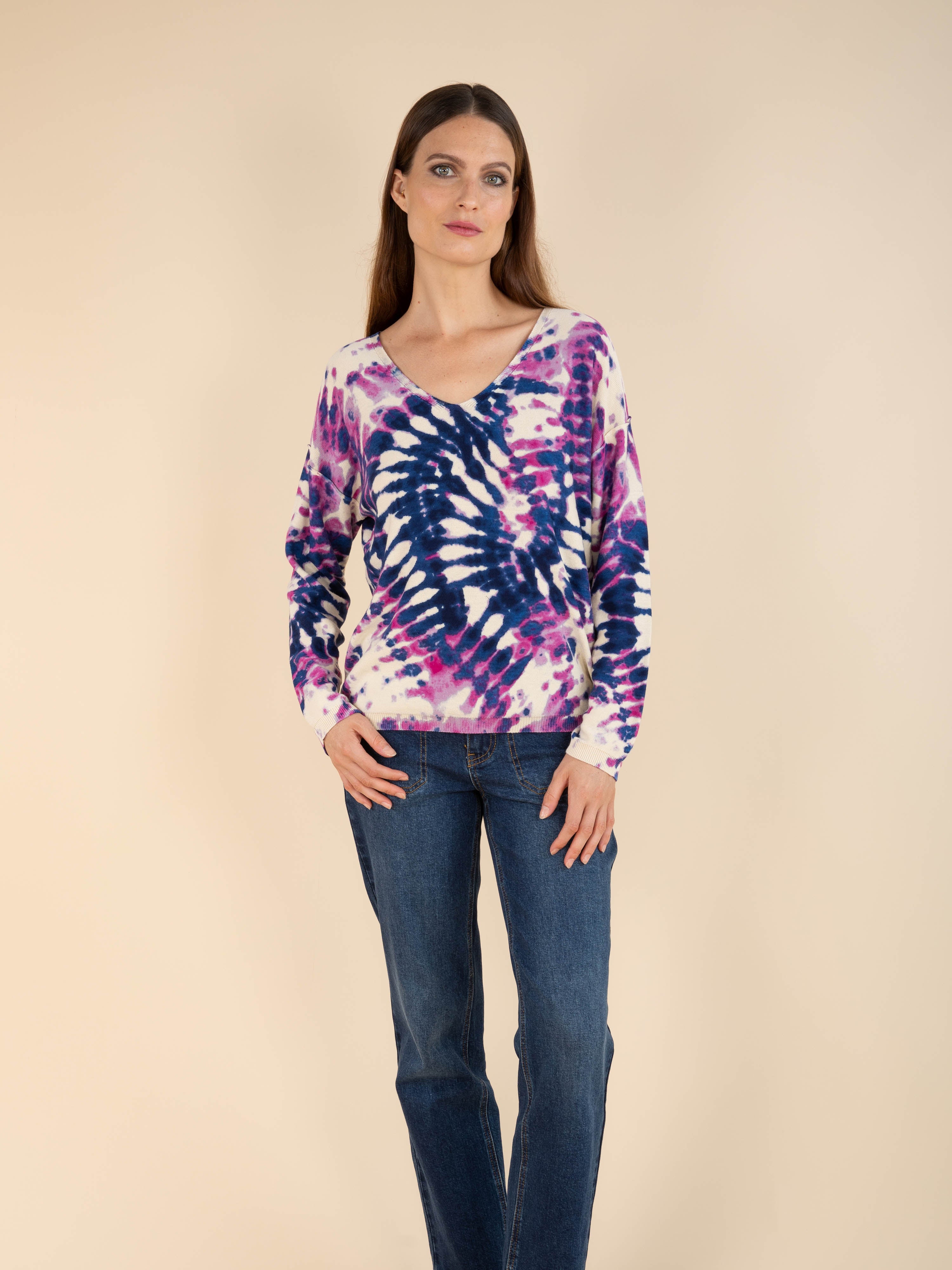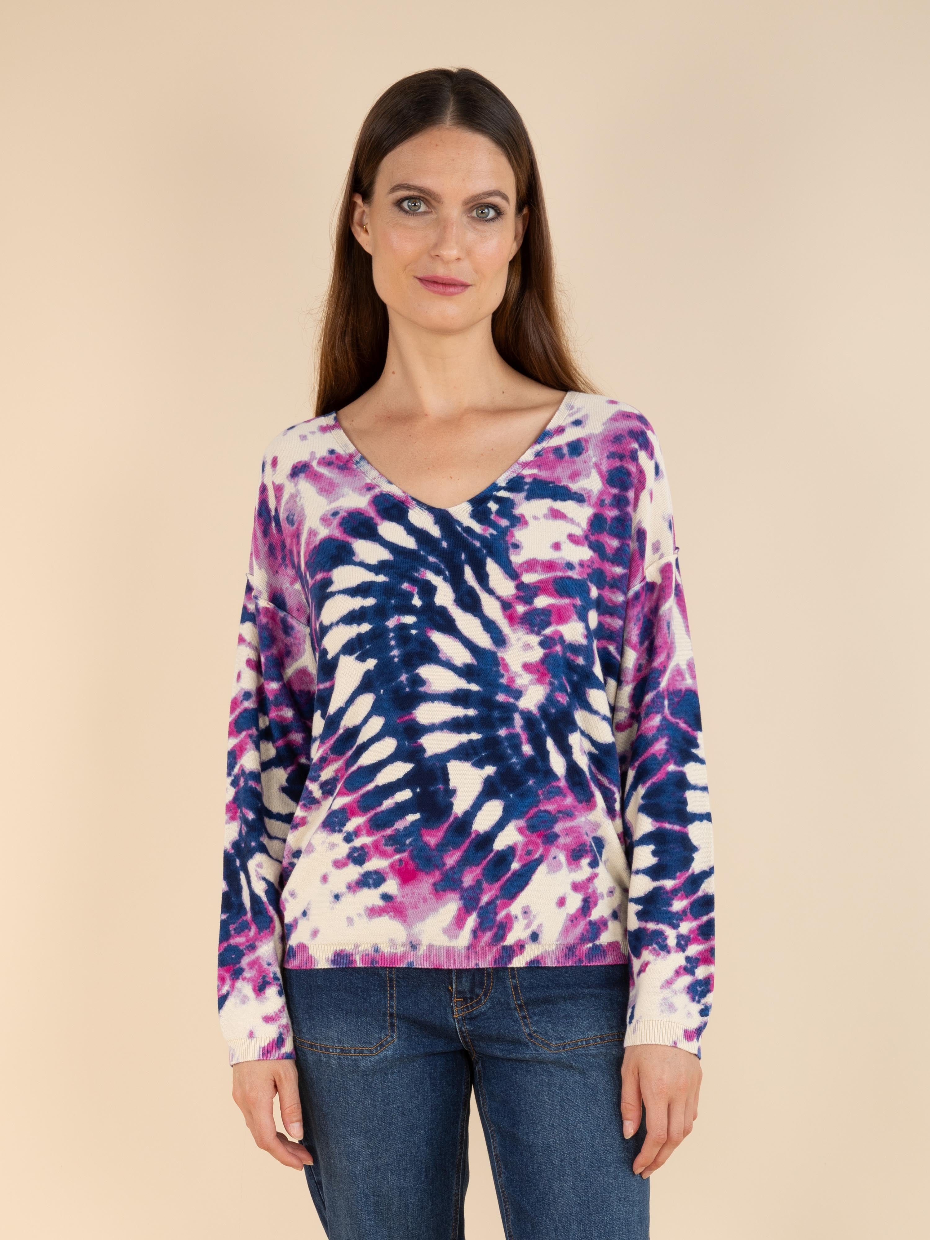 Craquez pour ce pull tie & dye à encolure V, parfait pour une allure décontractée et tendance avec sa coupe V et ses finitions en bord-côte.