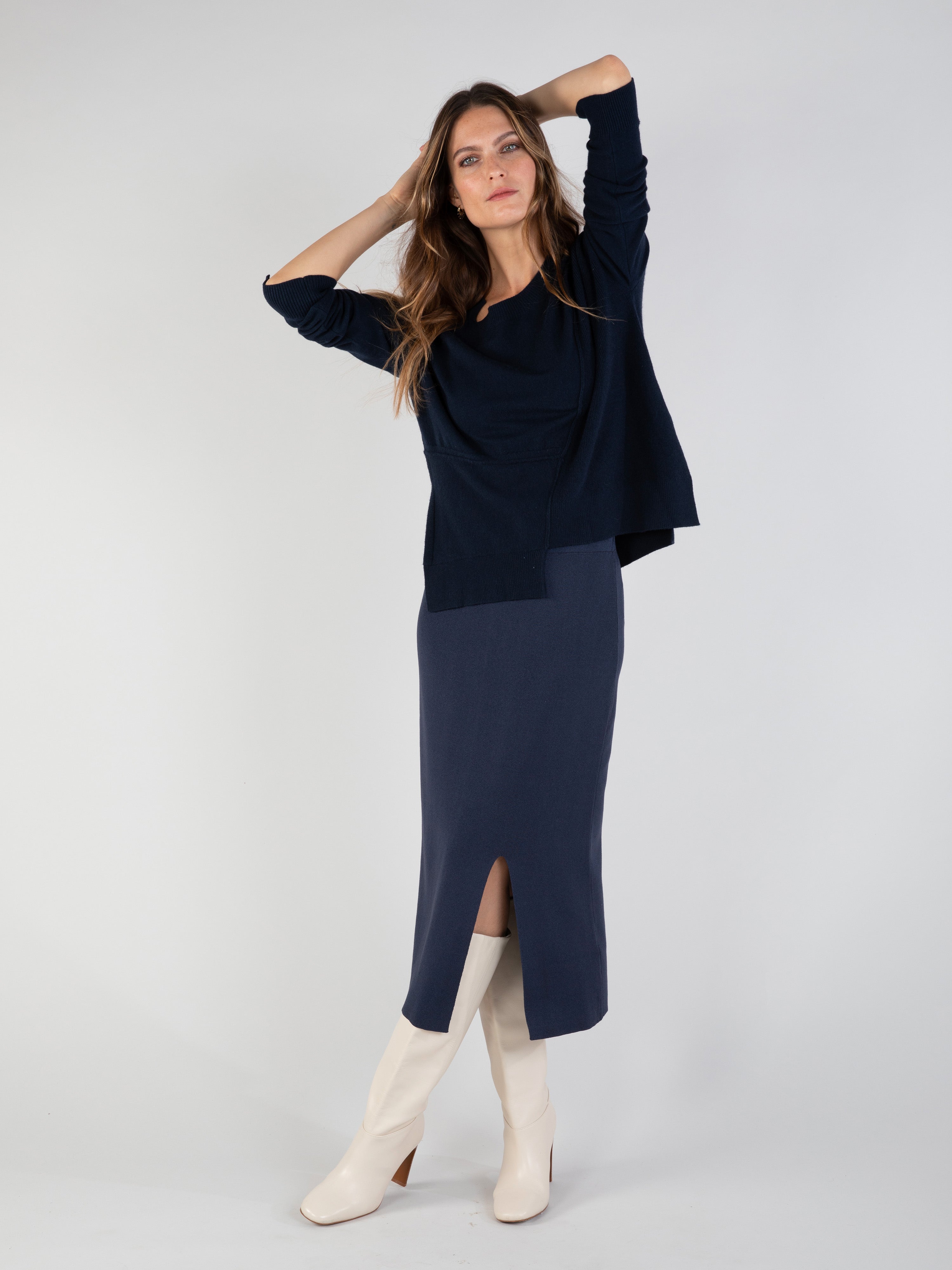 Ein Netzrock, der mit seinem figurbetonten Schnitt und dem glamourösen Schlitz auf der Vorderseite Ihre Kurven betont. Bequem und stilvoll zugleich, ist es der perfekte Verbündete für Ihren Alltagslook oder um am Abend zu glänzen. Einfach, aber so effektiv!