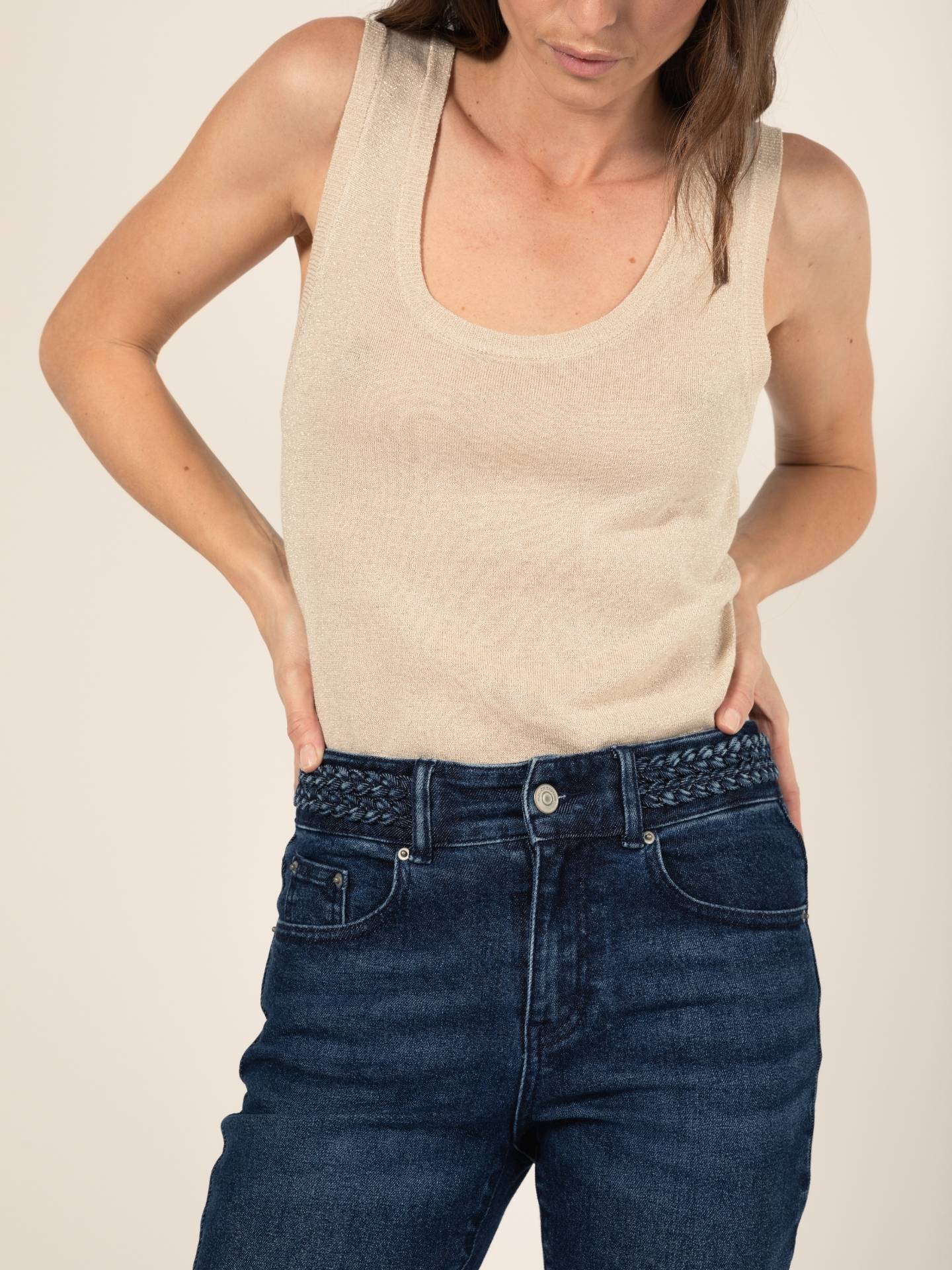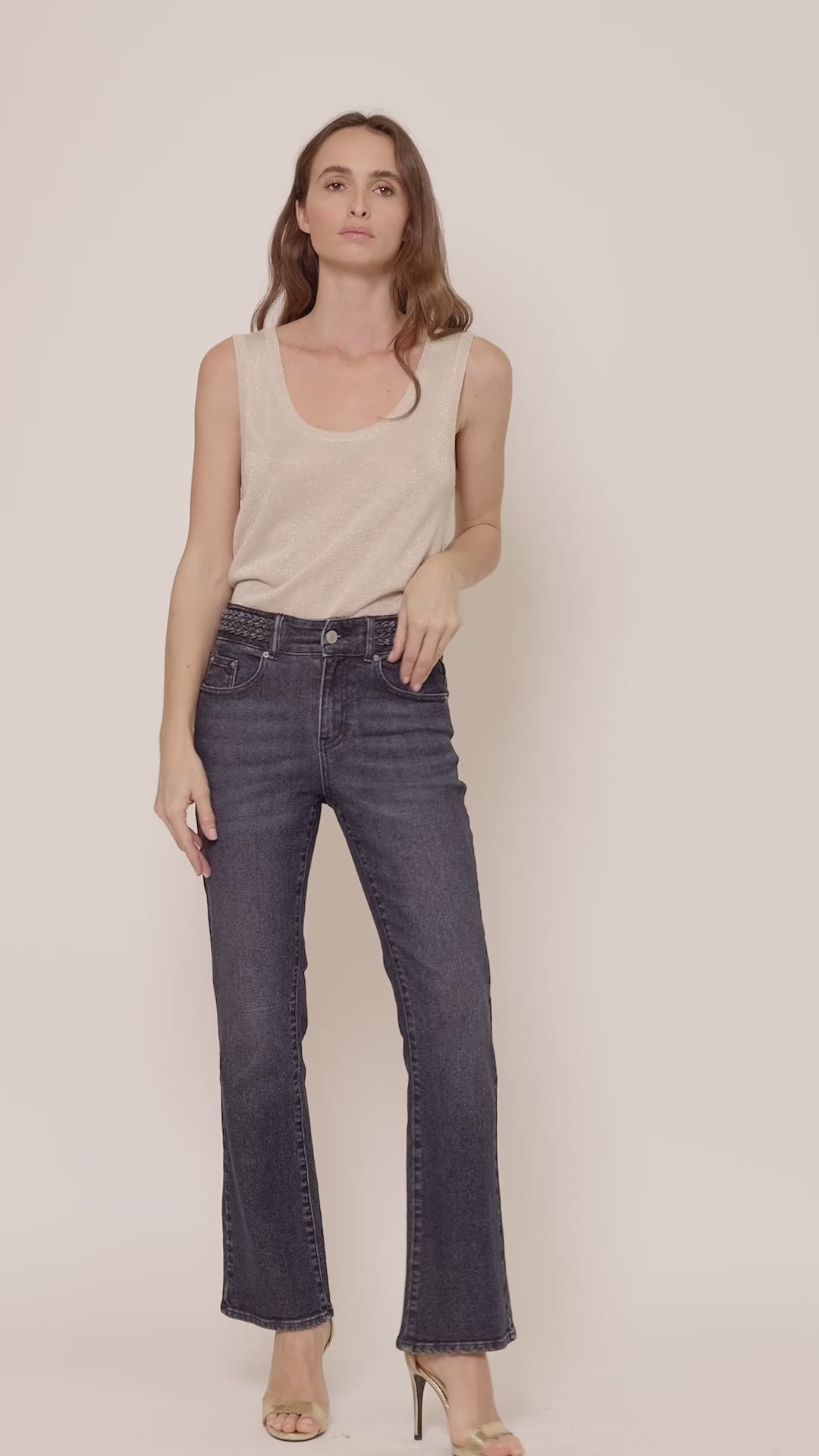 Aufgesetzte Gesäßtaschen mit Lurexstickerei
