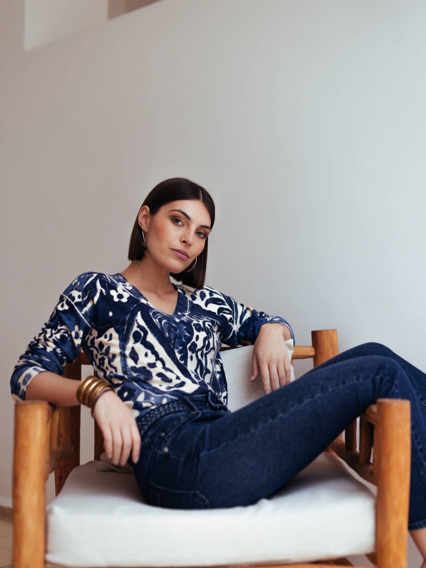 Normale Größe. Wir empfehlen Ihnen, Ihre übliche Größe zu nehmen. Pauline ist 1,73m groß und trägt Größe 34. Mailys ist 1,72m groß und trägt Größe 34.