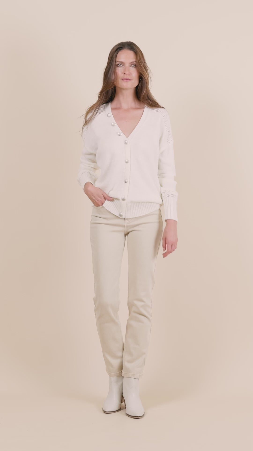 Optez pour ce cardigan réverso en laine mélangée, au tricotage ajouré raffiné et à l’encolure V pleine de douceur.
