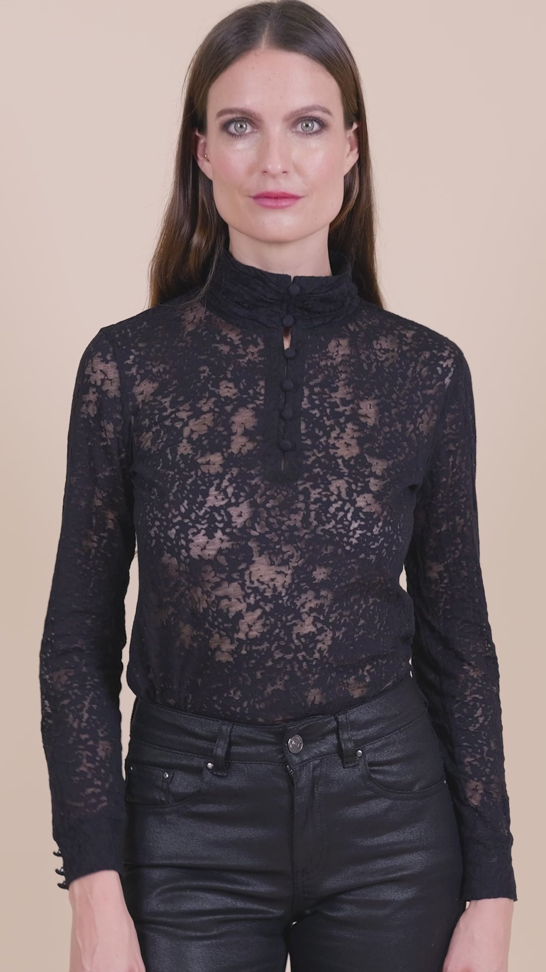 Optez pour ce t-shirt en jersey imprimé, sublimé par son col drapé et ses manches boutonnées pour un style chic et féminin.