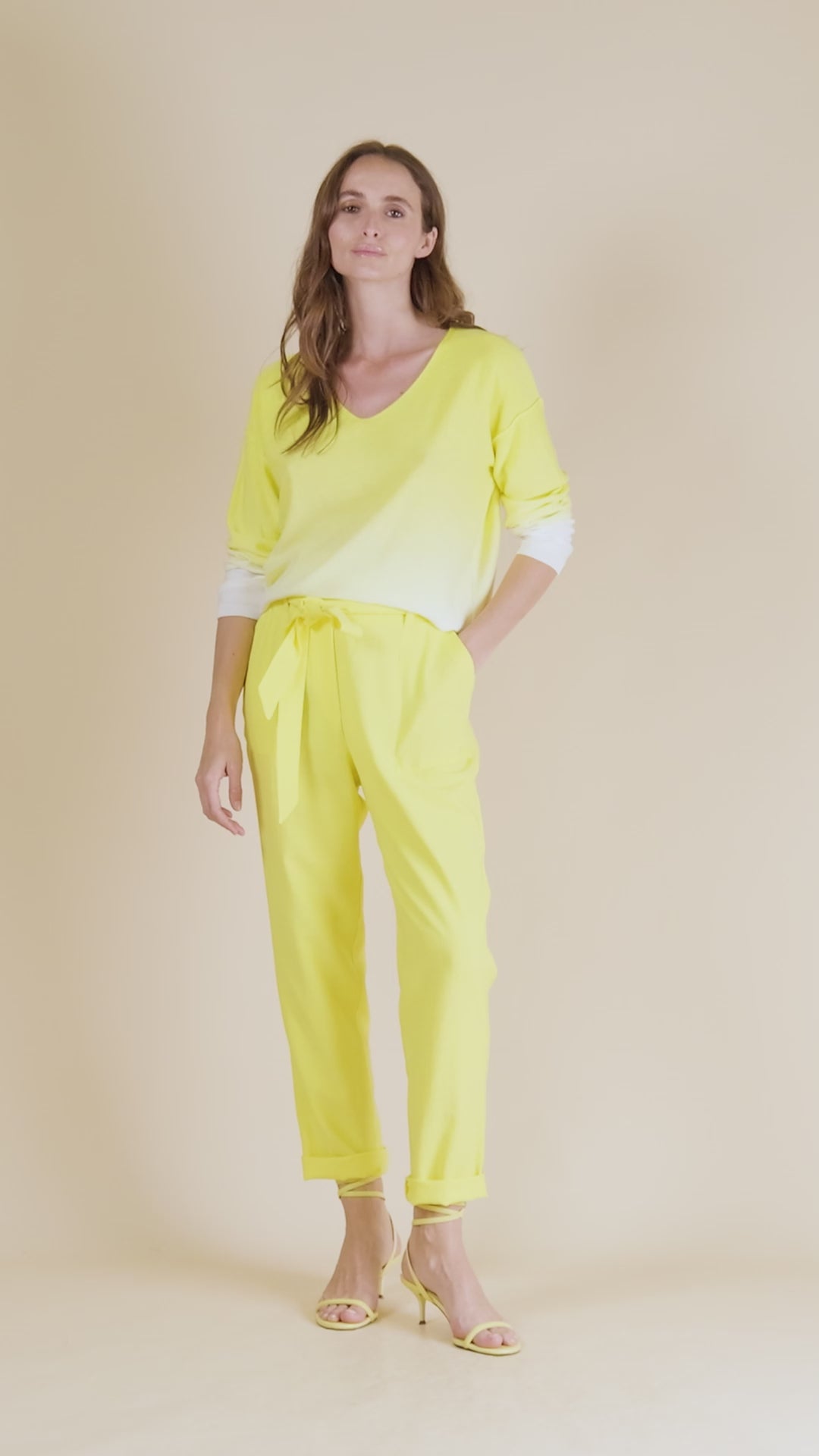 Ce pull fin à l'imprimé dégradé subtil et raffiné apporte une touche de style unique. L'encolure V et les épaules descendues offrent une silhouette décontractée et élégante.