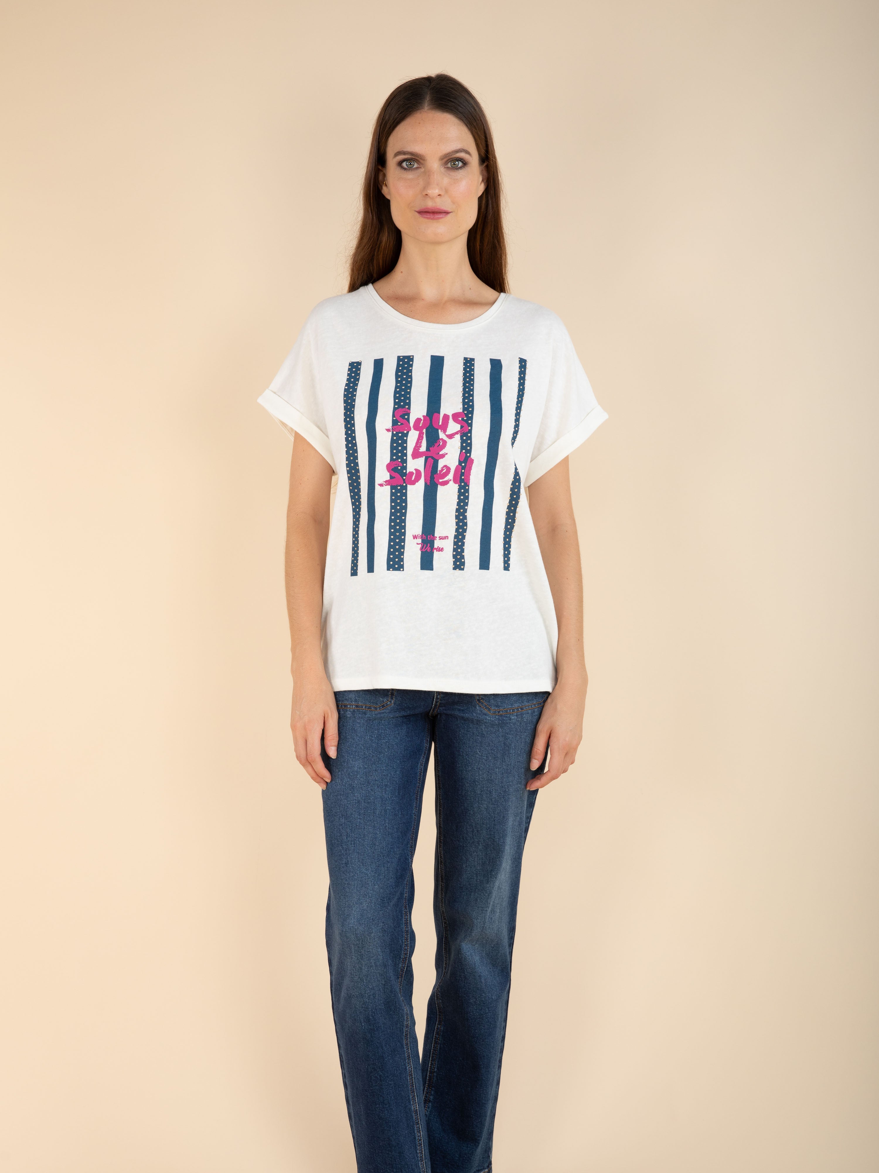 Misez sur l’allure casual-chic de ce t-shirt en jersey effet lin, parfait avec un jean ou une jupe pour un look décontracté et tendance.
