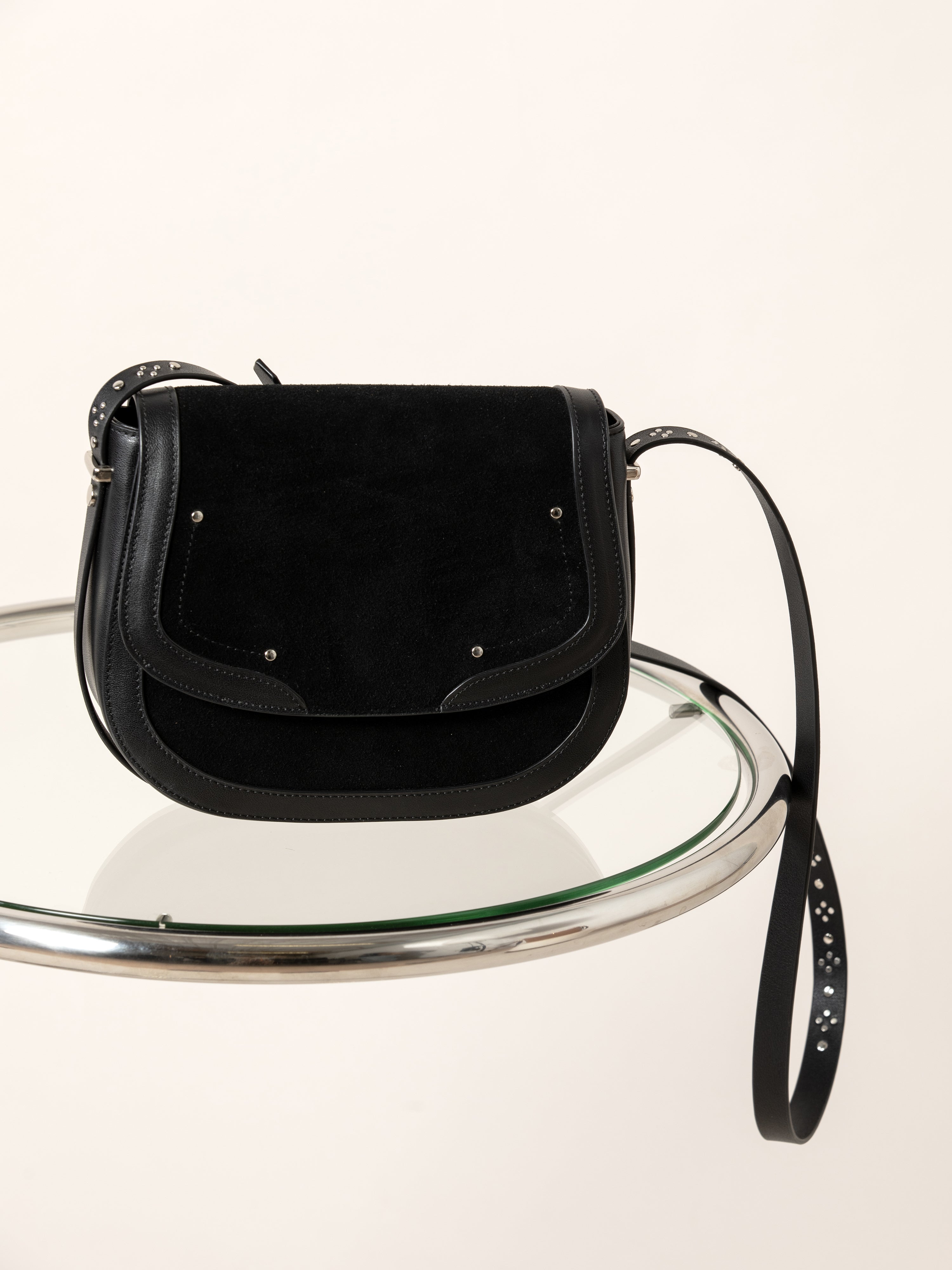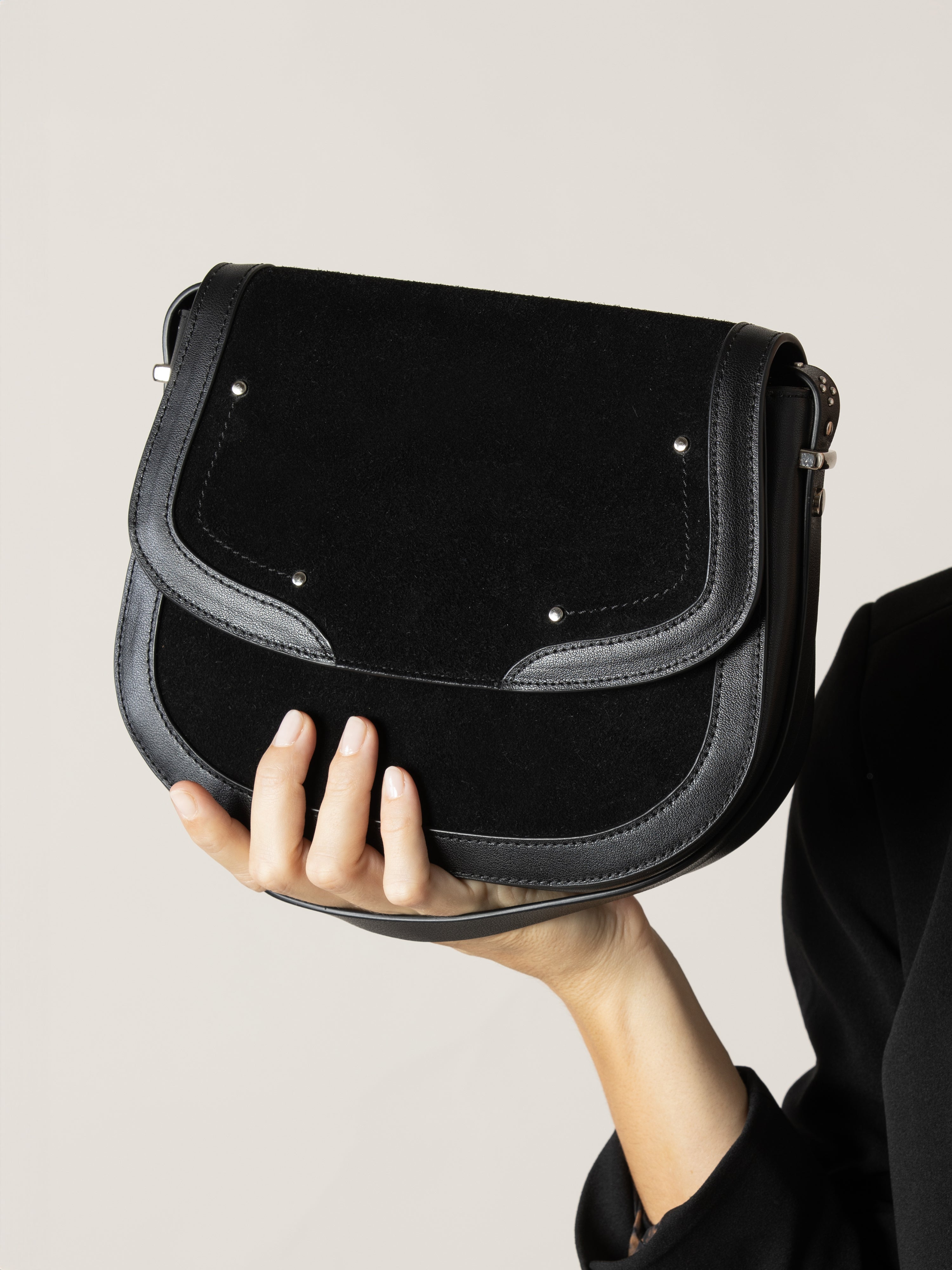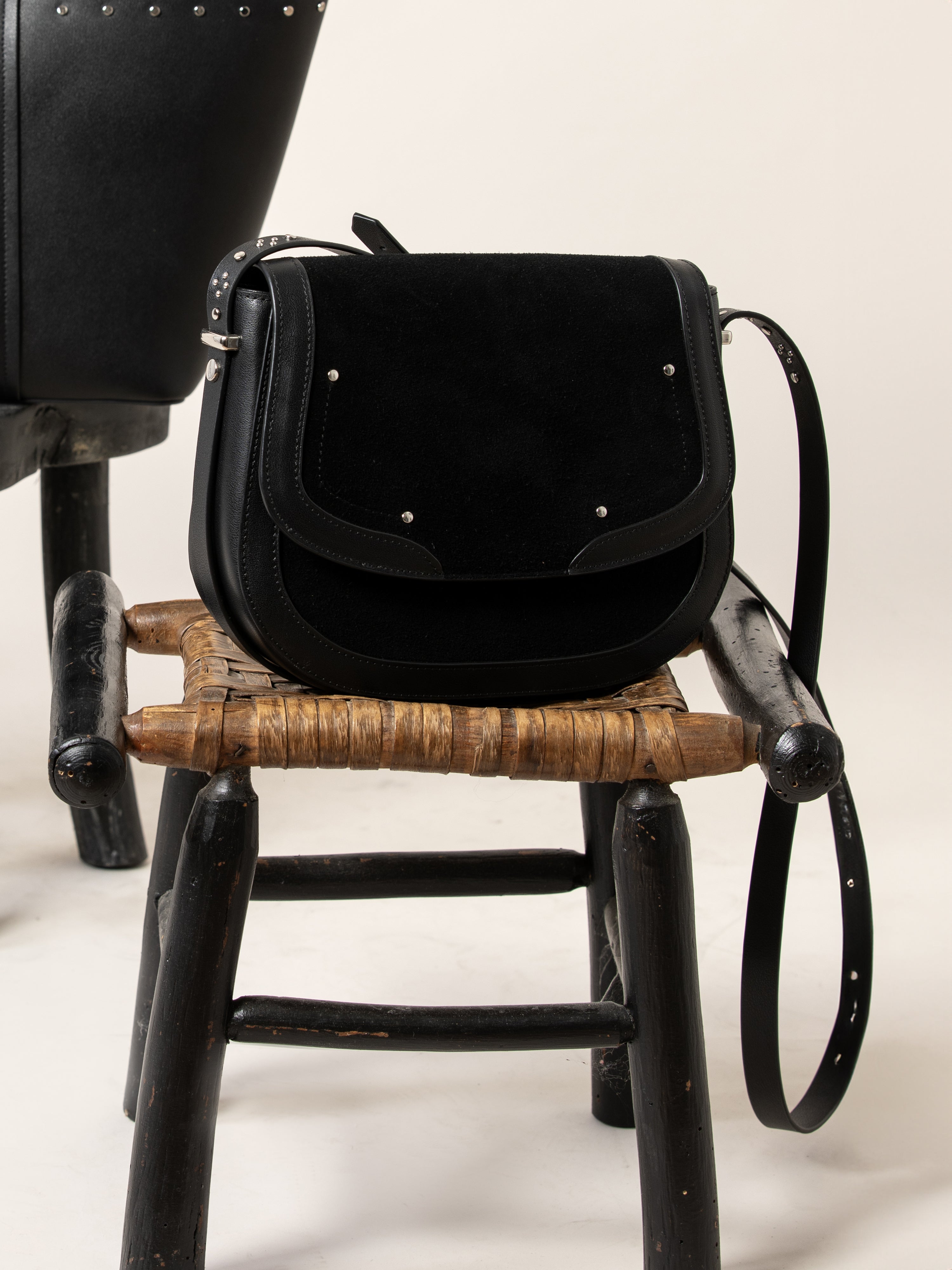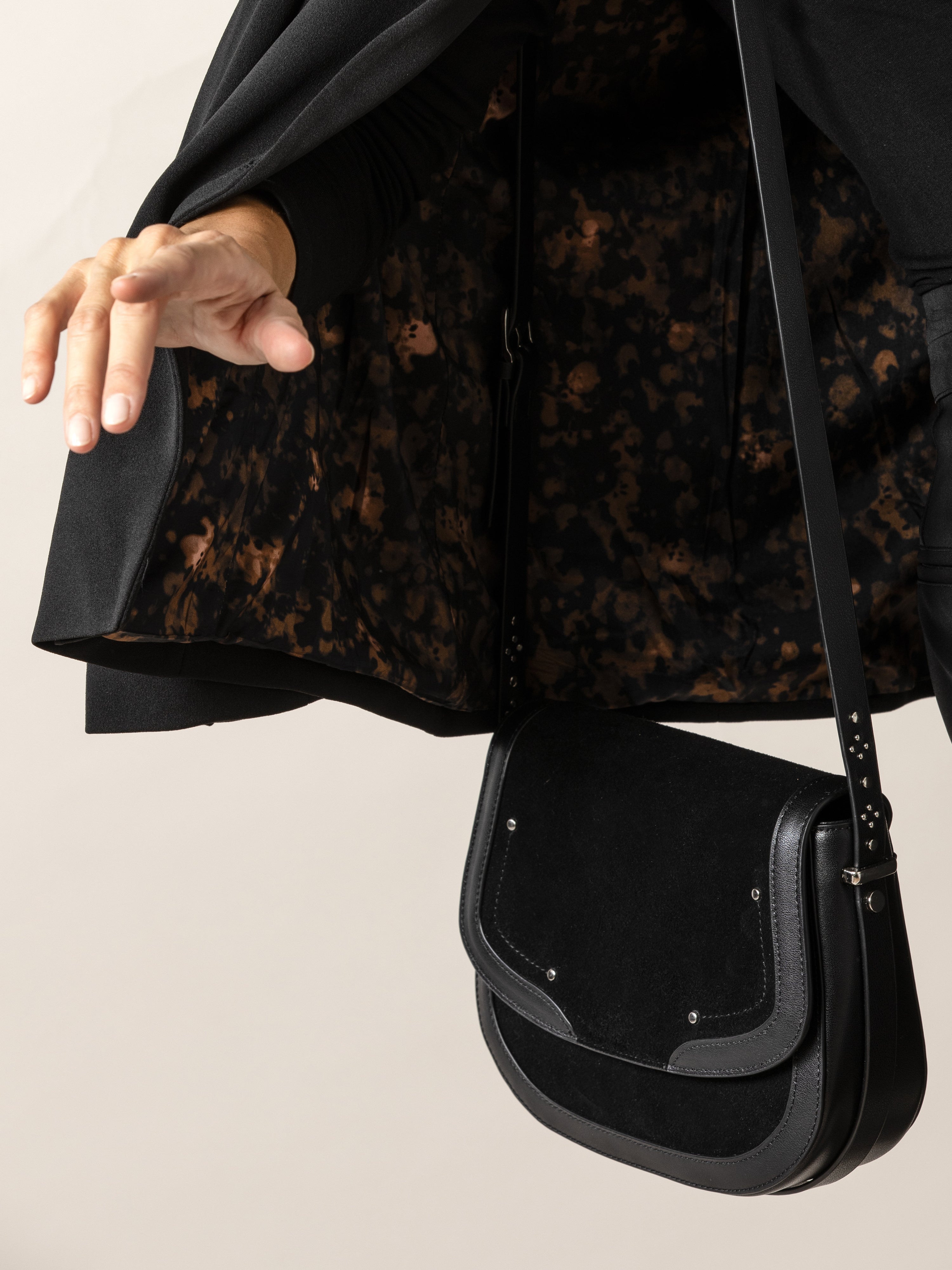 Auf der Rückseite eine Tasche mit Metalldruckknopf