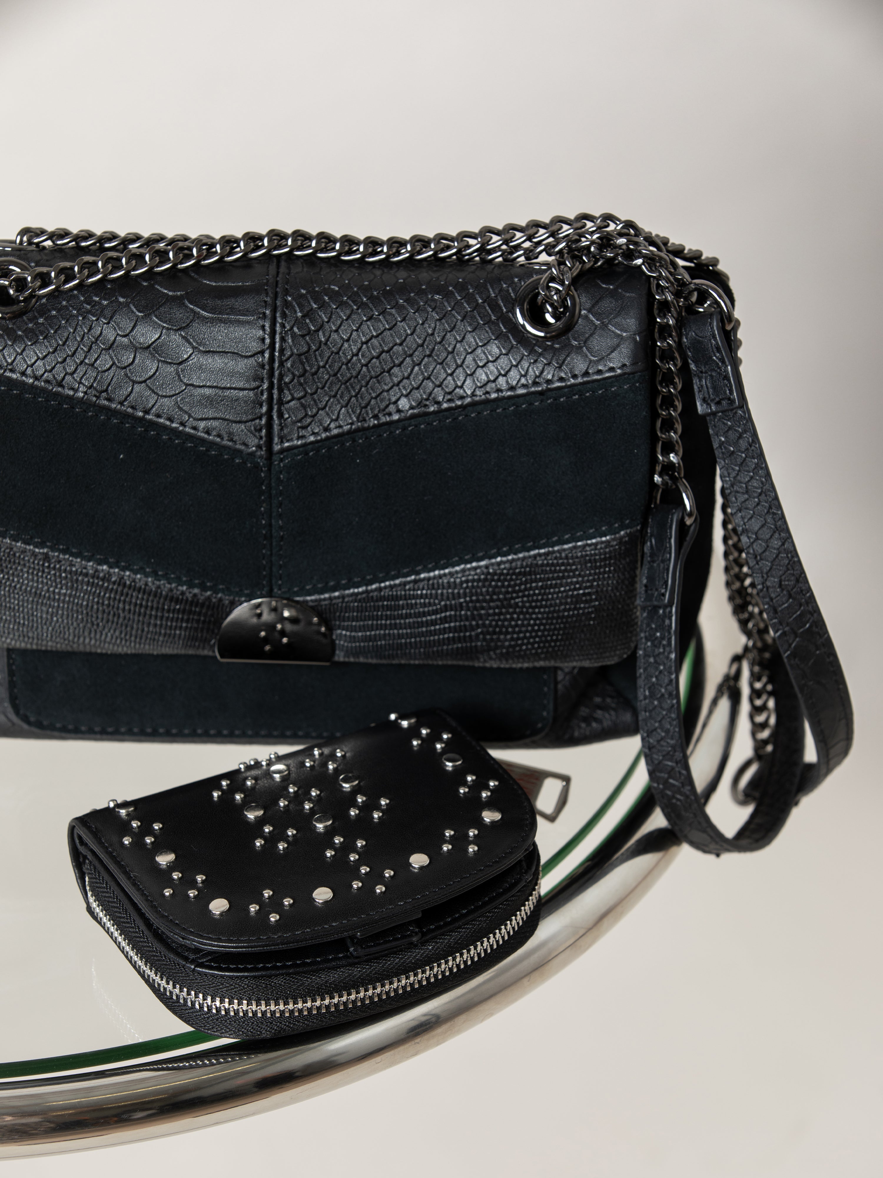 Diese Handtasche vereint Eleganz und Funktionalität dank ihrer Kette aus Leder und Metall. Ein schickes Essential, das Sie überallhin mitnehmen können. Es liegt an Ihnen, dasjenige auszuwählen, das am besten zu Ihrem Stil passt!