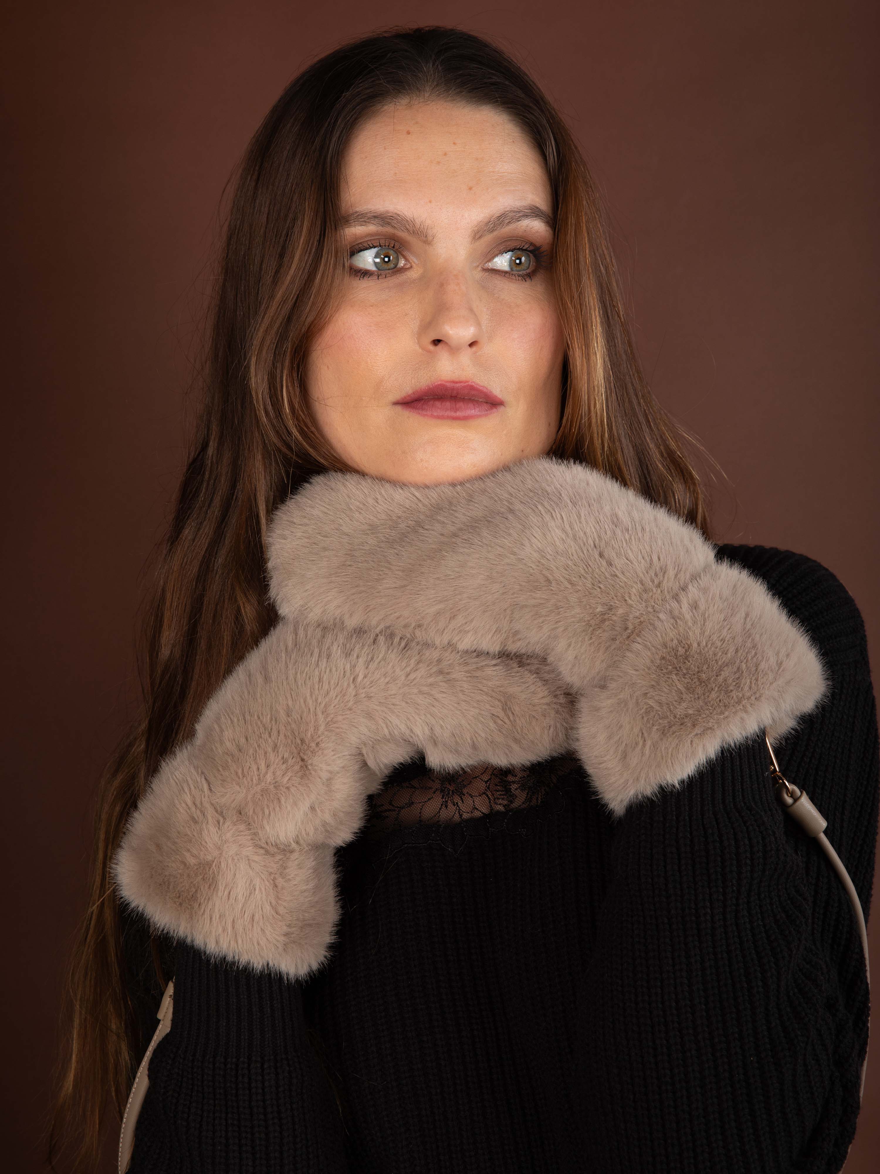 Craquez pour ces moufles en fausse fourrure, douces et chaleureuses, avec un lien pratique pour un style chic et confortable.