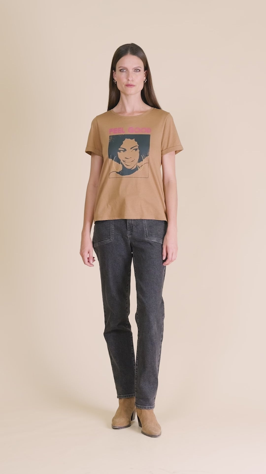 Adoptez ce T-shirt Feel Good au print vibrant, parfait pour une allure décontractée et pleine de fraîcheur.