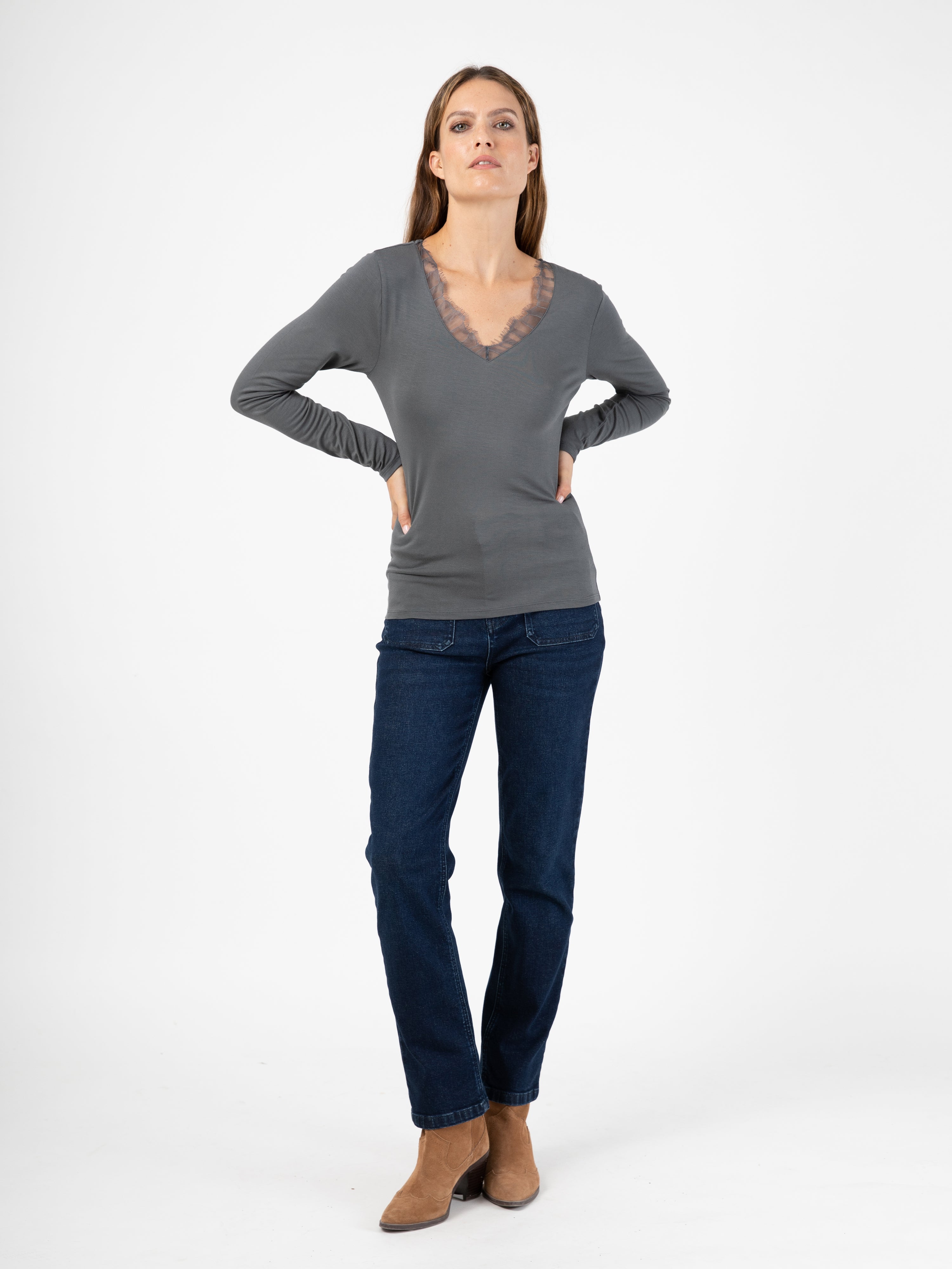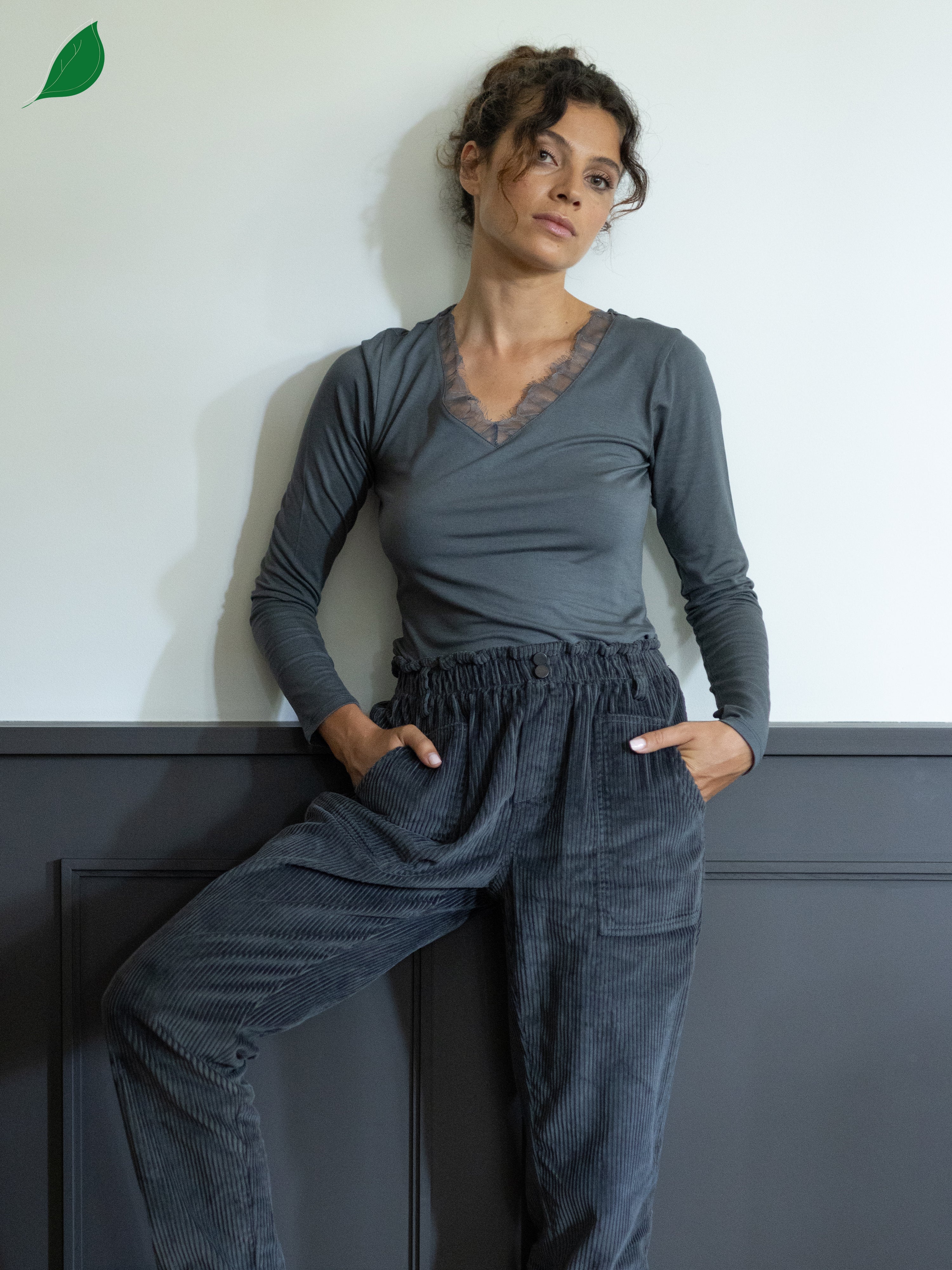 Hoofdmateriaal: 96% viscose ecovero 4% elastaan Kant: 100% polyester