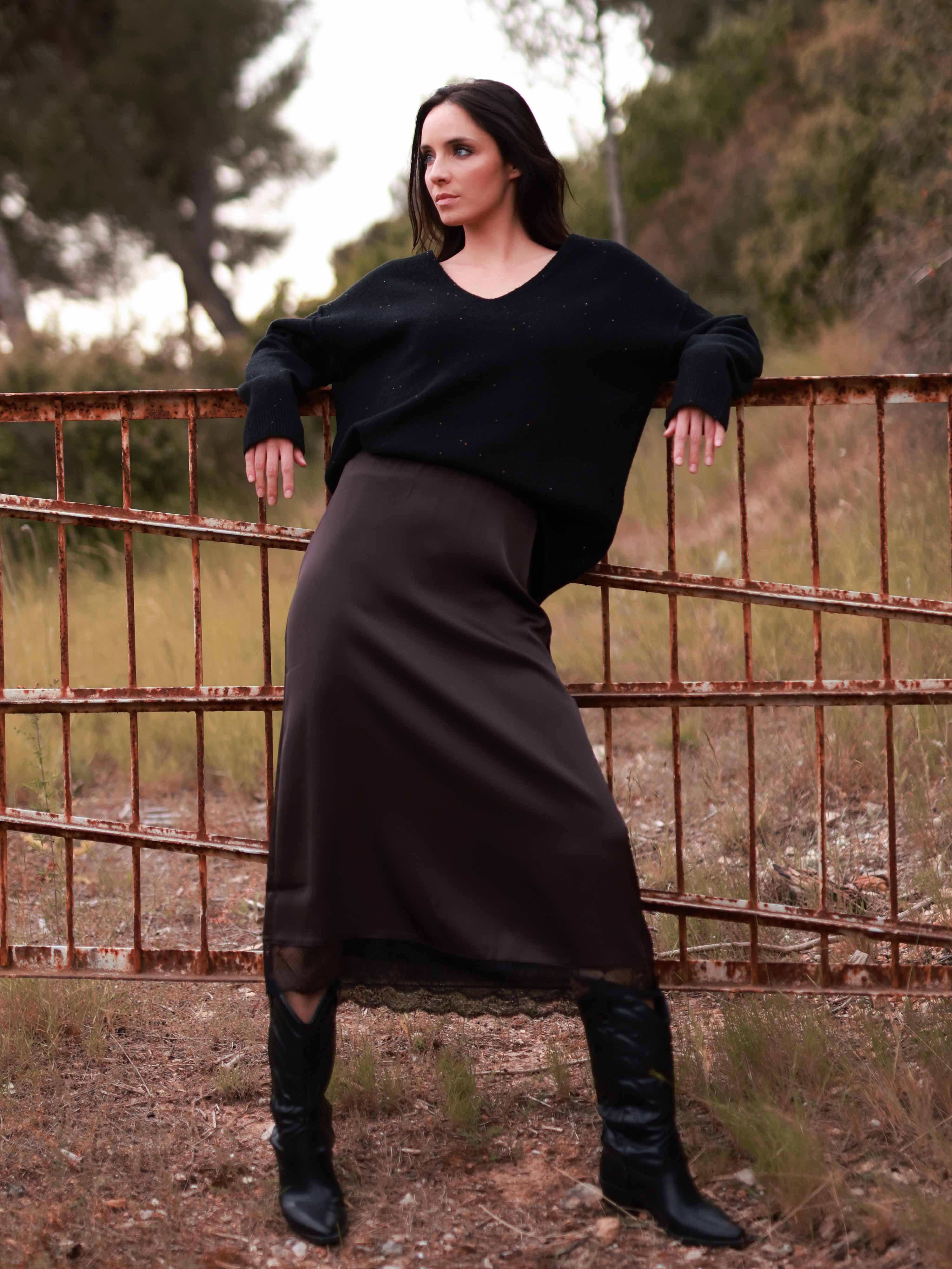 Taille normal. Nous vous conseillons de prendre votre taille habituelle. Anais mesure 1,76m et porte une taille 34.