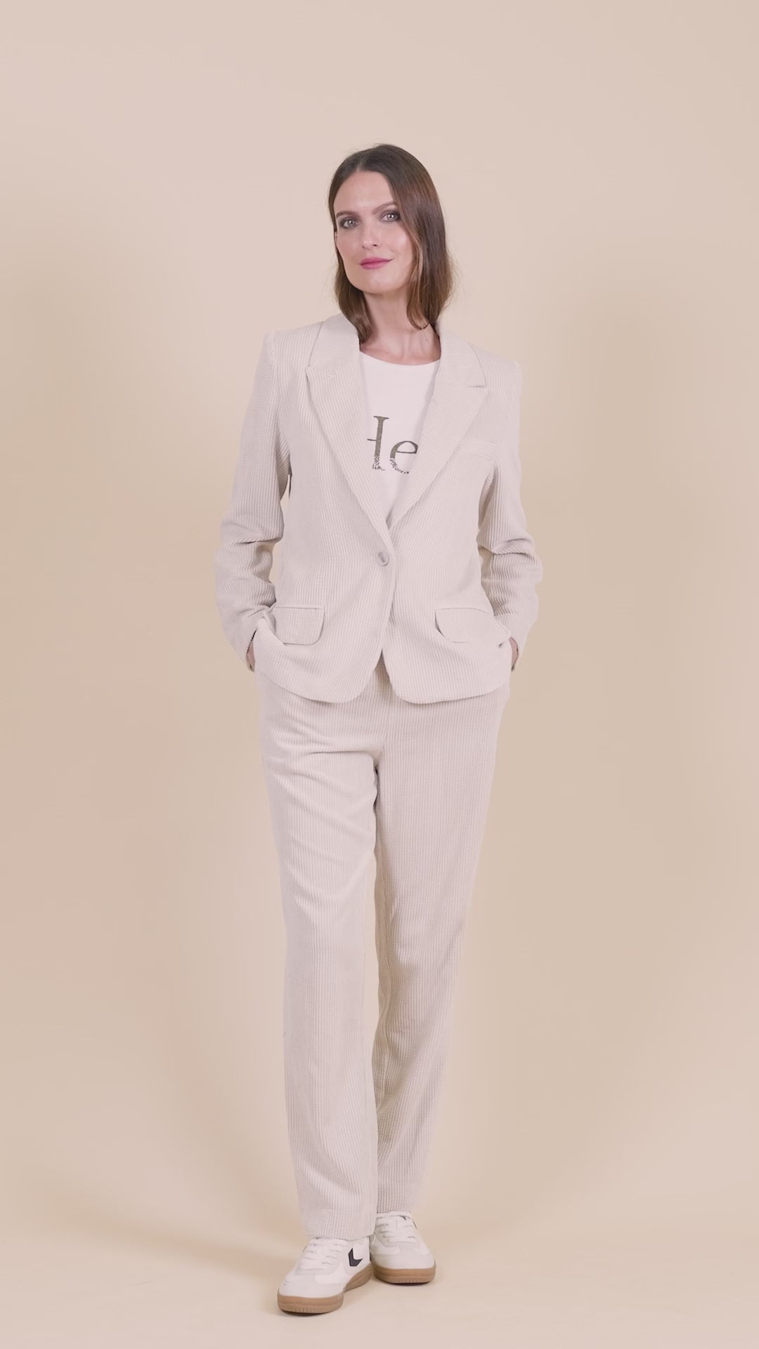 Craquez pour ce pantalon en velours côtelé à coupe droite, sublimé par son cordon lurex et sa taille élastiquée pour un confort élégant.
