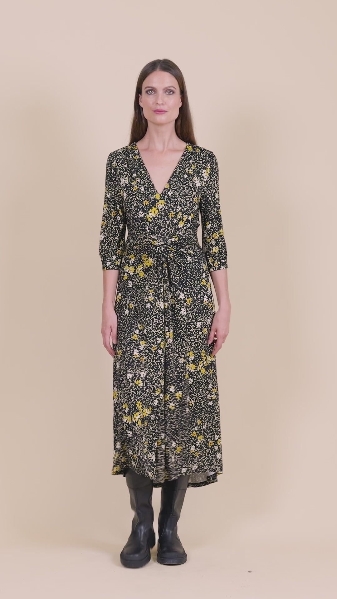 Optez pour cette robe ajustée à encolure V, alliant petites fronces et manches boutonnées pour un look chic et raffiné.