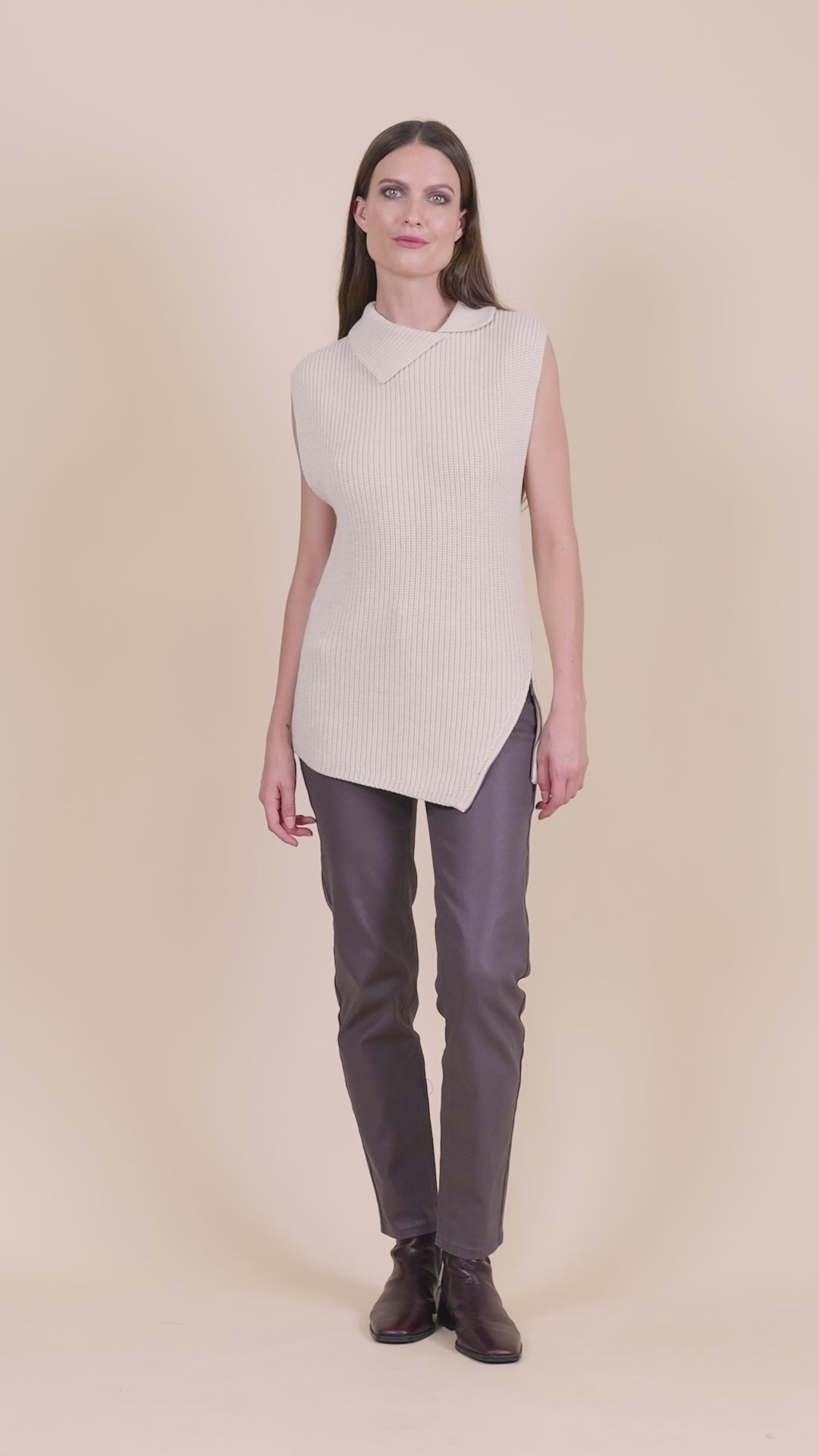 Craquez pour ce pull sans manches à col montant, sublimé par son zip asymétrique et sa coupe droite pour un look moderne et raffiné.