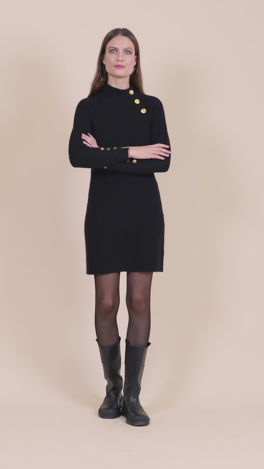 Optez pour cette robe pull à coupe droite, sublimée par ses détails boutonnés et emmanchures raglan pour un look élégant et moderne.
