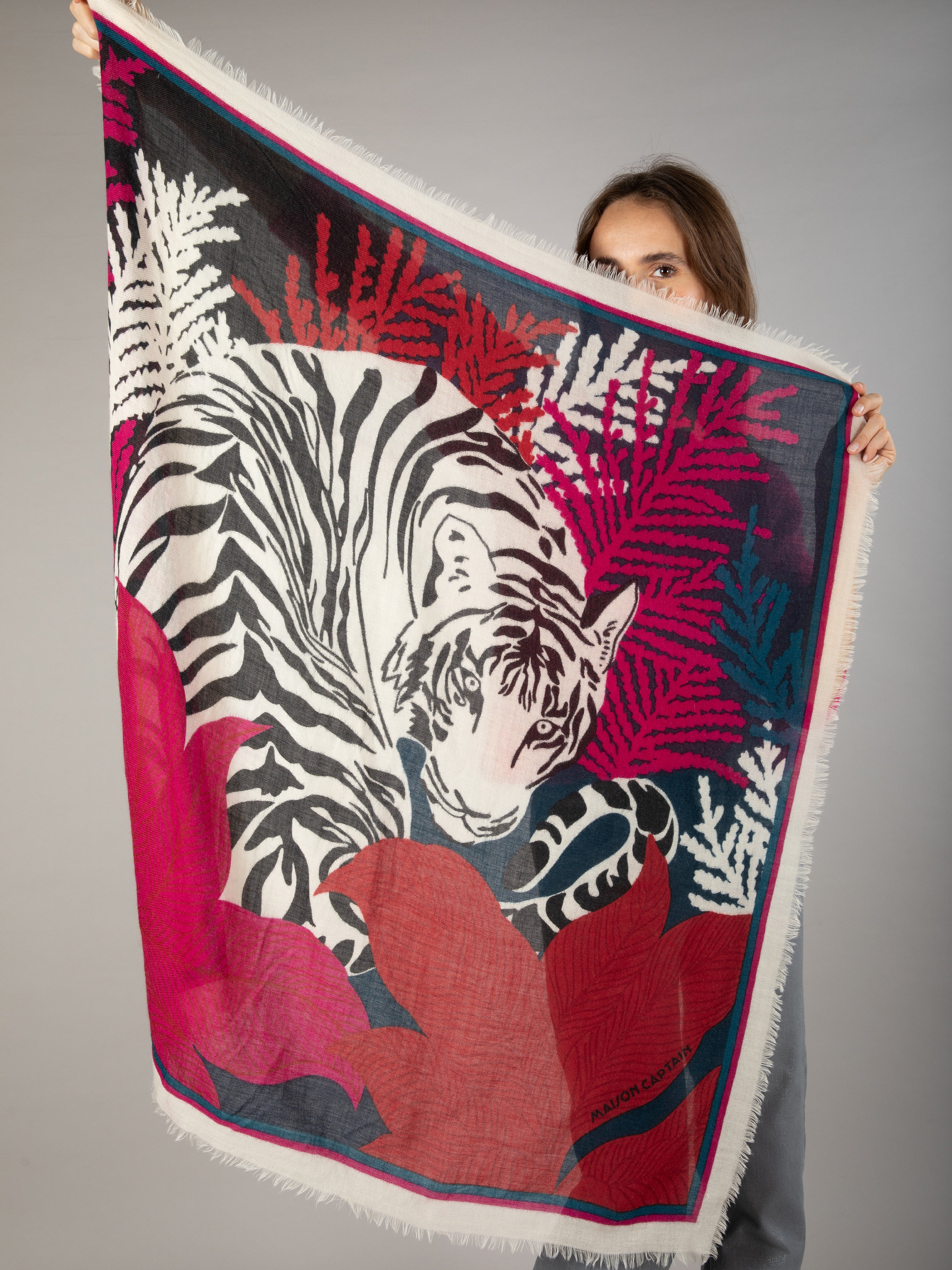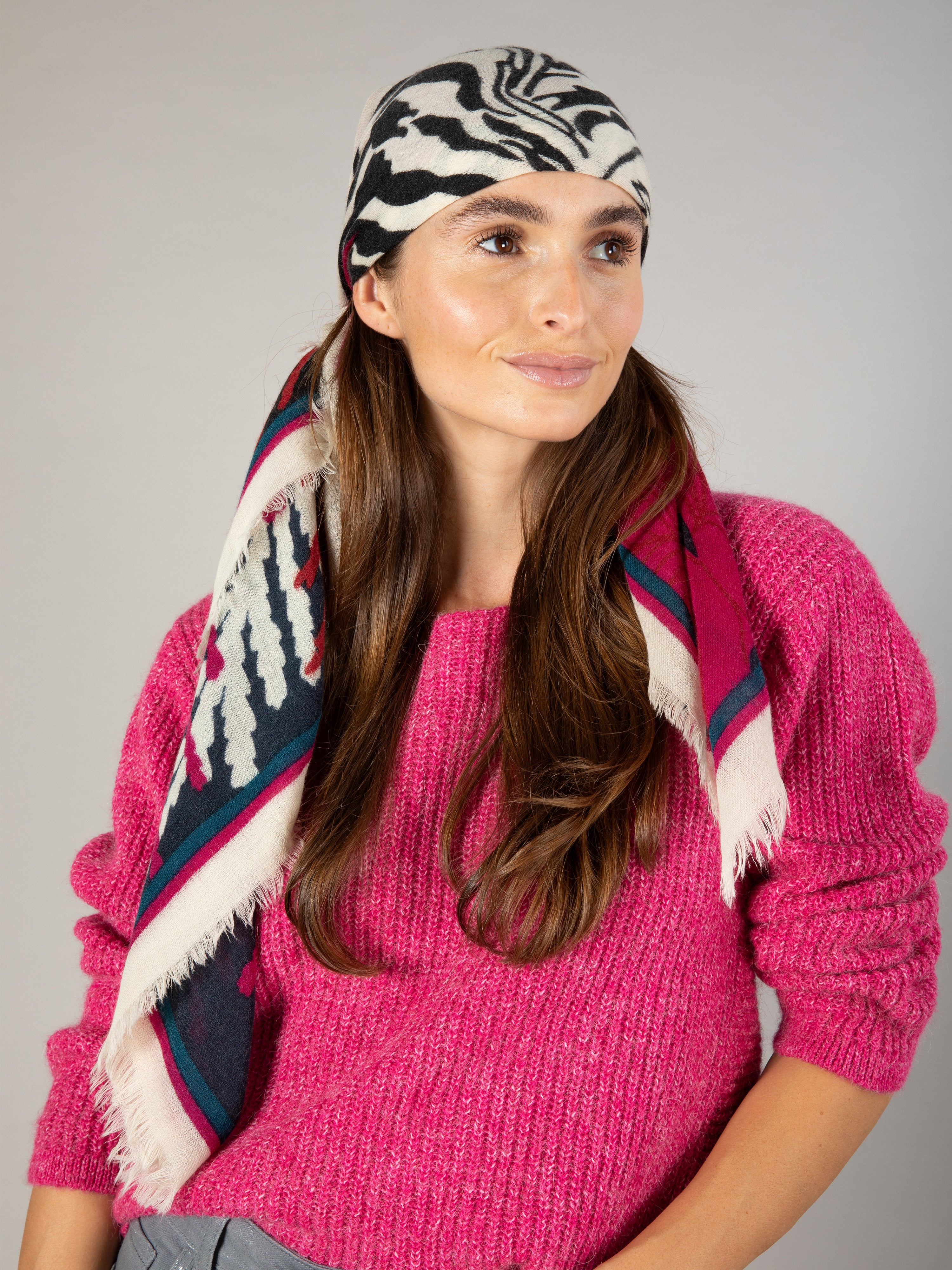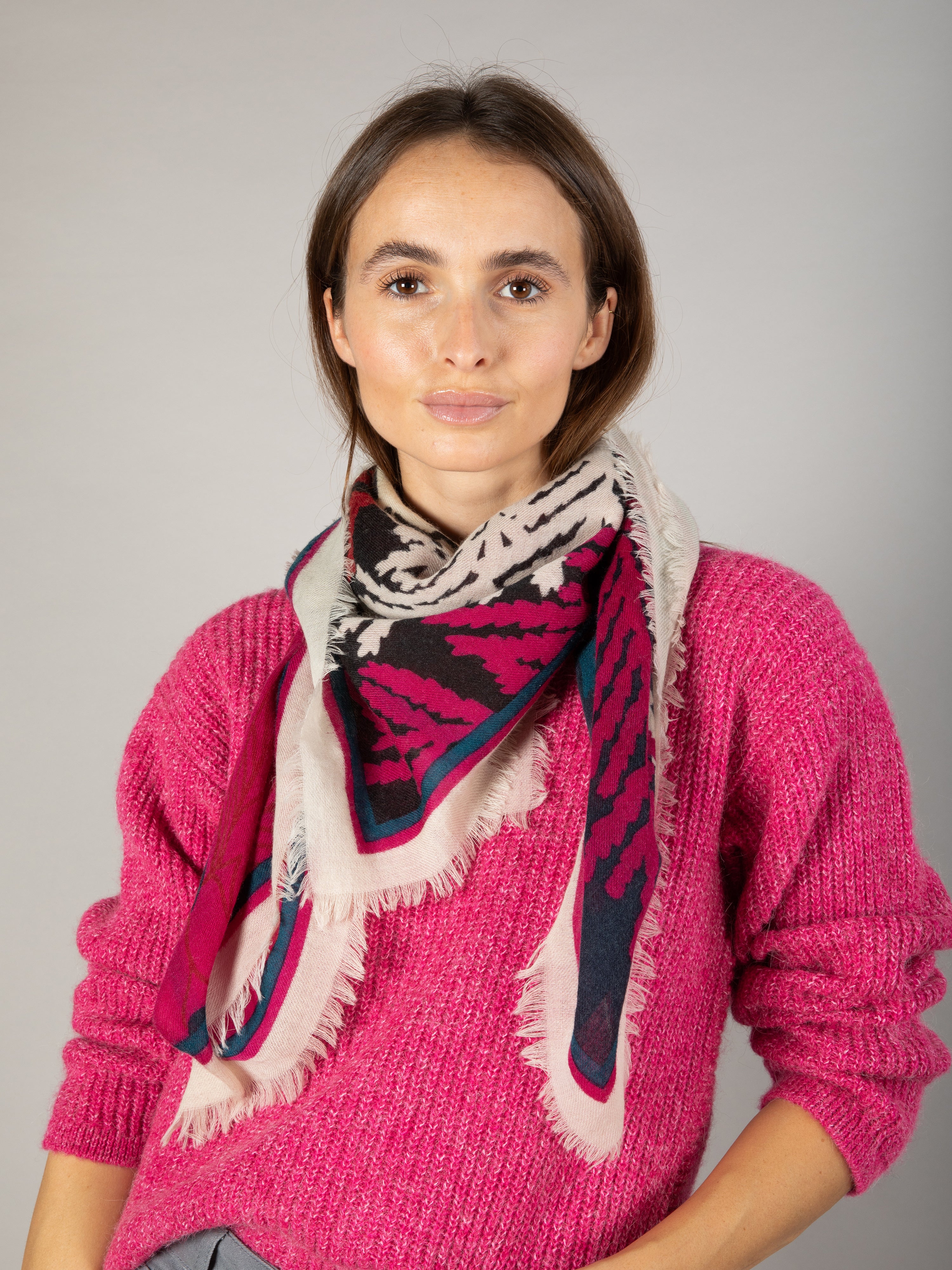 Deze wollen sjaal is stijlvol en comfortabel en is het perfecte accessoire om de kou op stijlvolle wijze te trotseren. De trendy print en kleine franjes geven elke outfit een bohemian tintje.