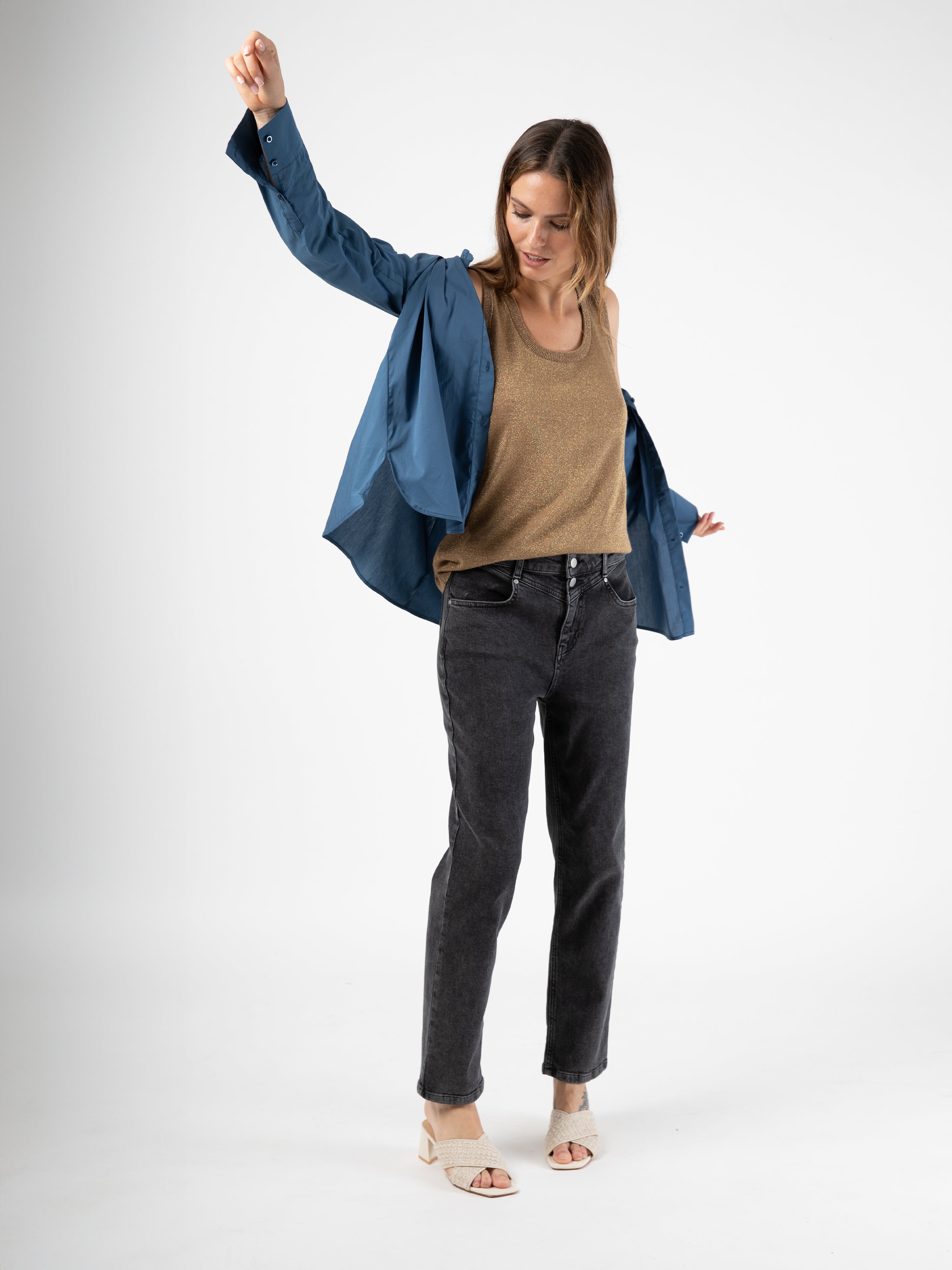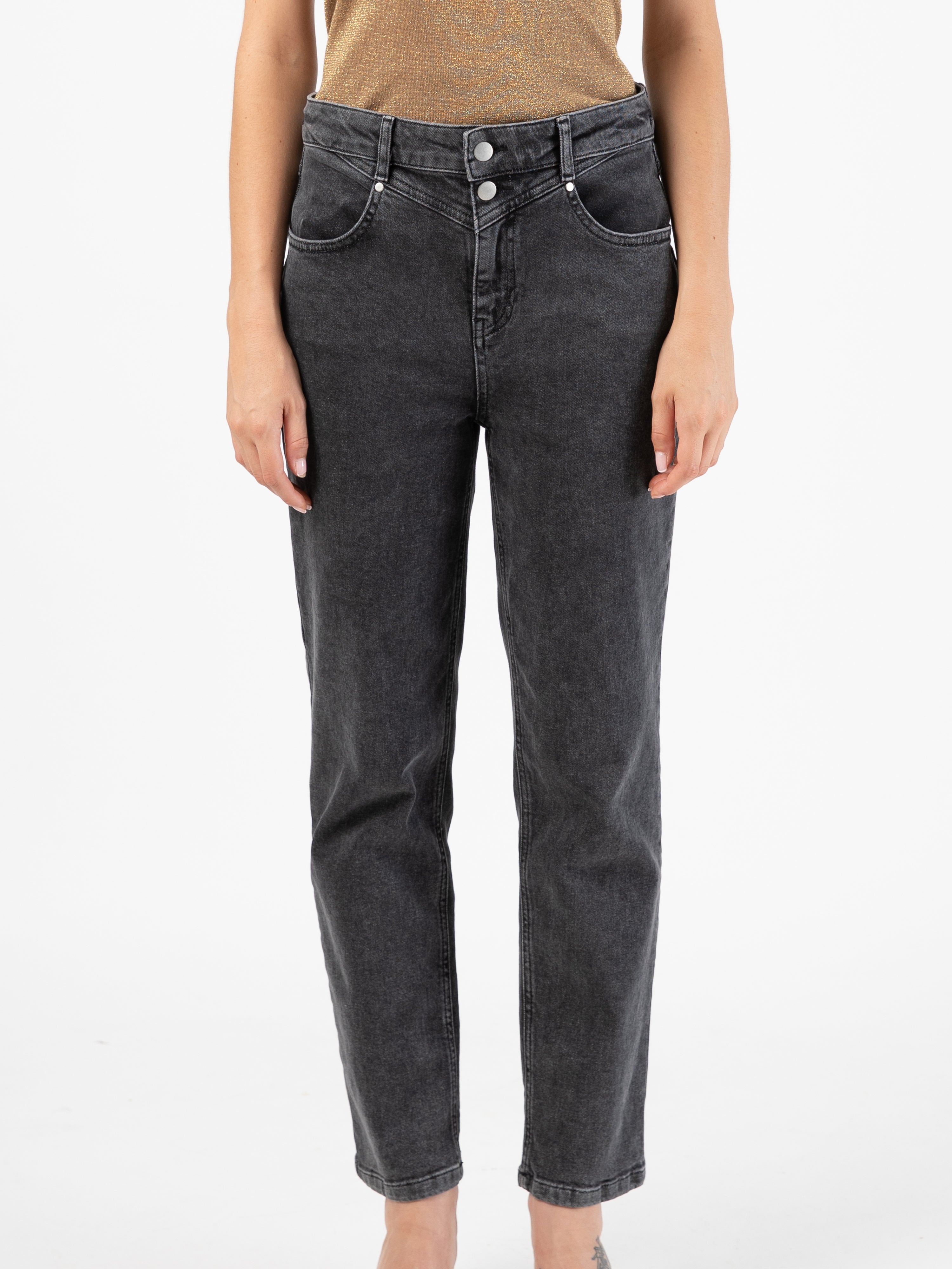 Craquez pour le jean Juliette, le must-have de cette saison. Avec son détail de doubles boutons, il sublime vos looks casual tout en restant résolument tendance.