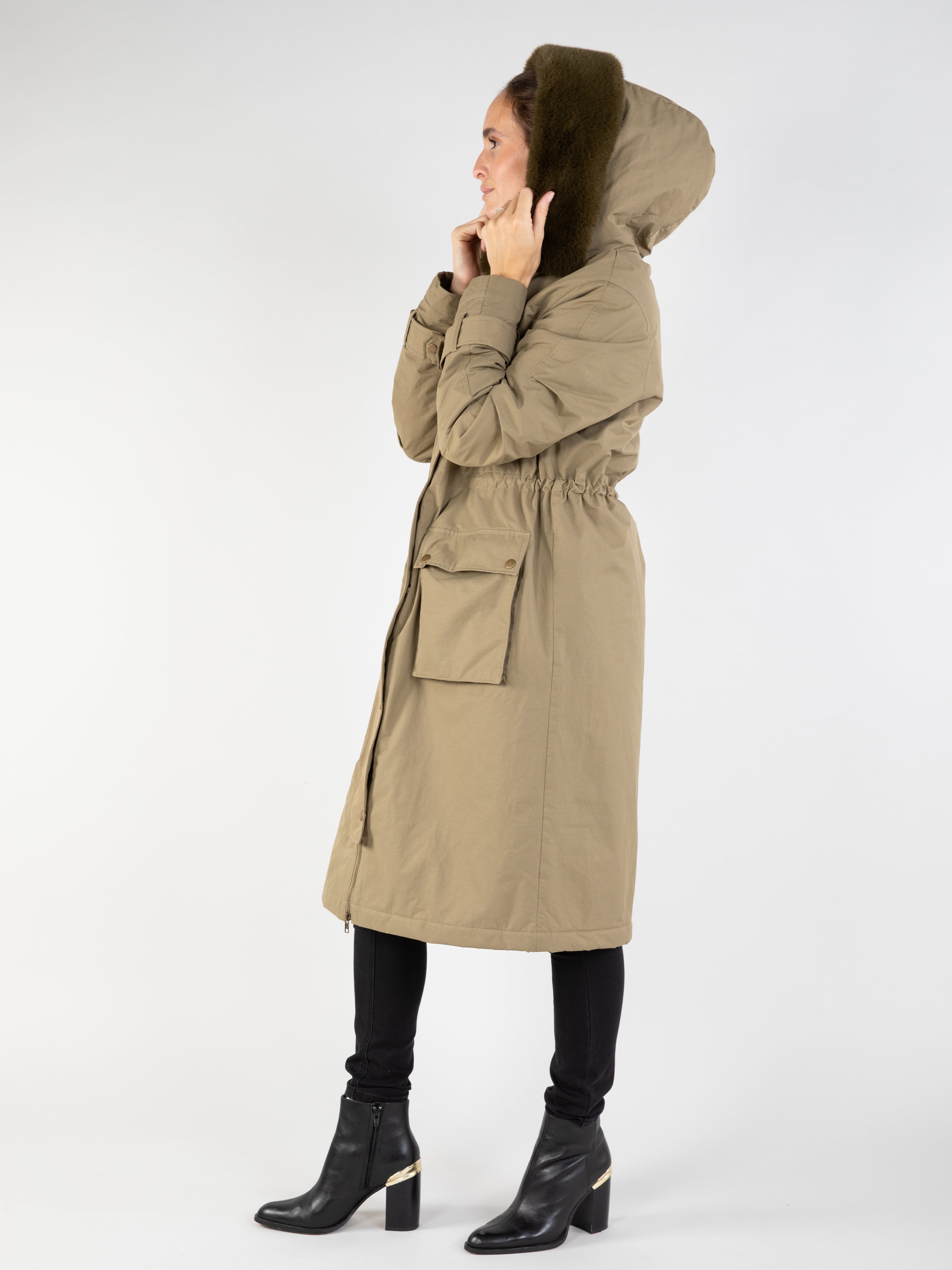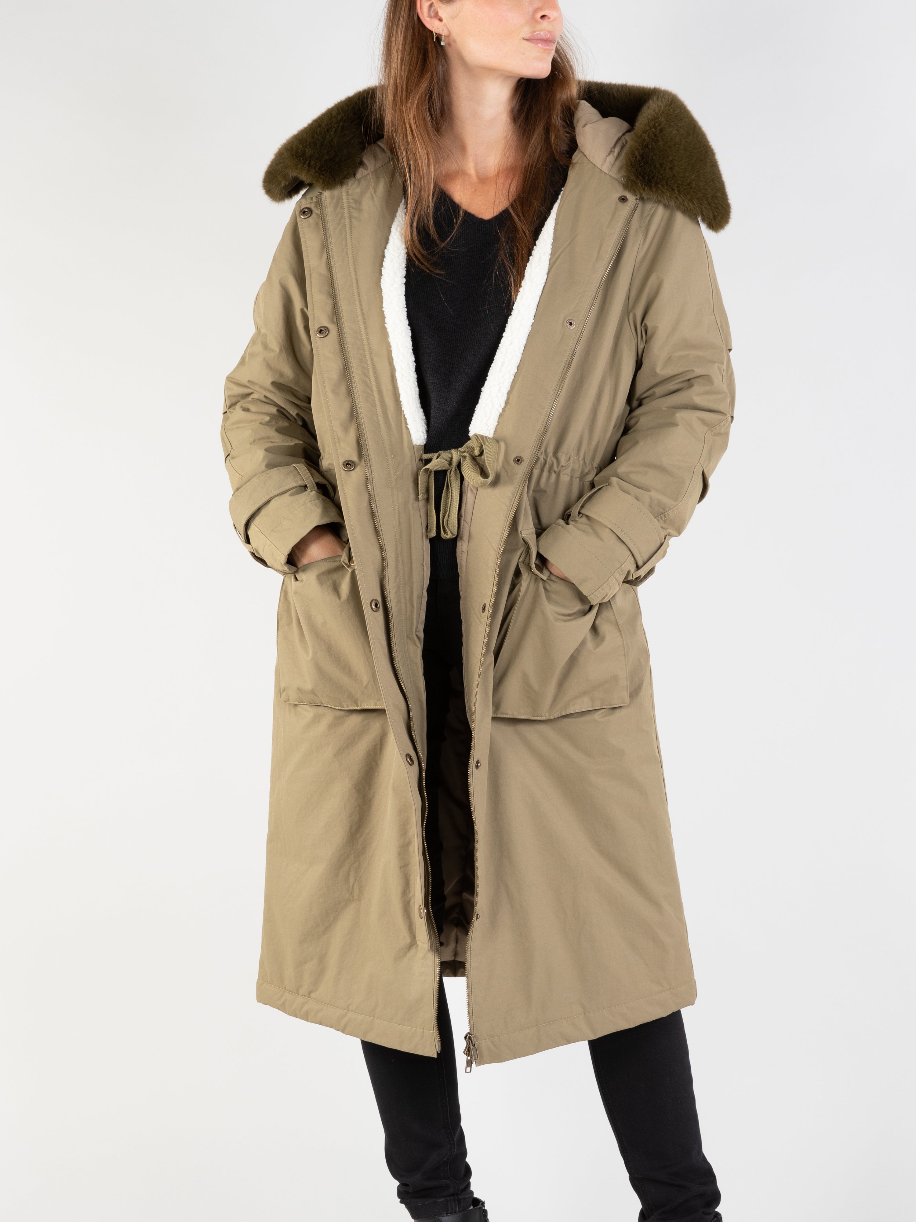 Manches longues avec plis fantaisie au niveau du dos et lien de serrage en bas.