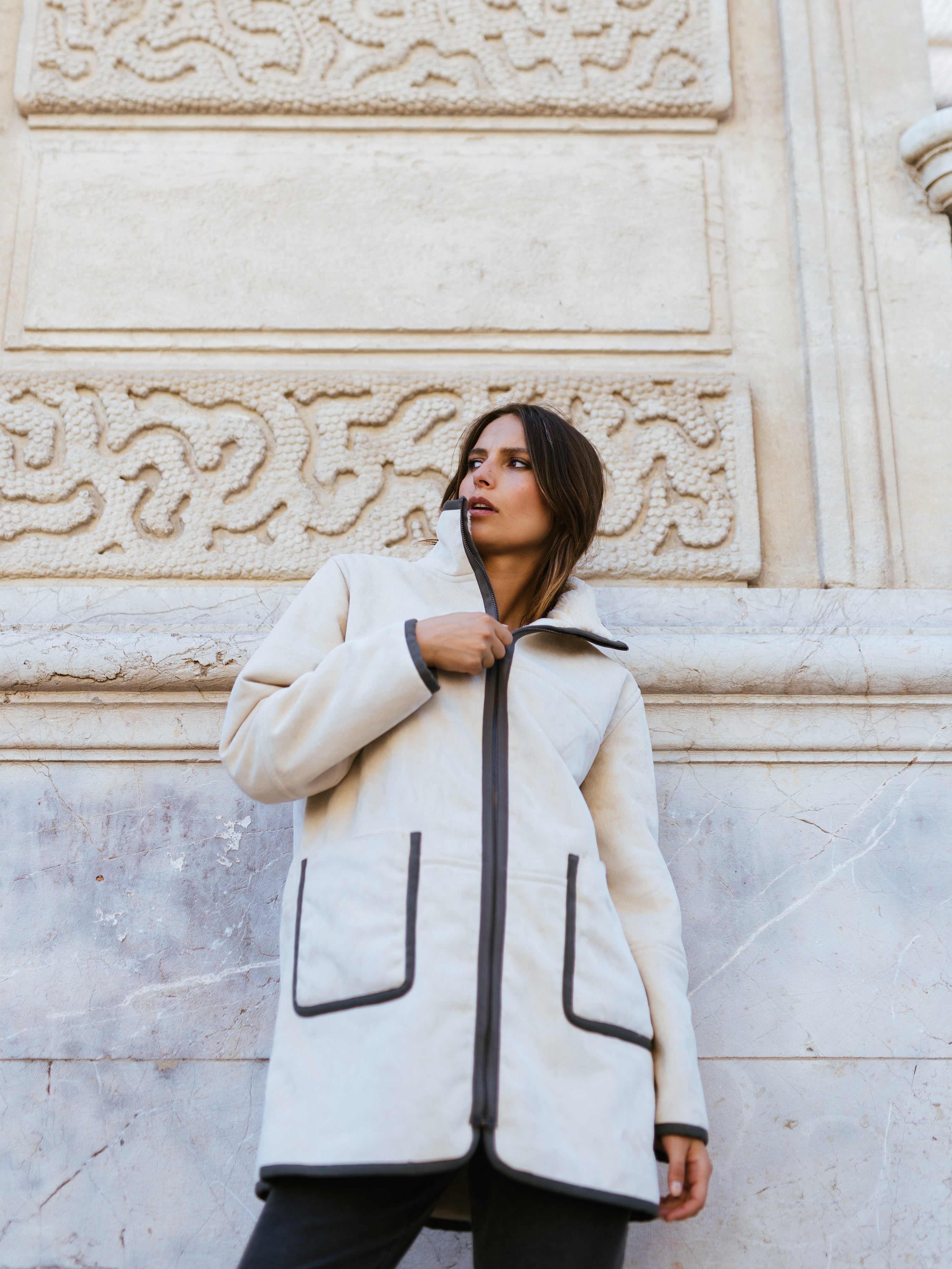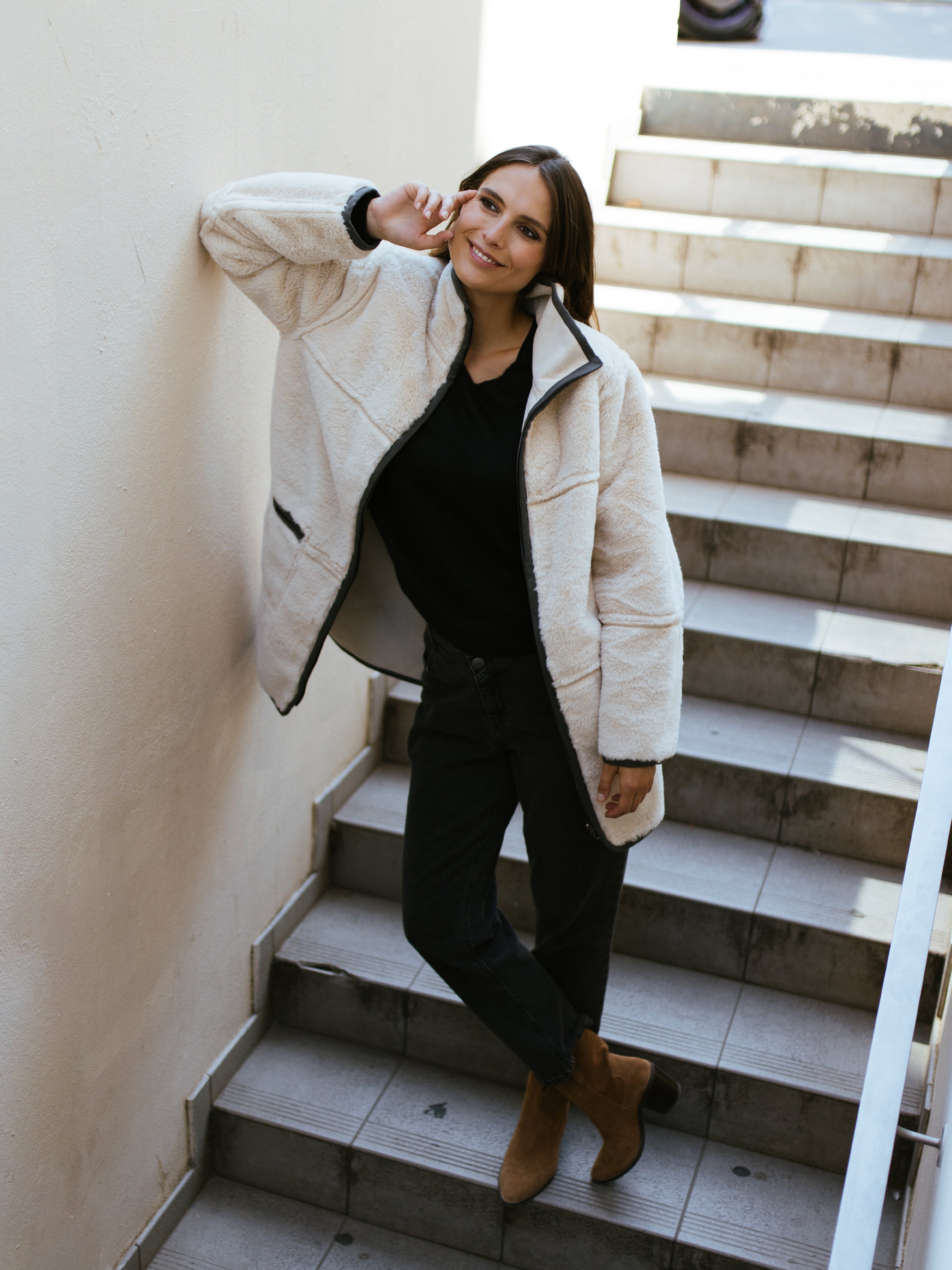 Taille normal. Nous vous conseillons de prendre votre taille habituelle. Clarisse mesure 1,76m et porte une taille 1. Mailys mesure 1,72m et porte une taille 0.