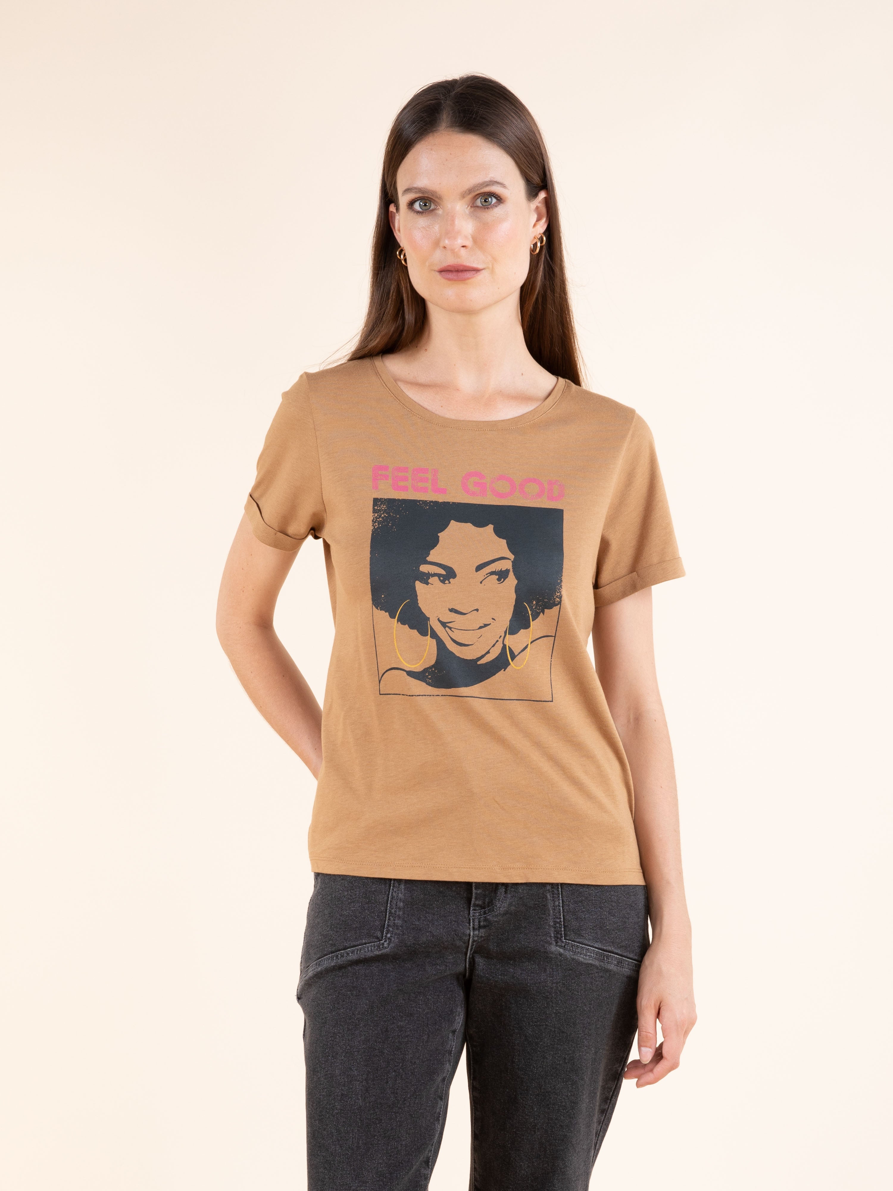 Adoptez ce T-shirt Feel Good au print vibrant, parfait pour une allure décontractée et pleine de fraîcheur.