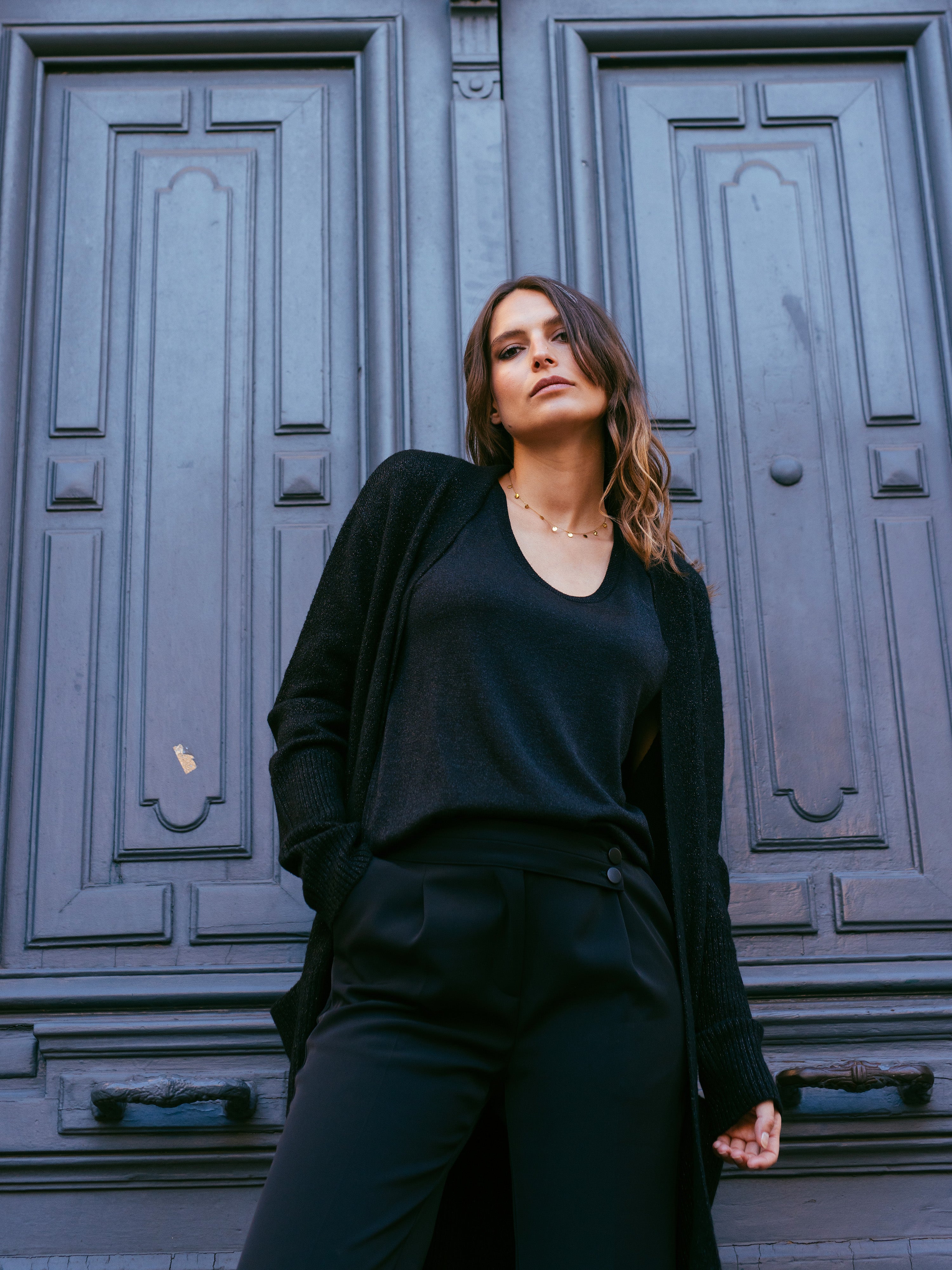 Adoptez un look chic avec ce pull col V au détail brillant ! Il deviendra votre favori.