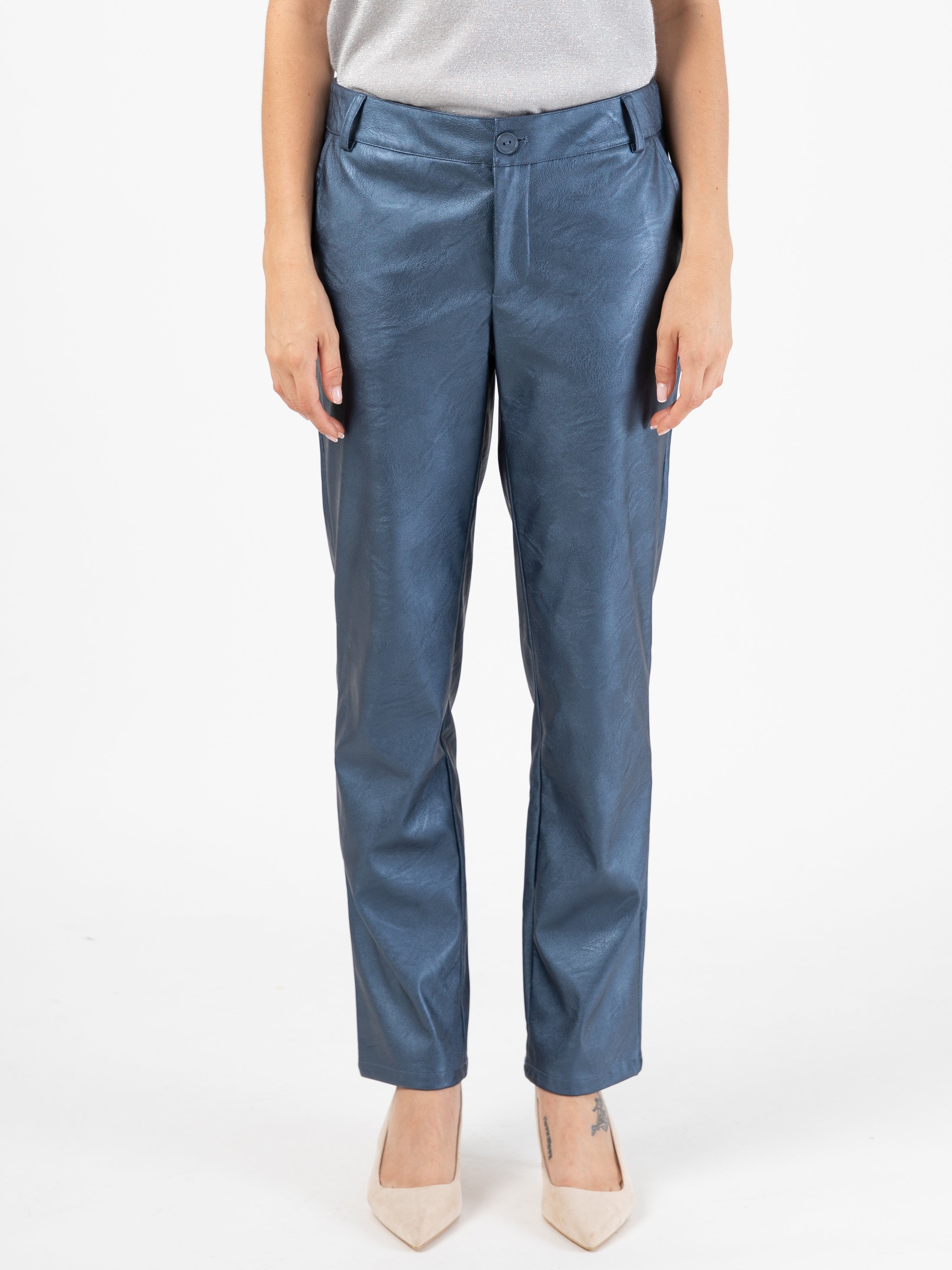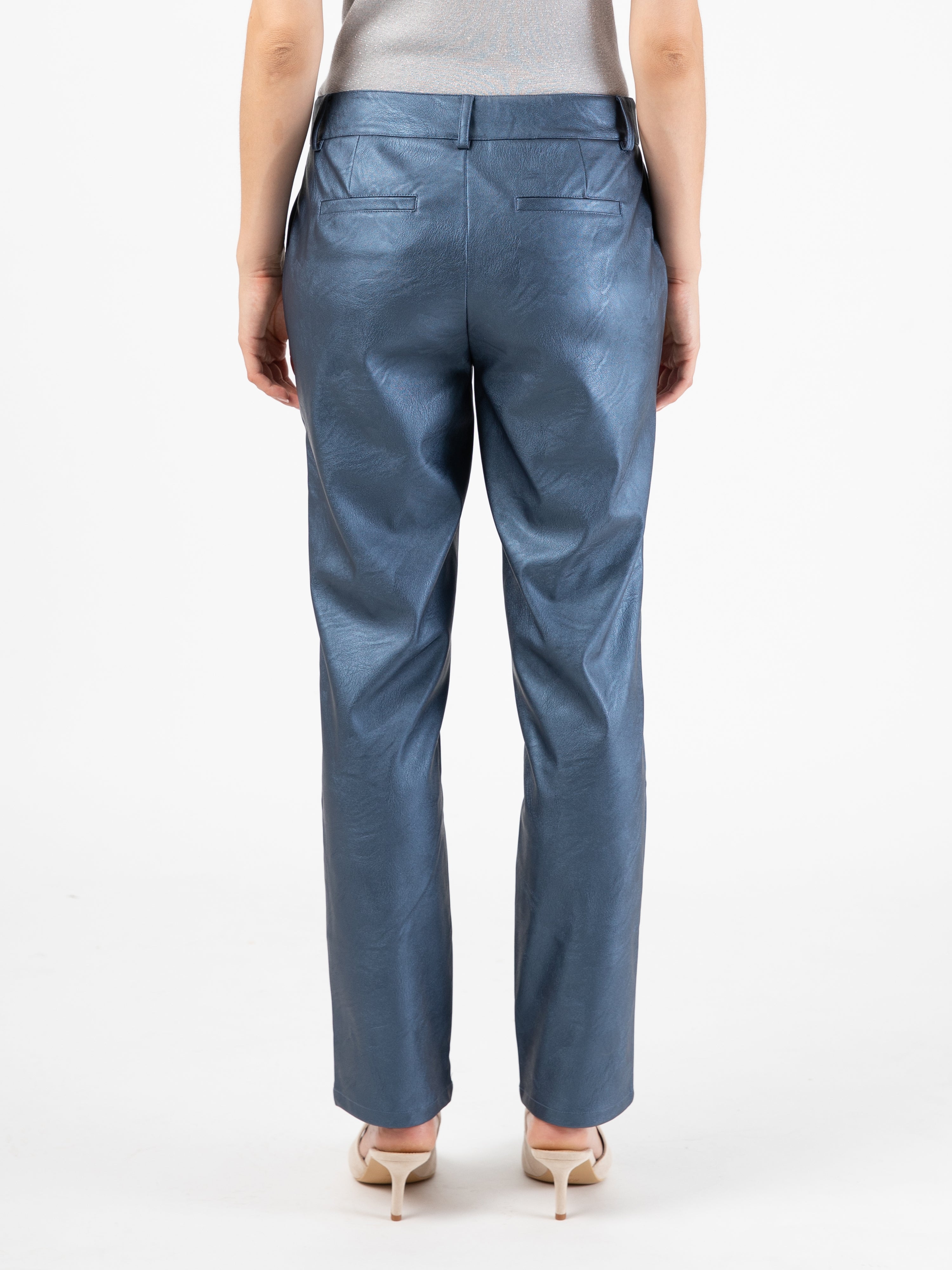 Ce pantalon en simili cuir allie confort et audace pour un look résolument moderne. Sa coupe droite et ses poches passepoilées lui apportent une touche chic et pratique.