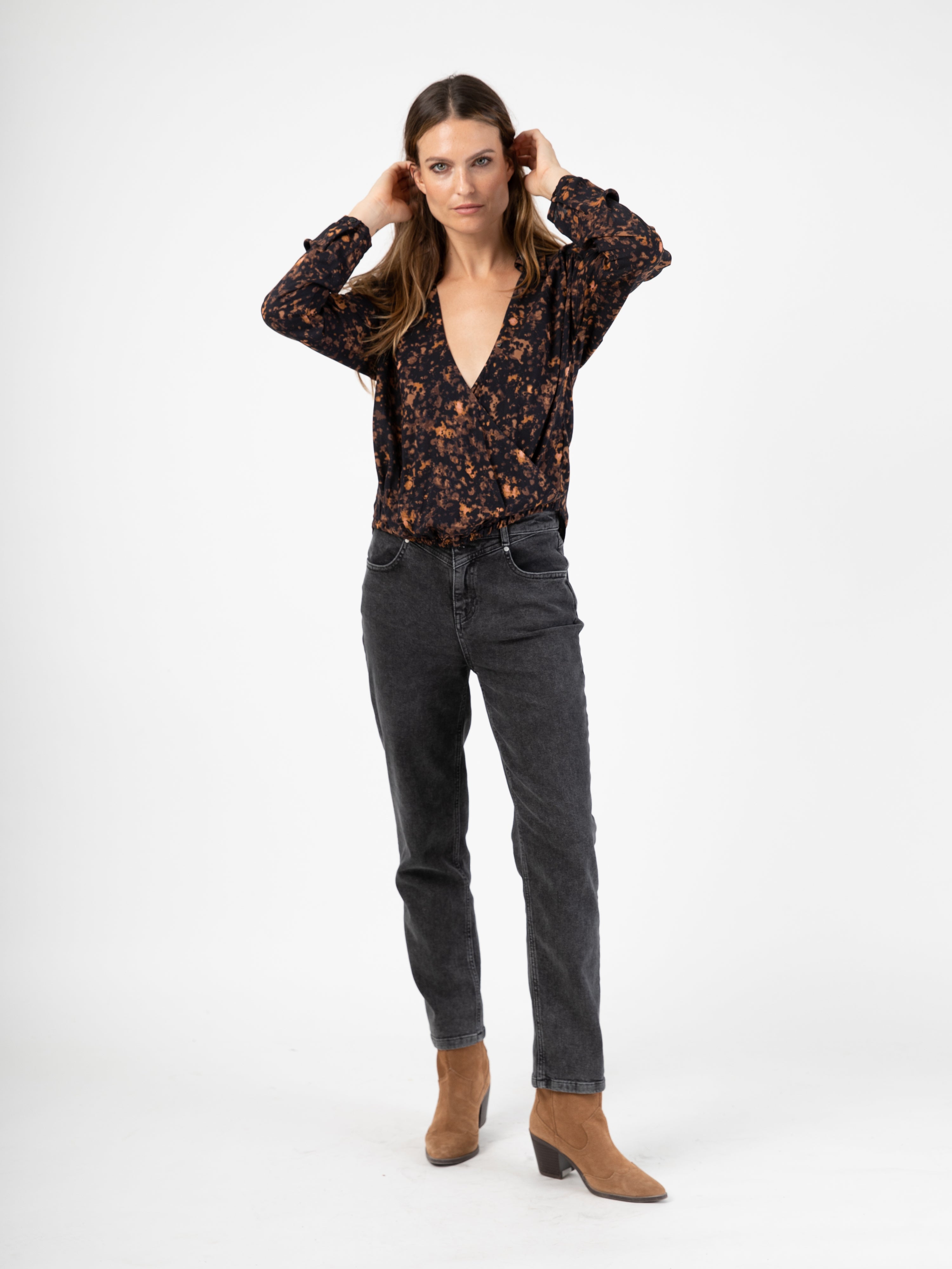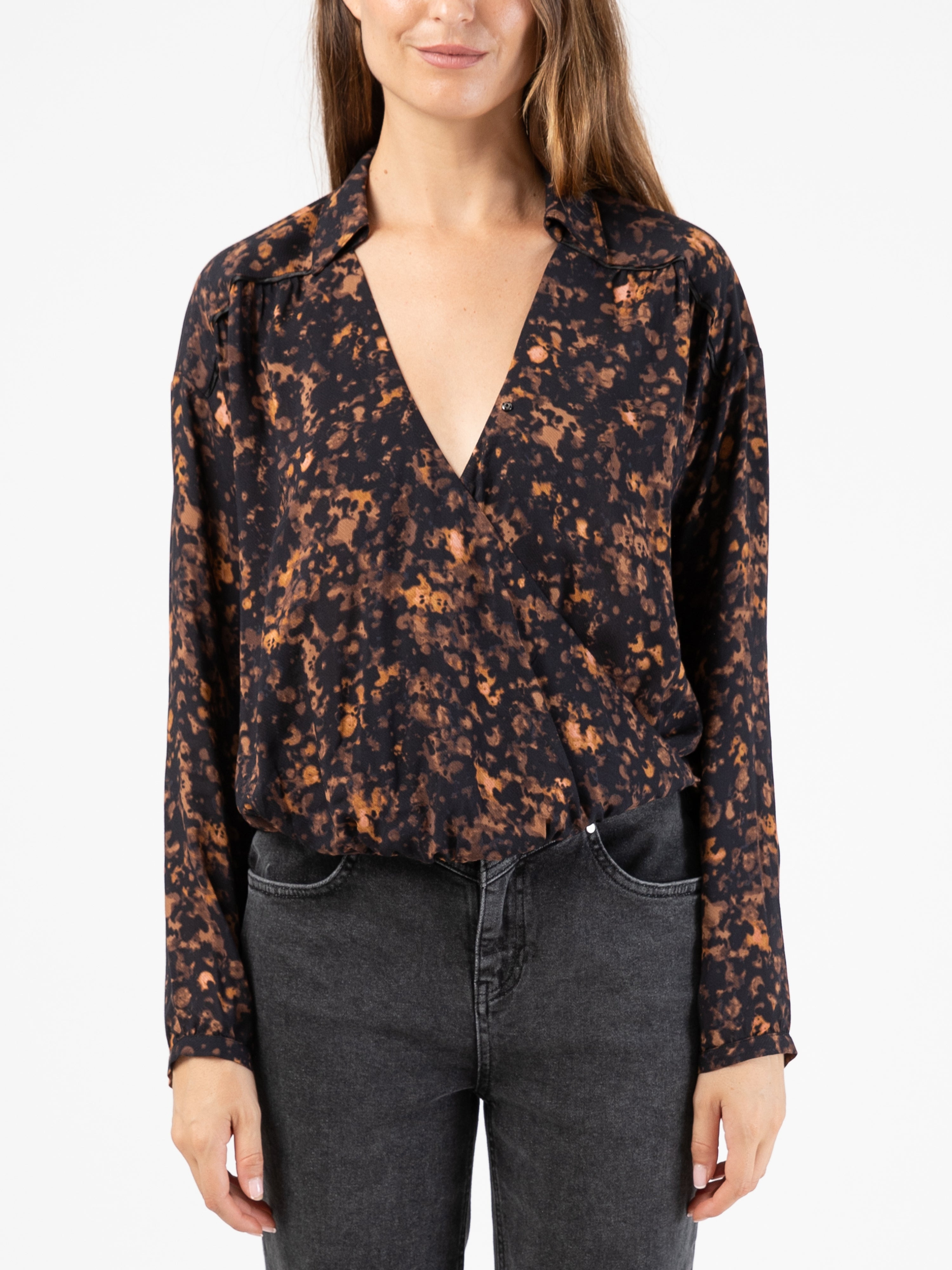 Féminine et intemporelle, cette blouse cache-cœur est la pièce idéale pour toutes vos tenues. Sa coupe droite et sa fermeture par pression en font un incontournable chic.