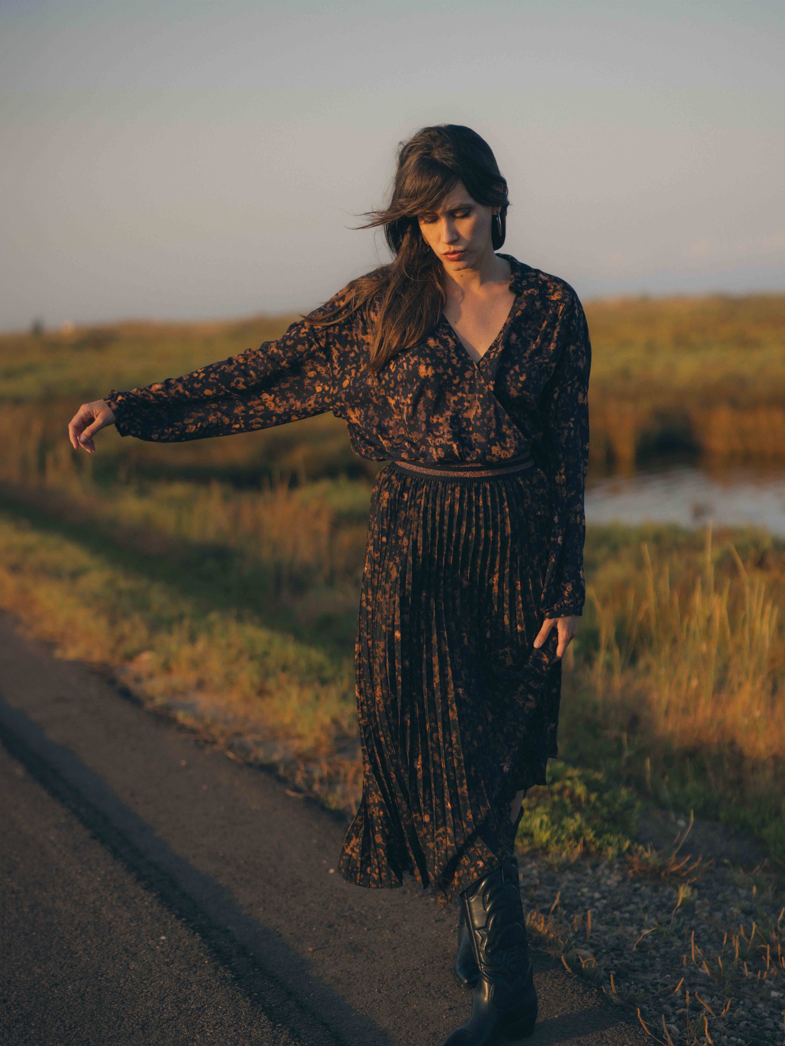 Taille normal. Nous vous conseillons de prendre votre taille habituelle. Renata mesure 1,73m et porte une taille 34. Johanna mesure 1,74m et porte une taille 34.