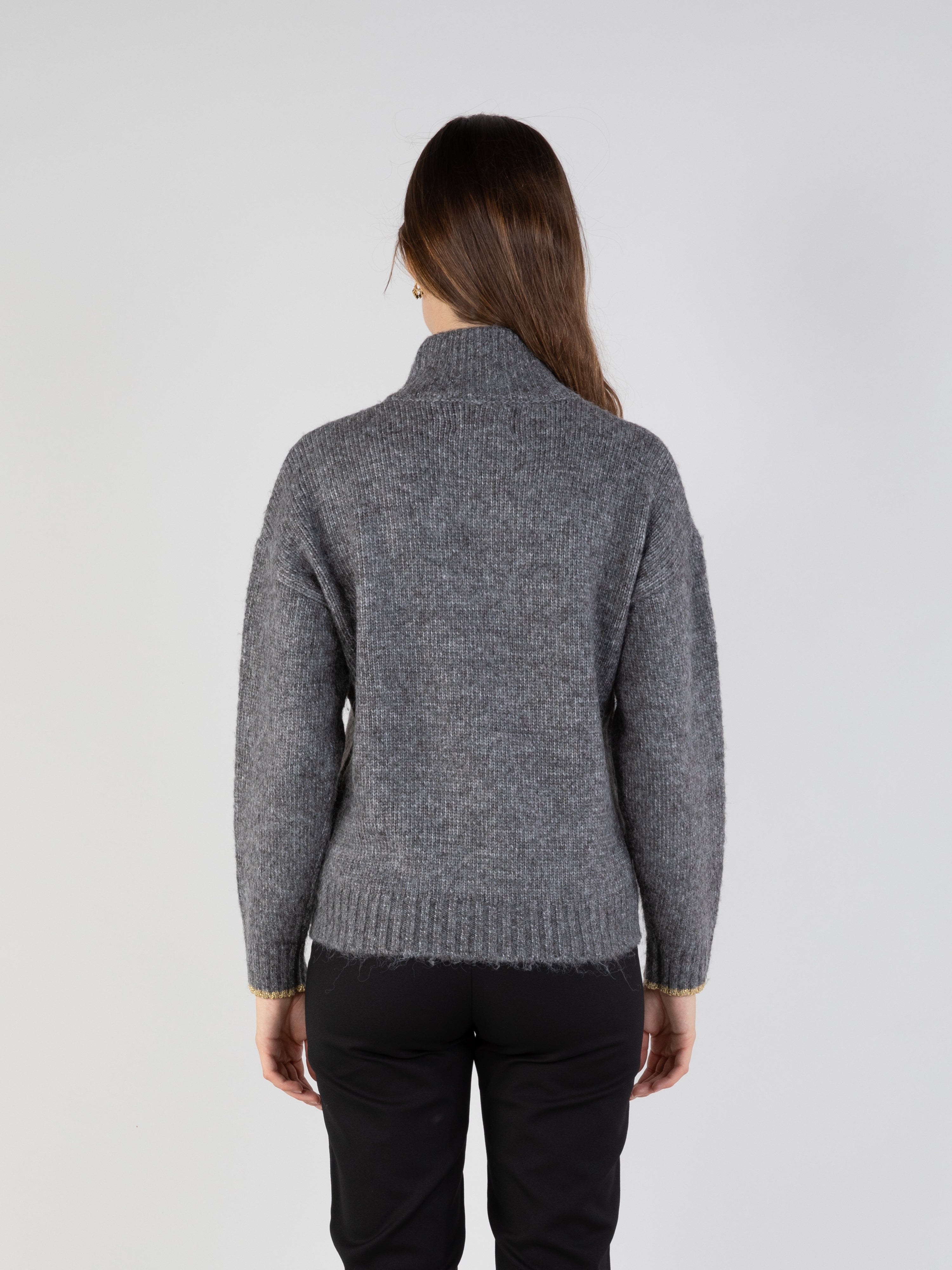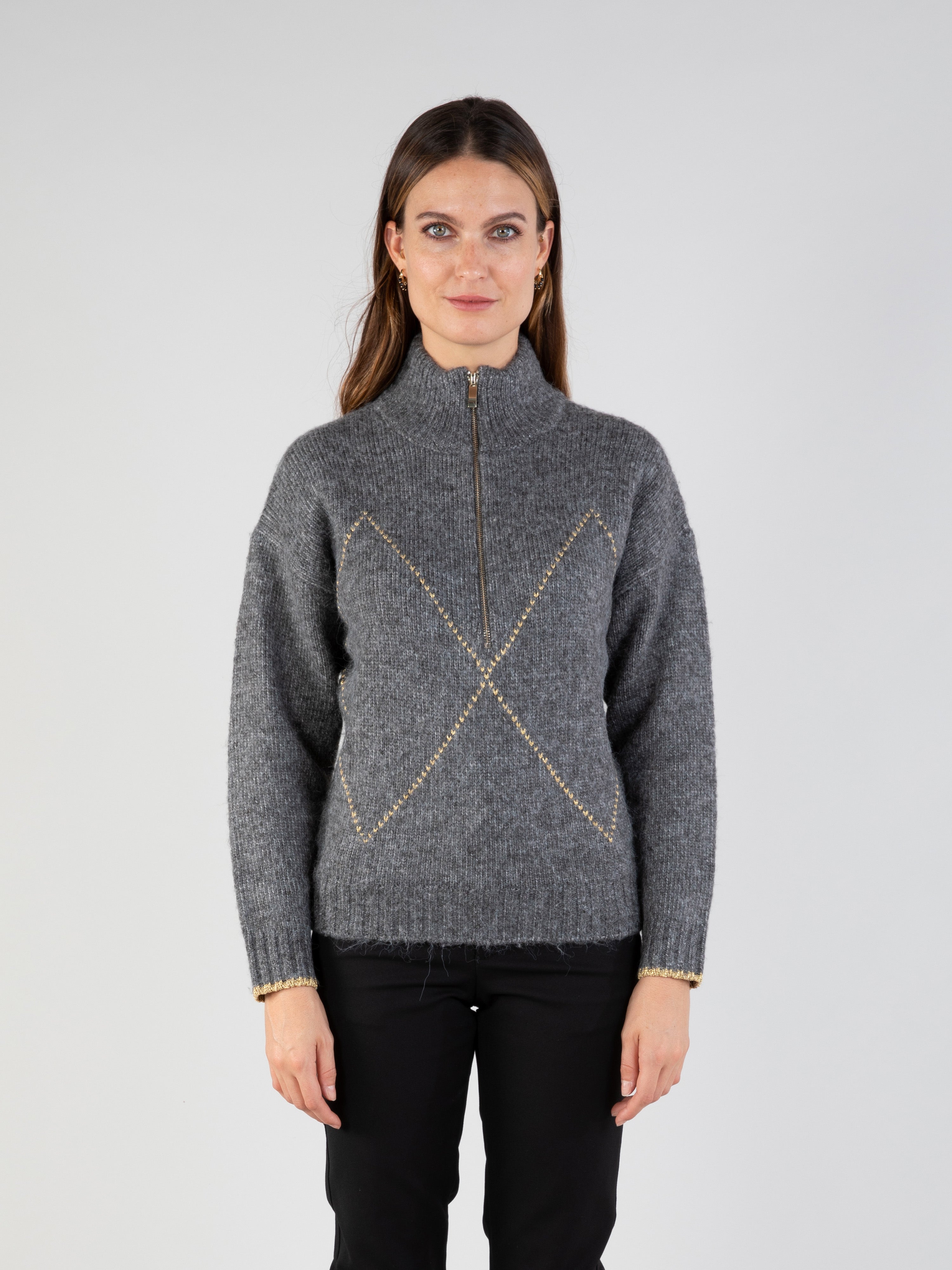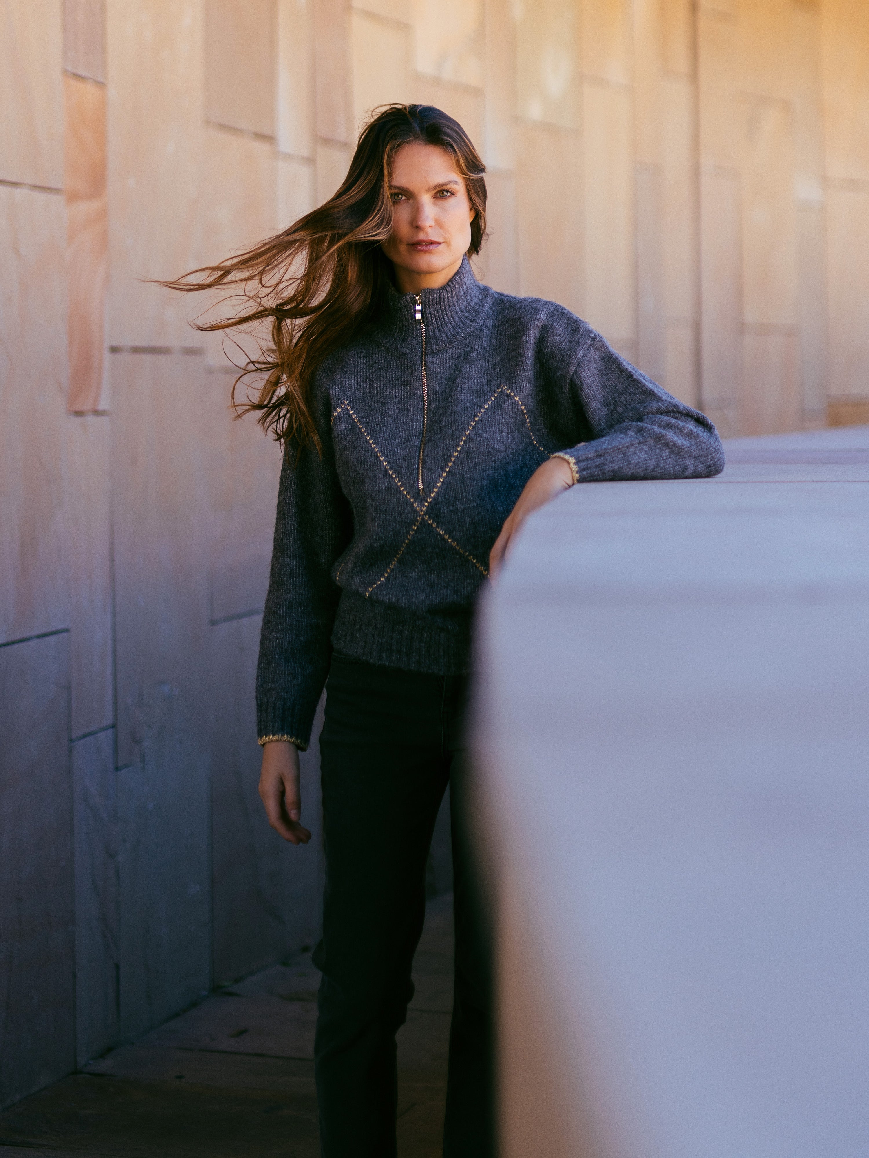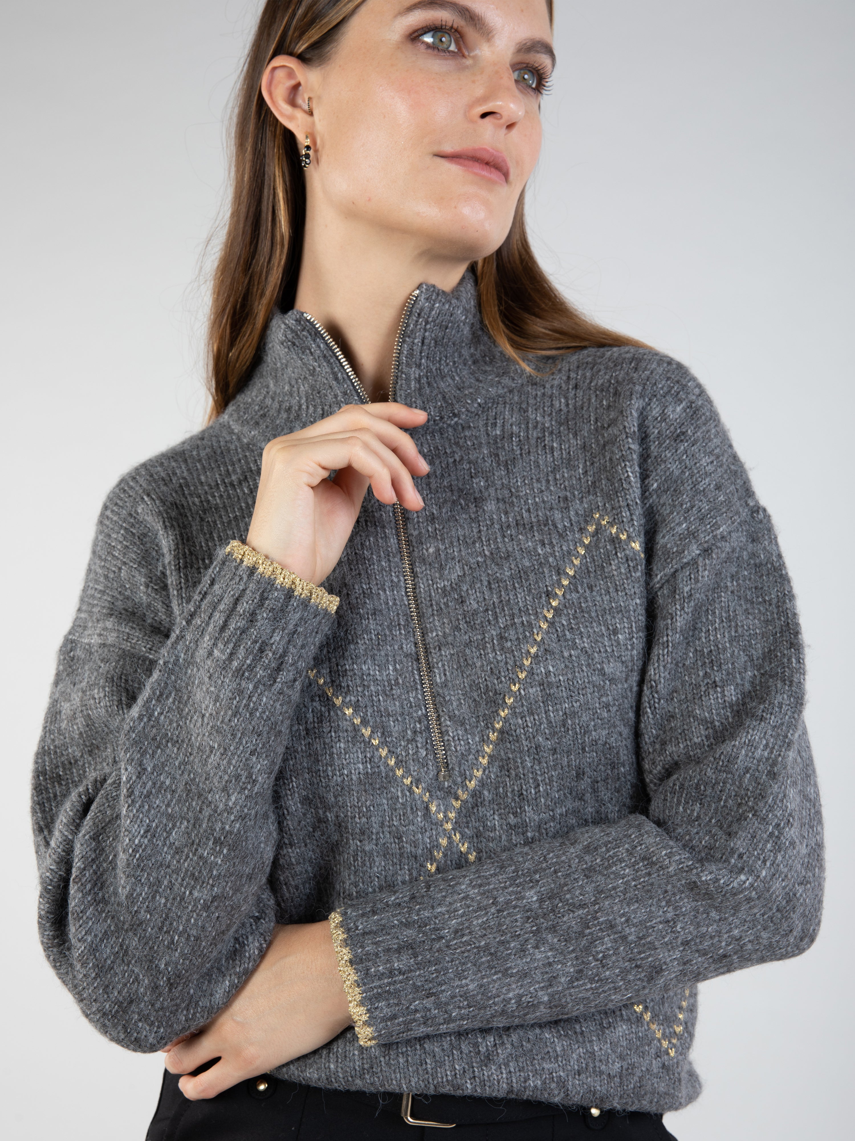 Le pull cosy mais stylé que vous allez adorer cet hiver ! Son zip en métal et son motif jacquard en font la pièce parfaite pour jouer les superpositions. Manches à bande lurex pour une touche scintillante qui attrape la lumière. Une coupe droite décontractée pour un confort chic, à porter partout !