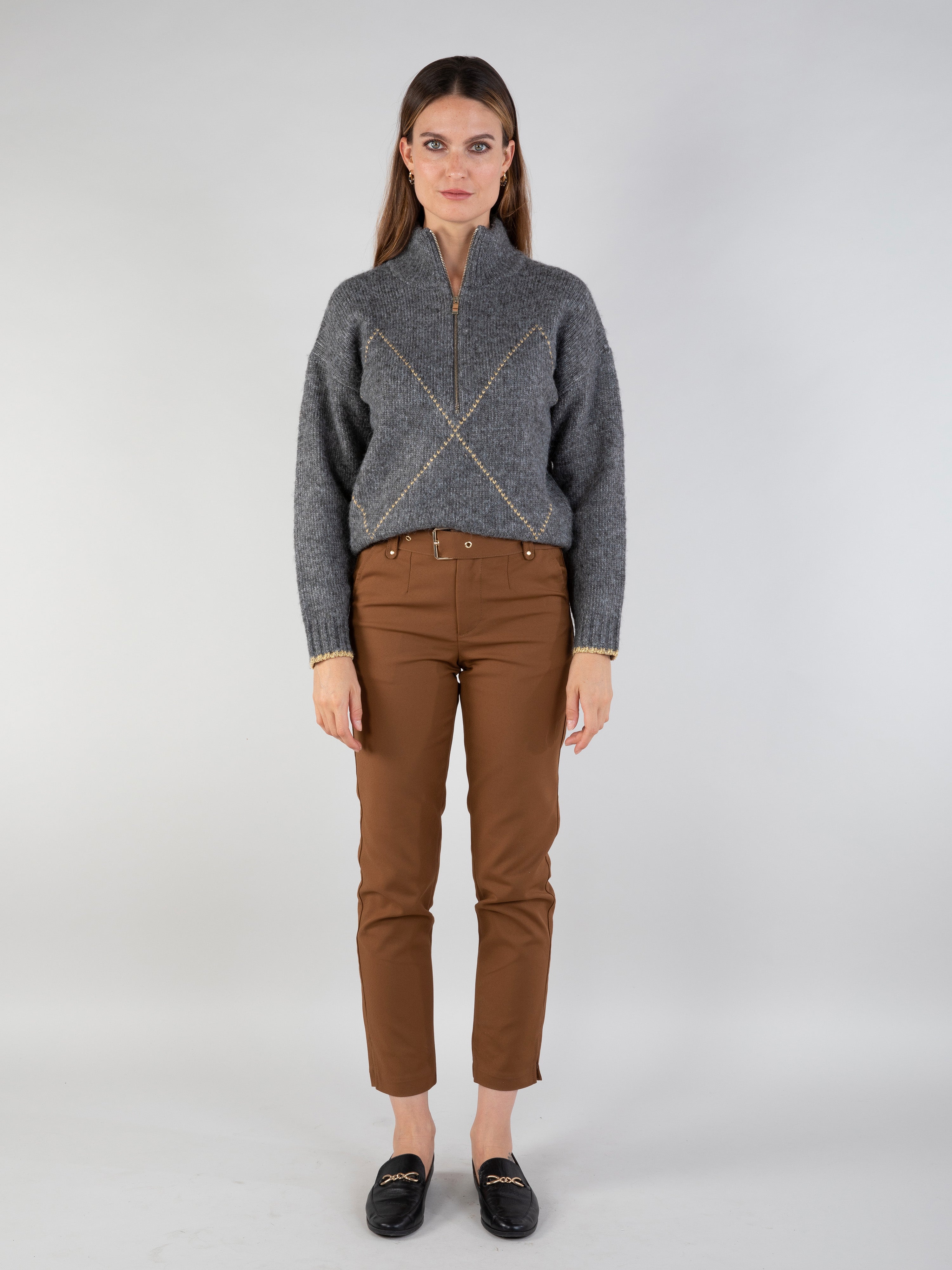 Pantalon cigarette ceinturé