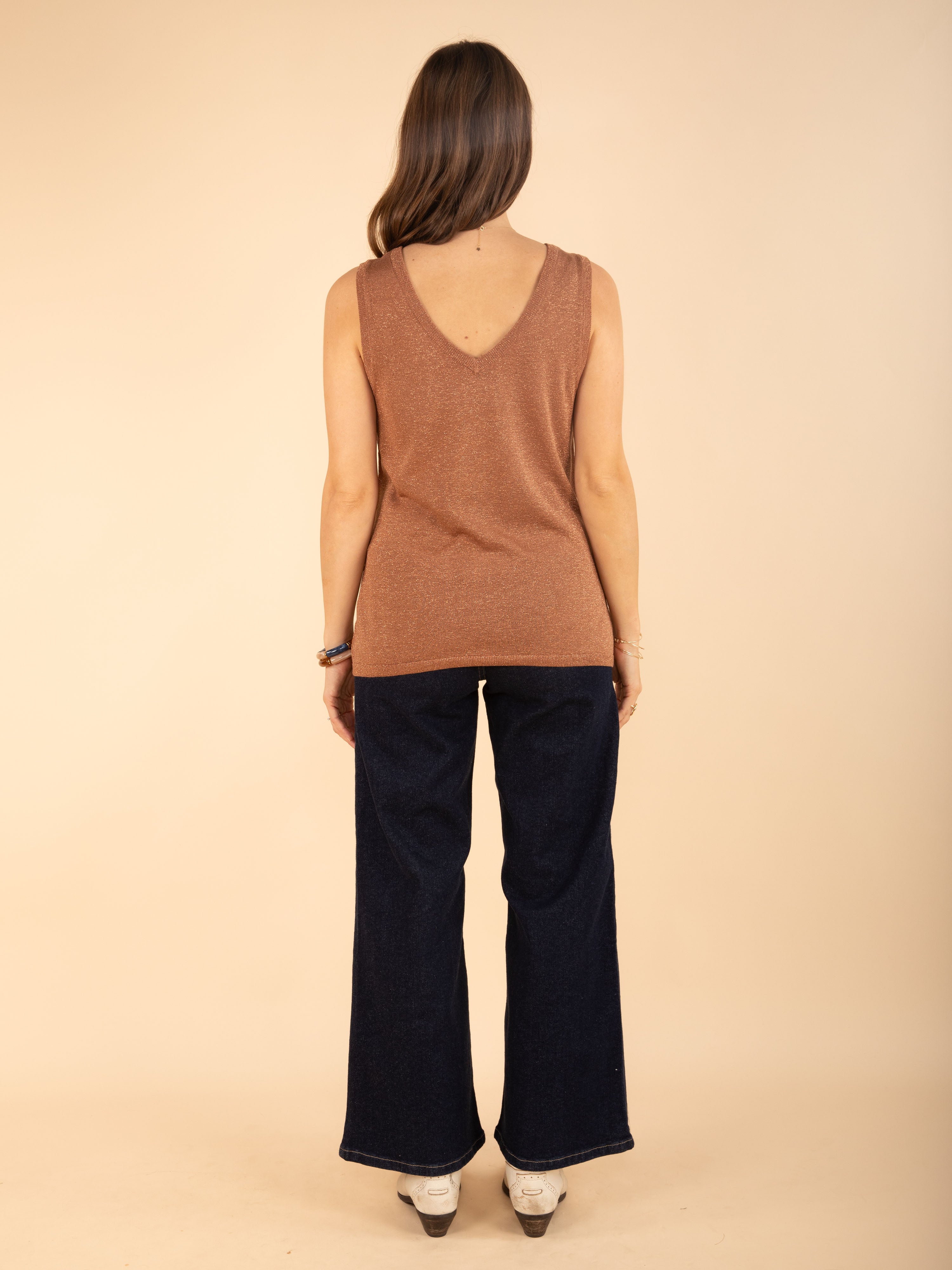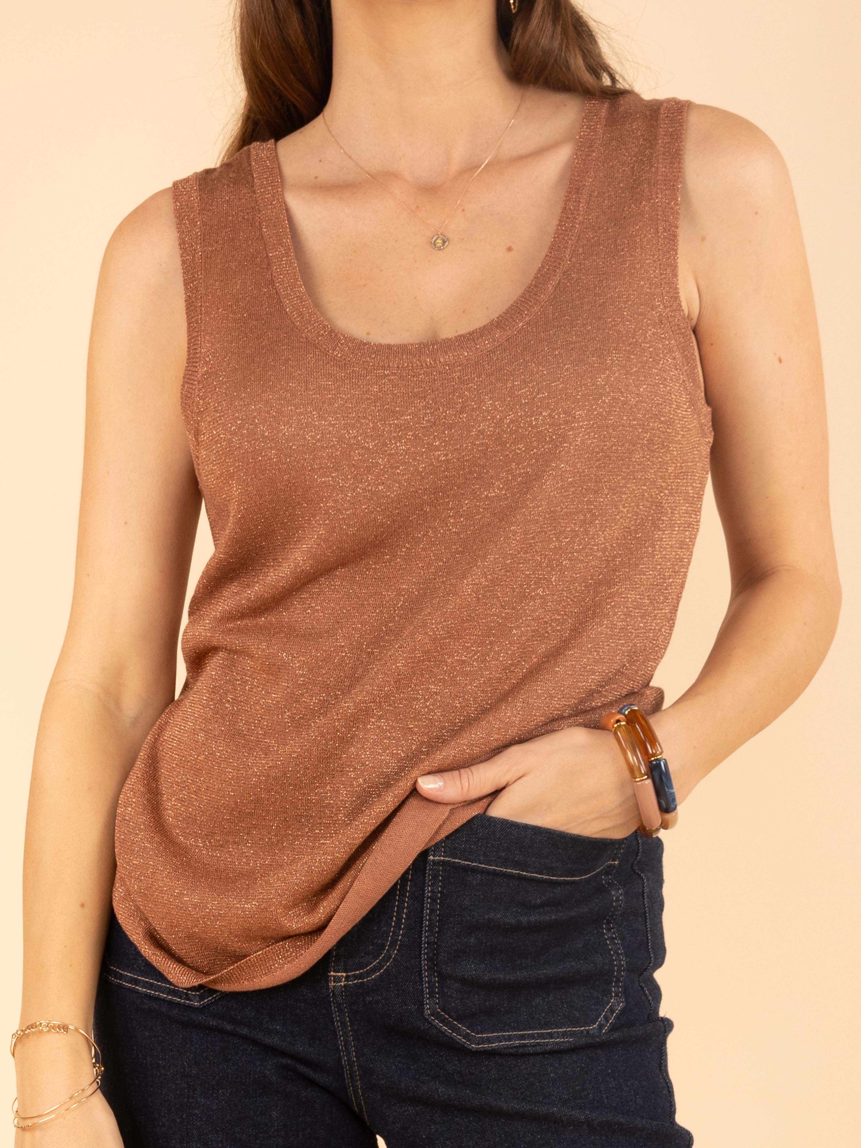 Craquez pour ce top irisé réversible, à maille lurex et encolure V ou ronde, pour un look scintillant et féminin.