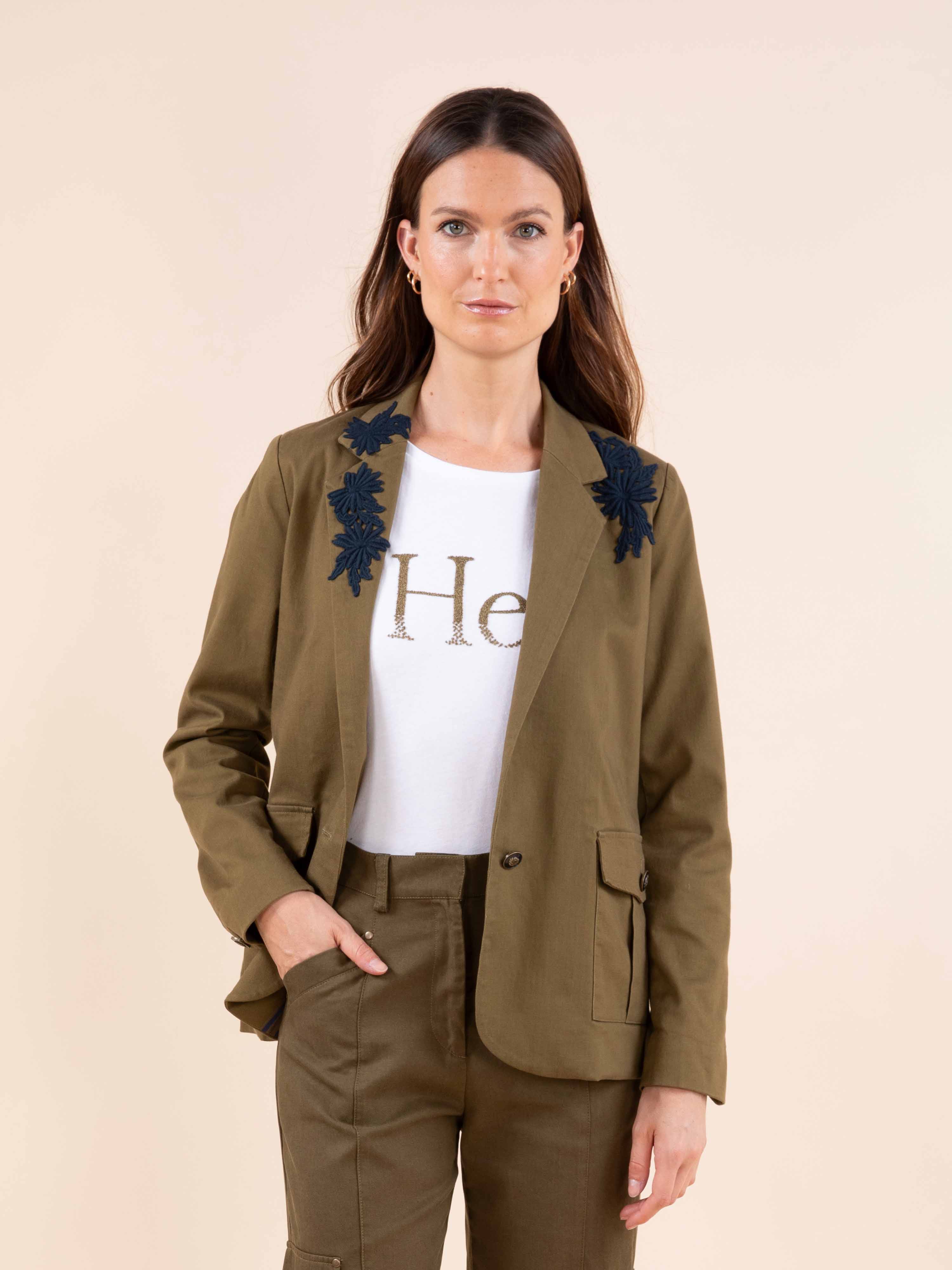 Sublimez votre allure avec ce blazer brodé à la coupe droite et finitions soignées.