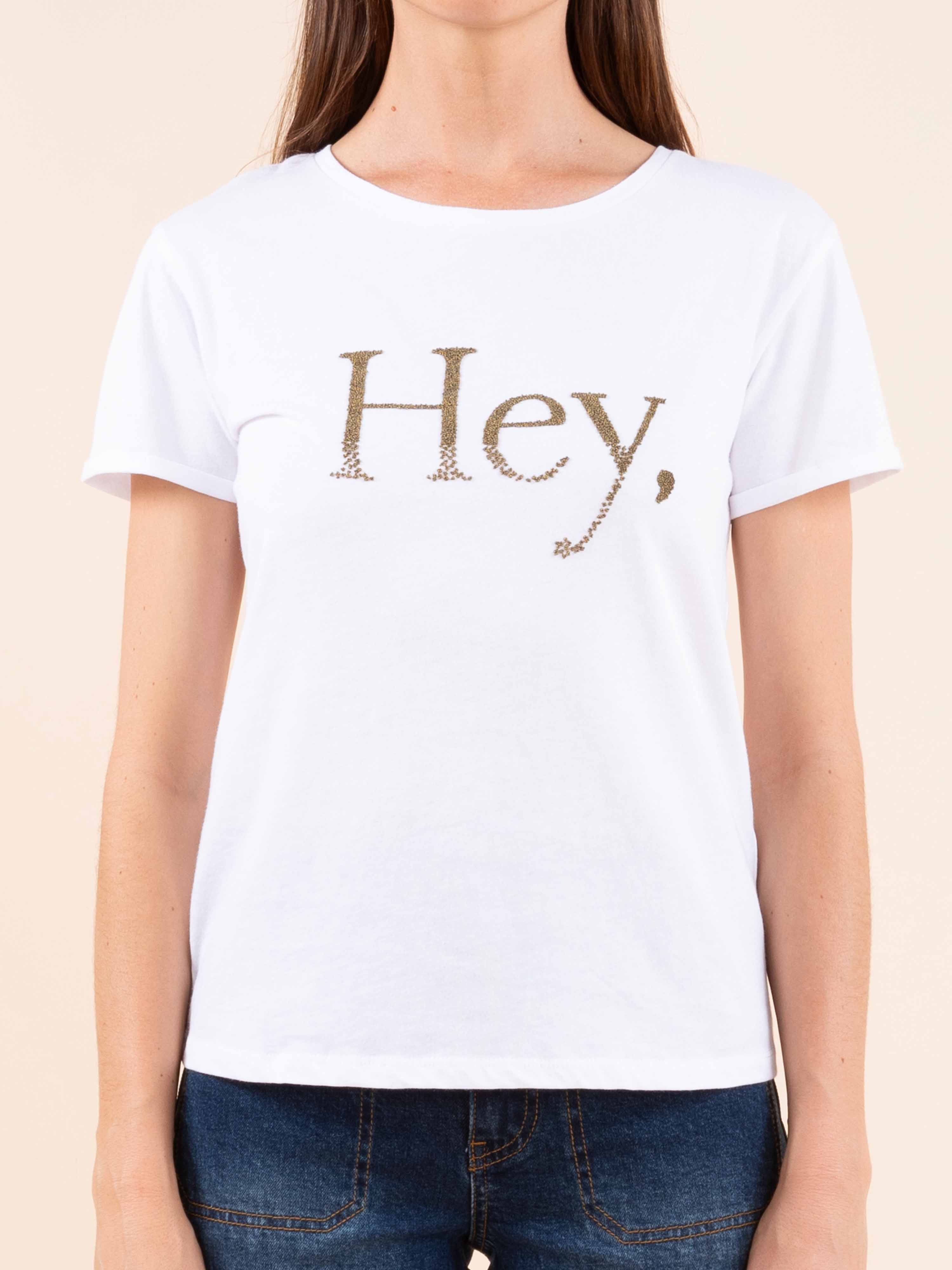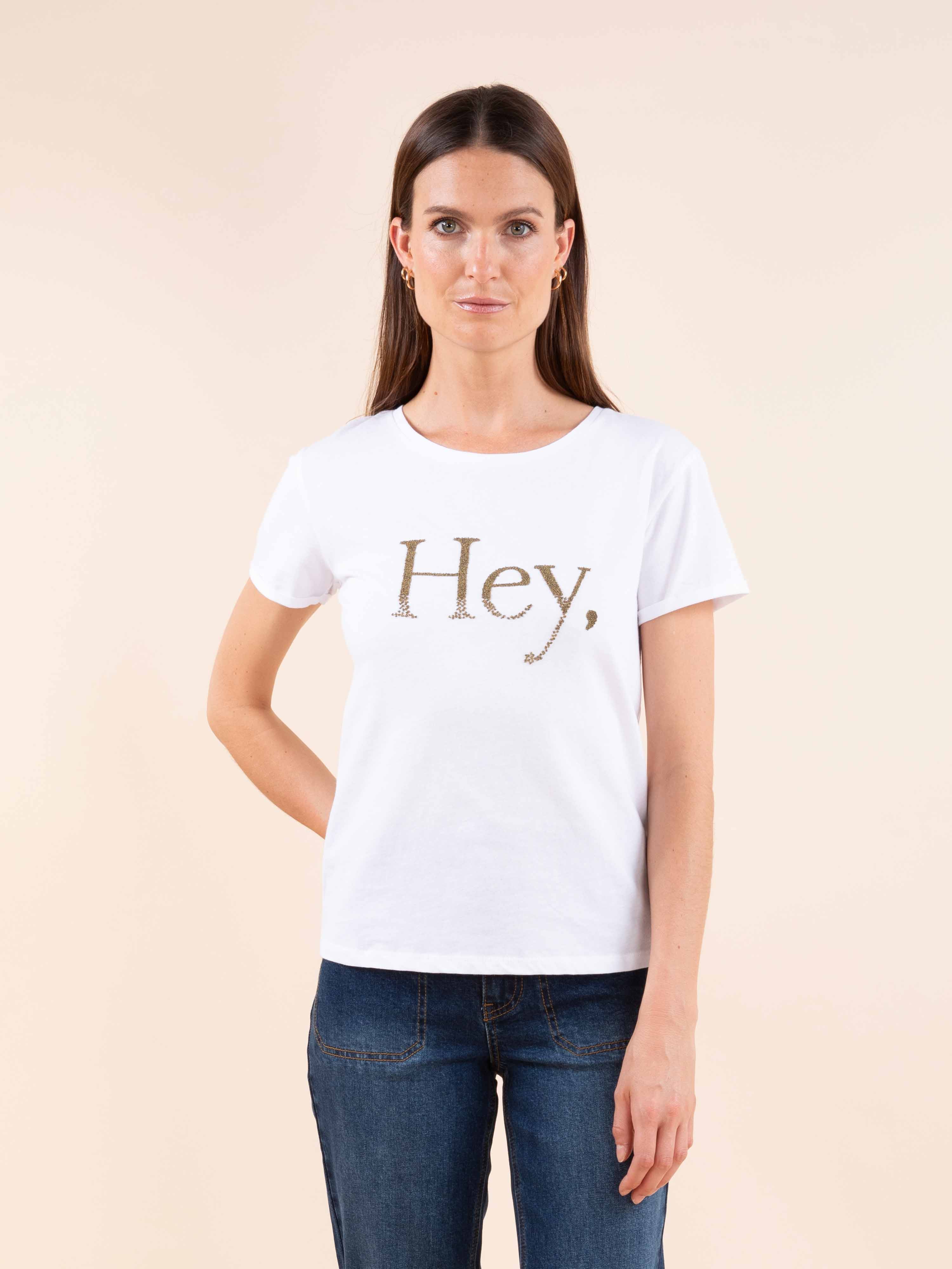Laissez-vous tenter par ce T-shirt col rond Hey, avec son print caviar délicat et ses manches courtes à revers pour un look casual chic.
