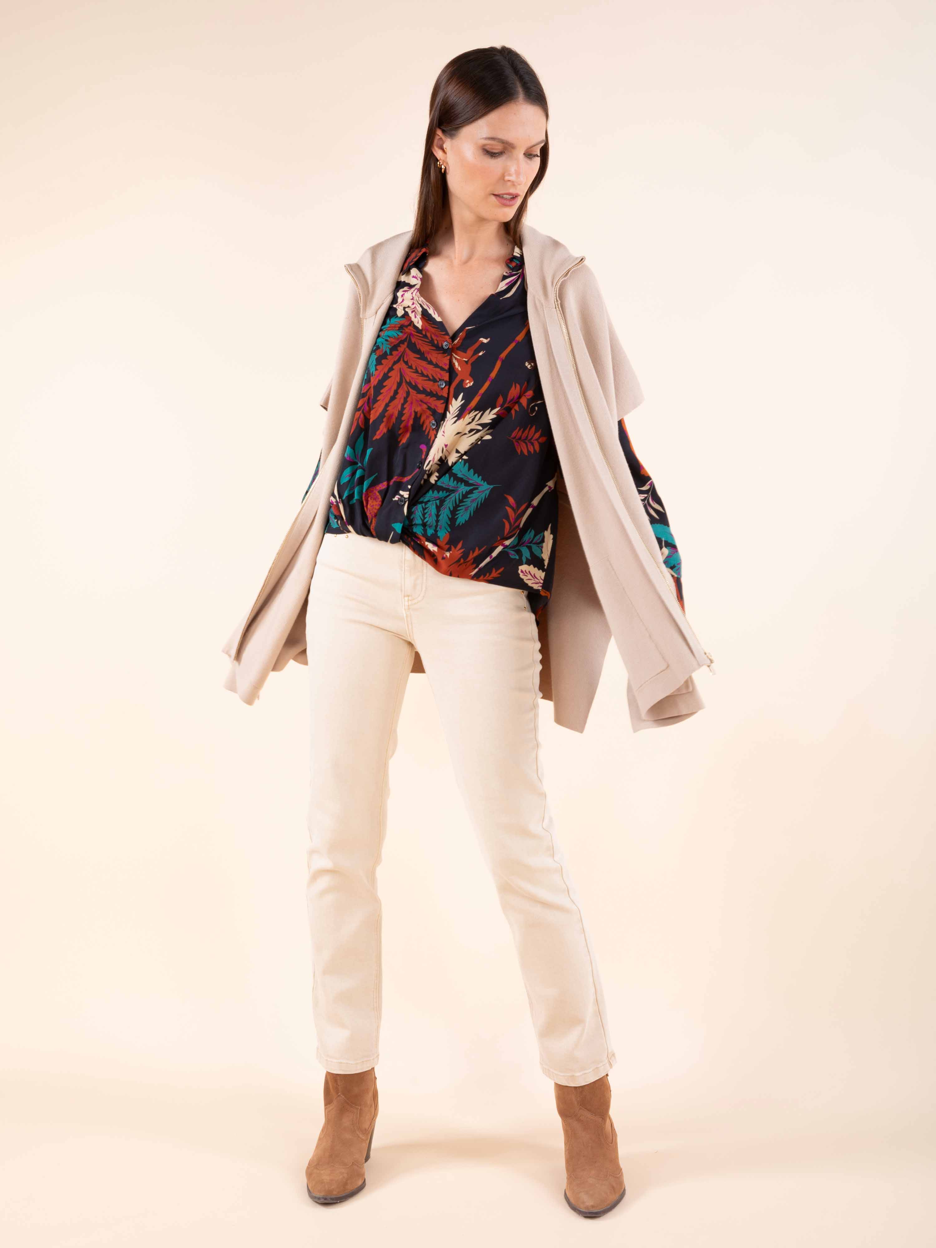 Ce produit taille grand. Nous vous conseillons de prendre une taille inférieure à votre taille habituelle. Anais mesure 1,76m et porte une taille 34.