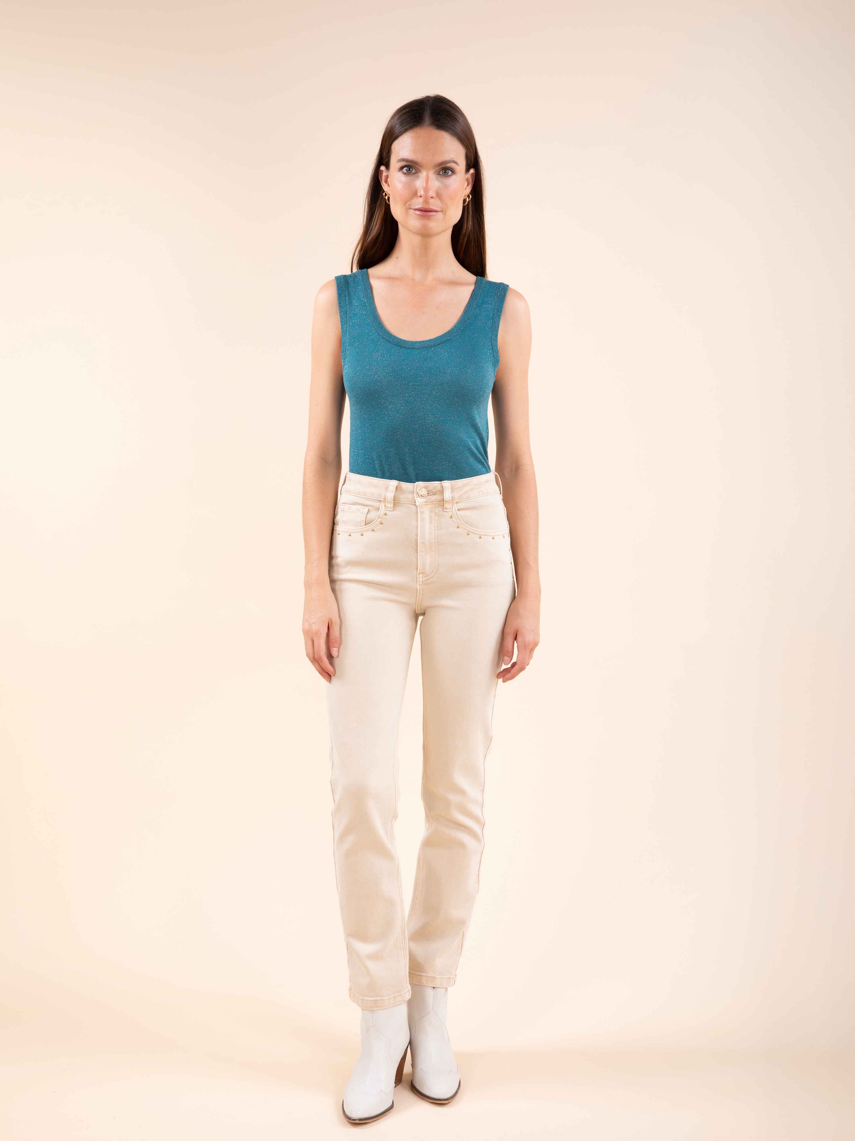 Taille petit. Anais mesure 1,76m et porte une taille 34.