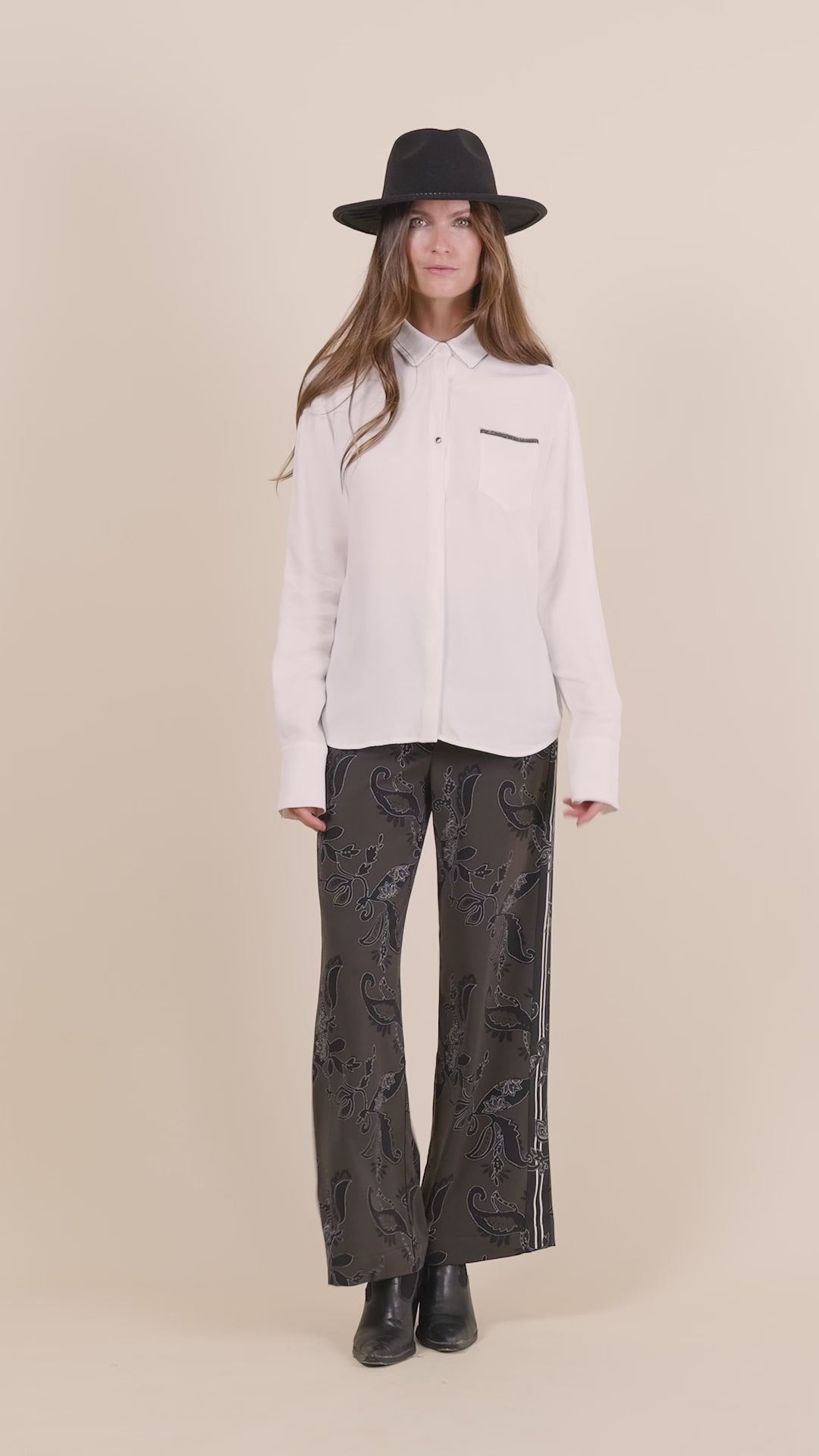 Craquez pour cette chemise aux détails chaînettes, alliant galons élégants et boutonnage caché pour une allure raffinée.