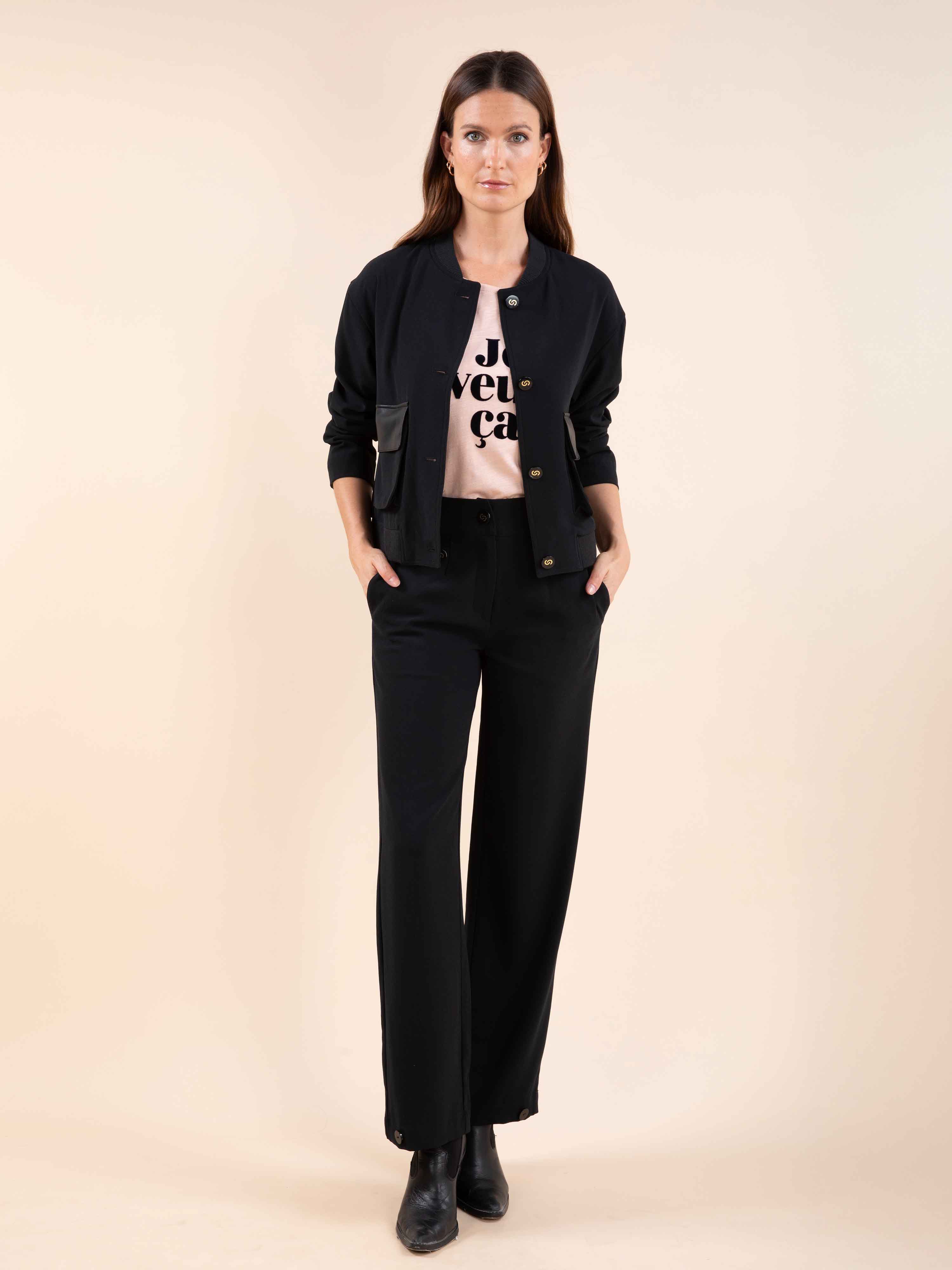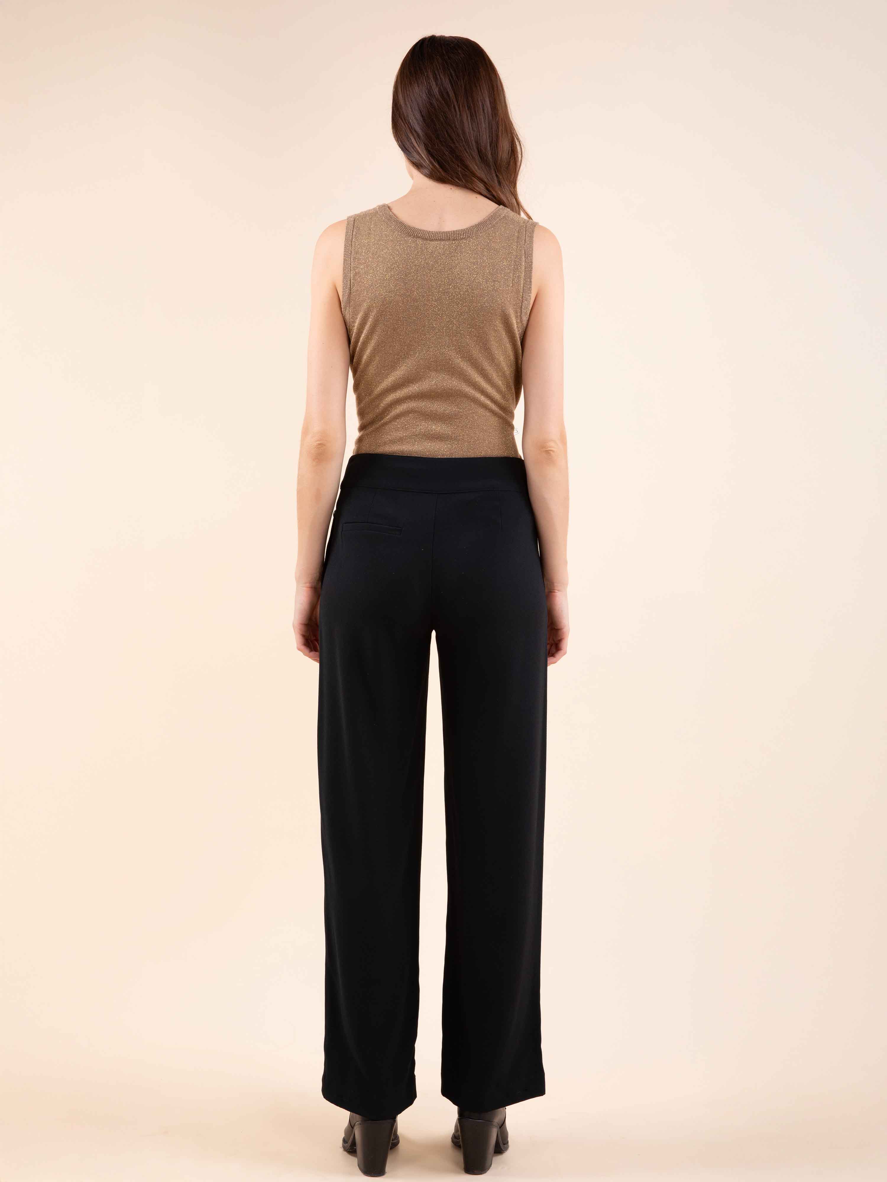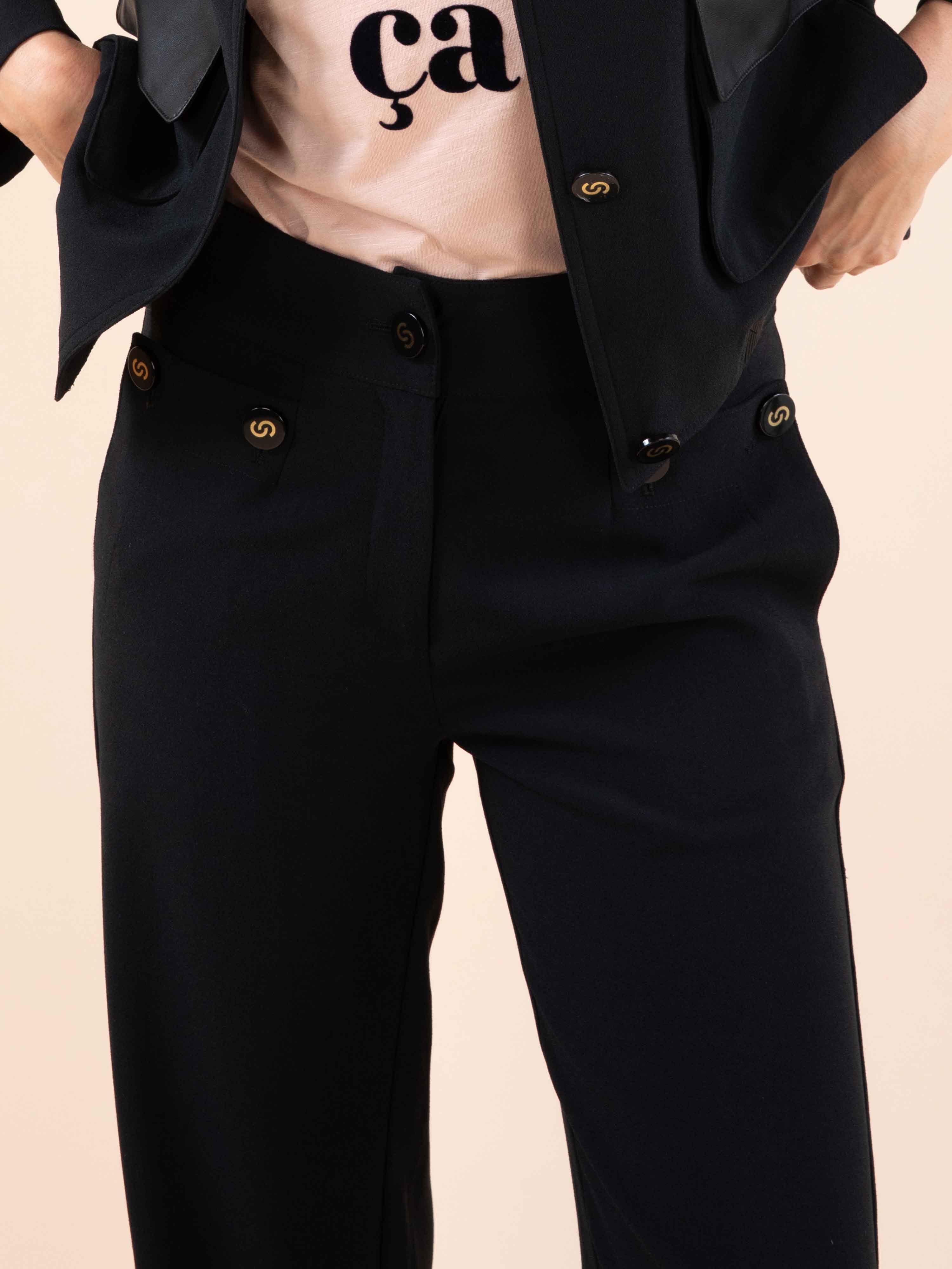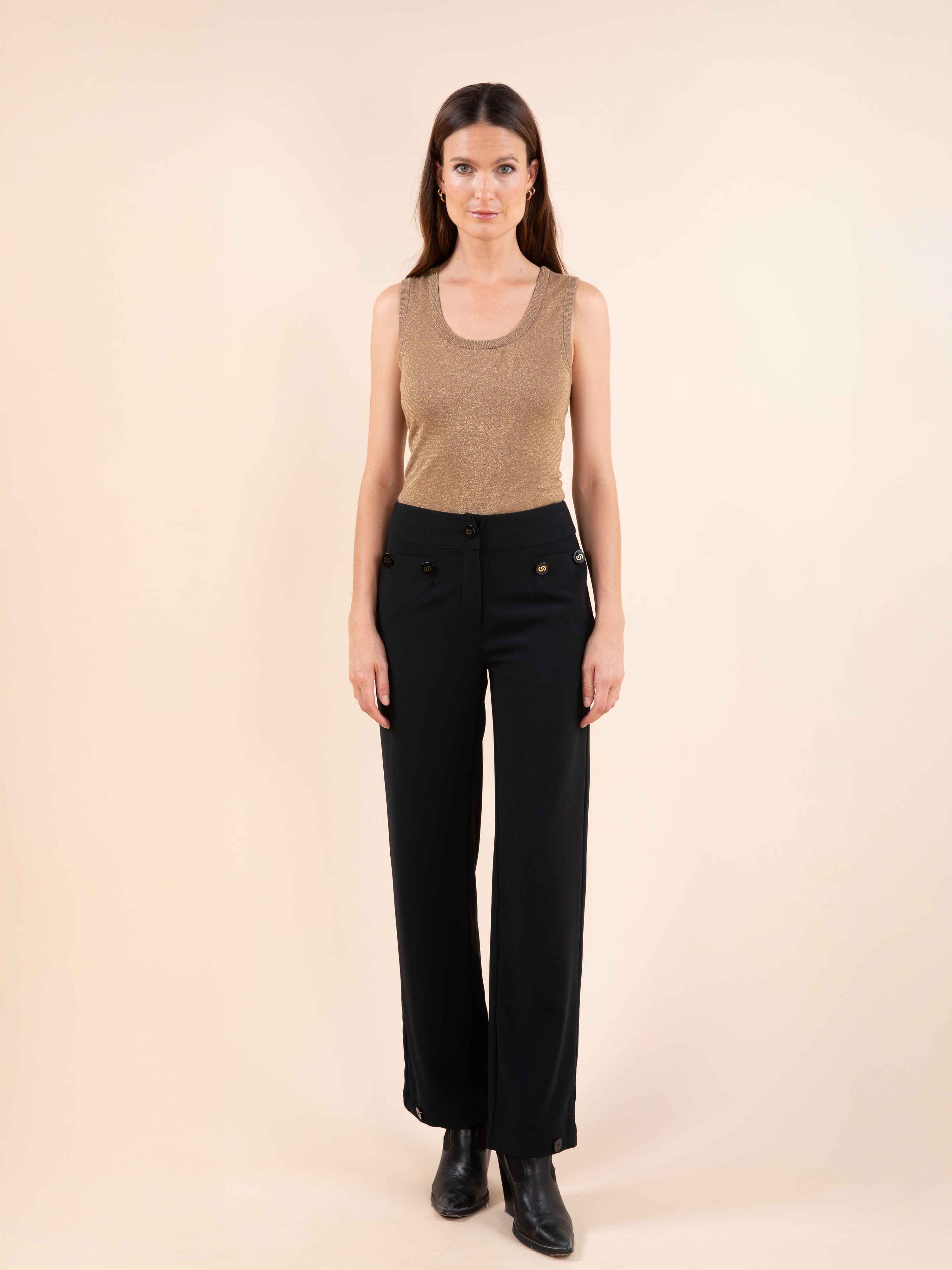 Optez pour l’élégance avec ce pantalon droit habillé, doté d’une ceinture large et d’un zip décoré d’un bouton fantaisie. Ses détails soignés et sa coupe droite subliment votre silhouette.