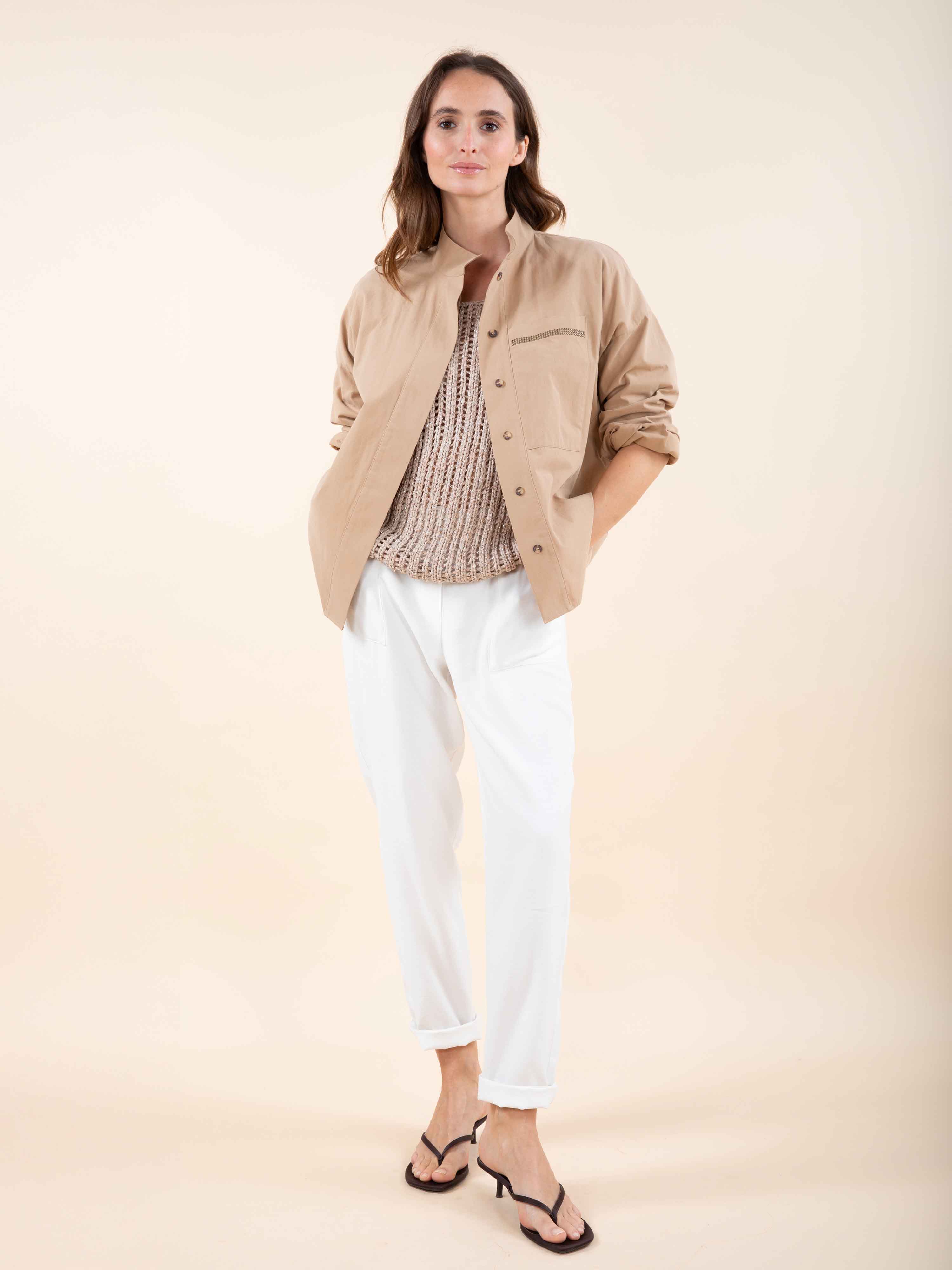 Ce pull en fil ruban avec lurex argent offre un tricotage effet cotte qui ajoute de la texture et du style.