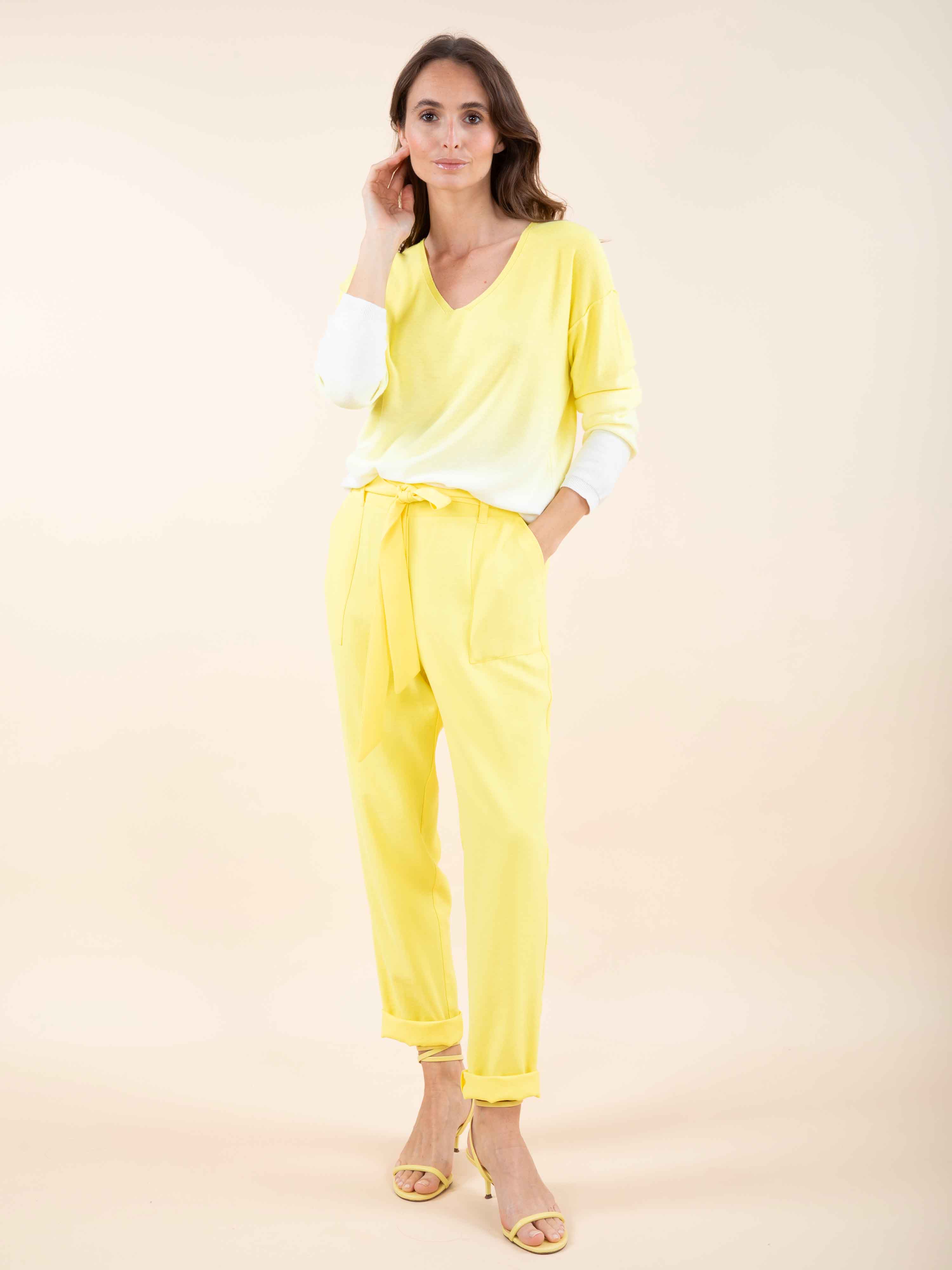 Ce pantalon fluide à la coupe droite est parfait pour un look à la fois élégant et décontracté, avec sa ceinture élastiquée au dos et sa ceinture amovible à nouer pour un ajustement personnalisé.