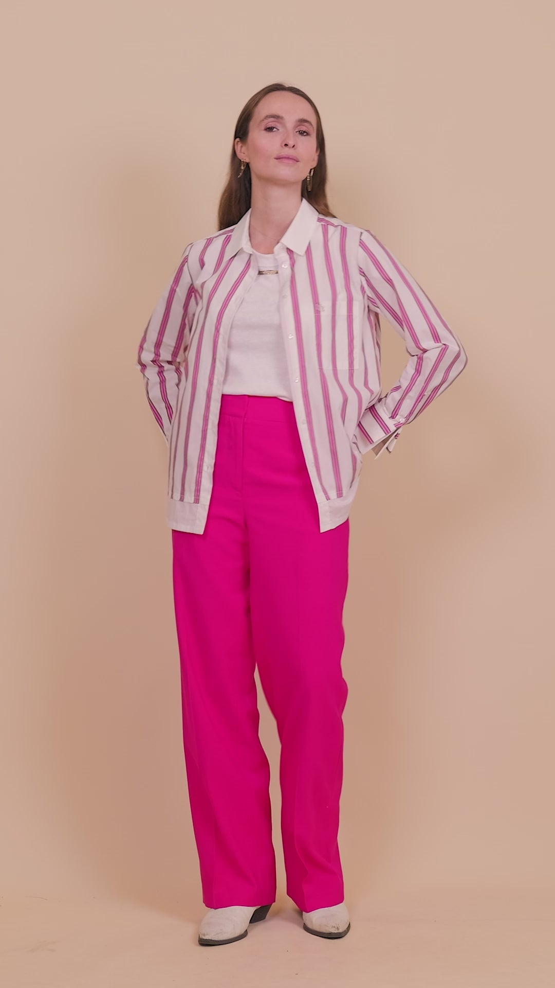 Ce produit taille normalement. Nous vous conseillons de prendre votre taille habituelle. Maylis mesure 1,72m et porte une taille 36. Charlotte mesure 1,75m et porte une taille 34.