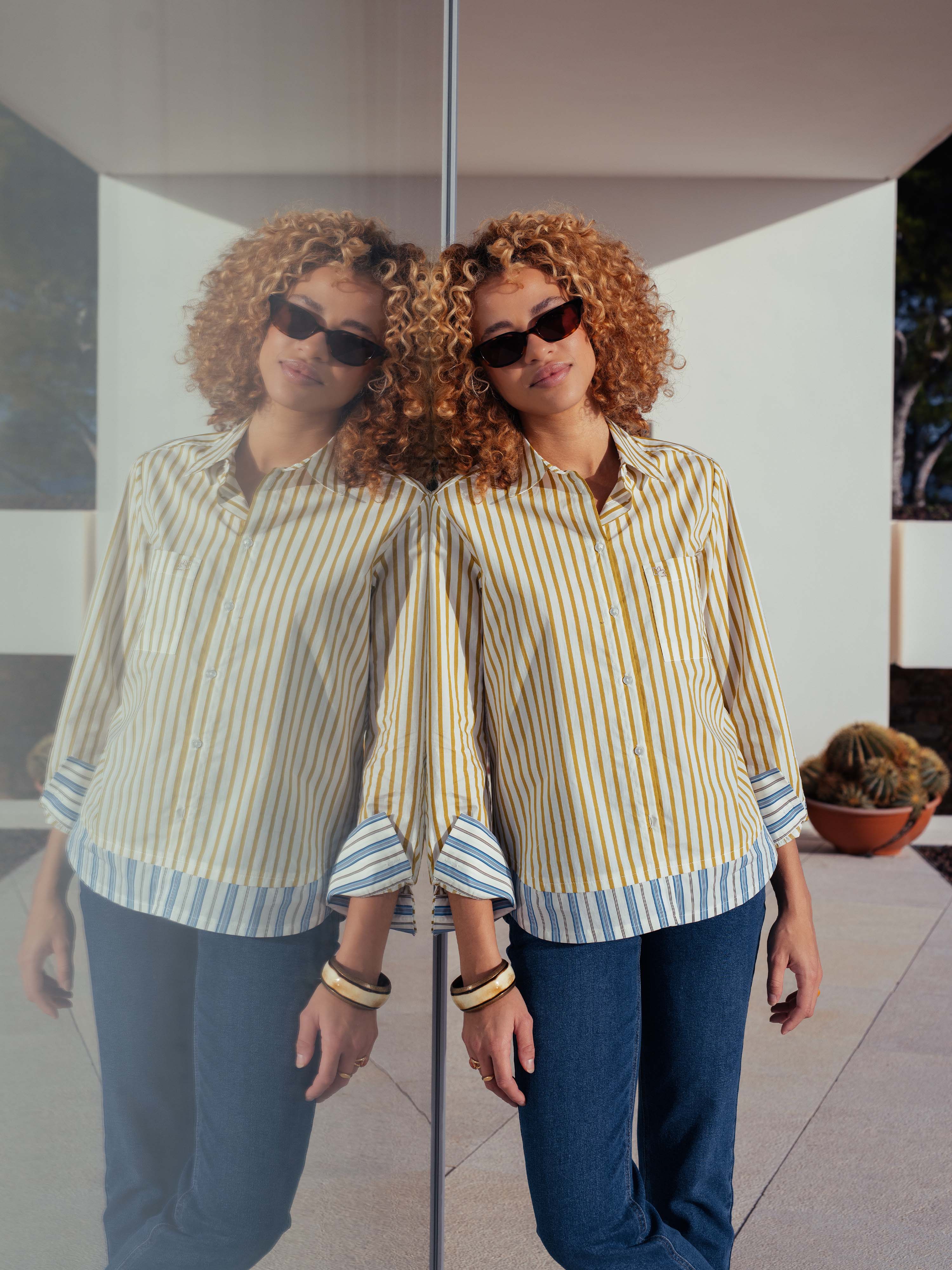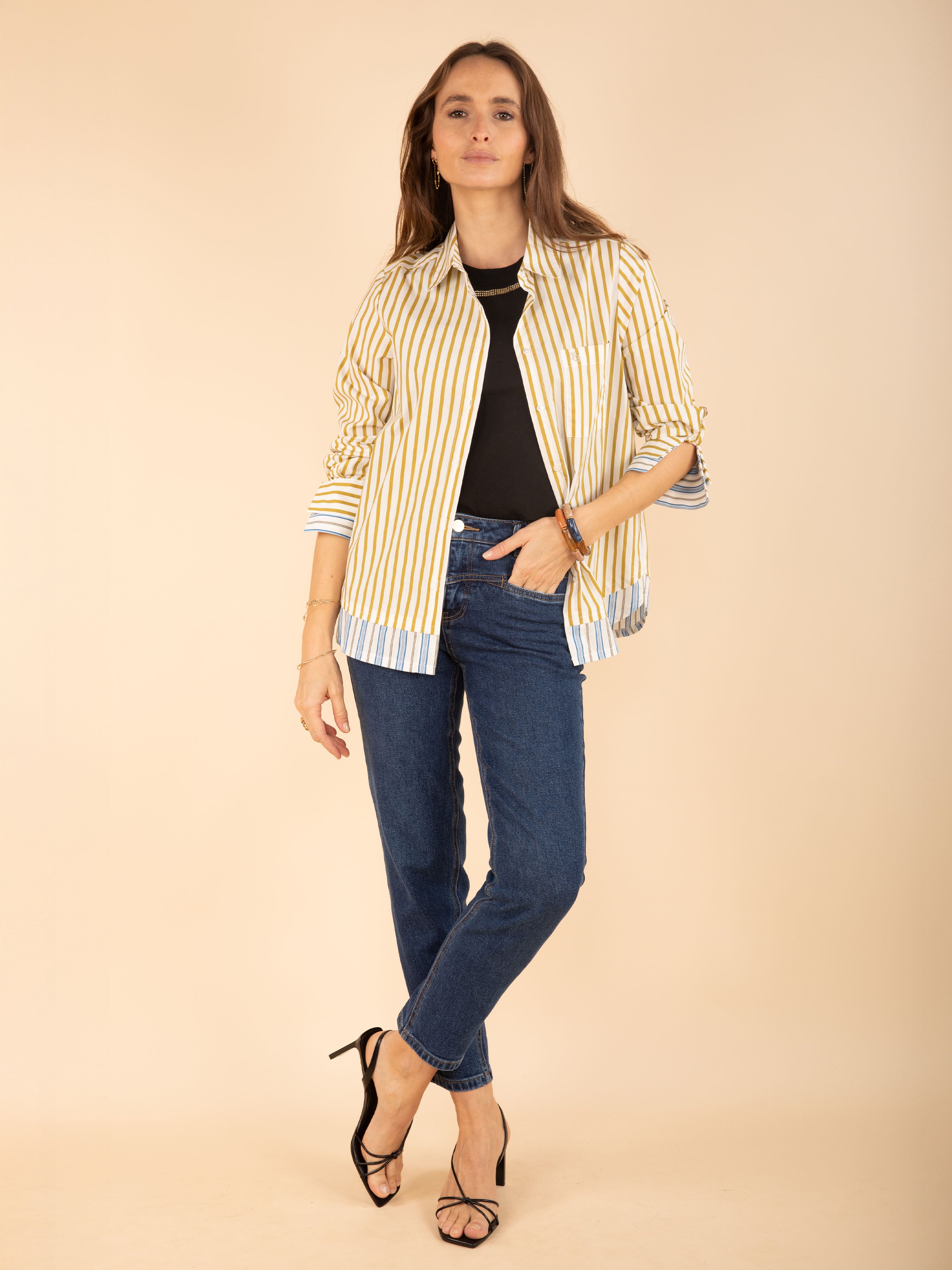 Chemise 2-en-1 avecempiècements bas, col et poignets contrastés