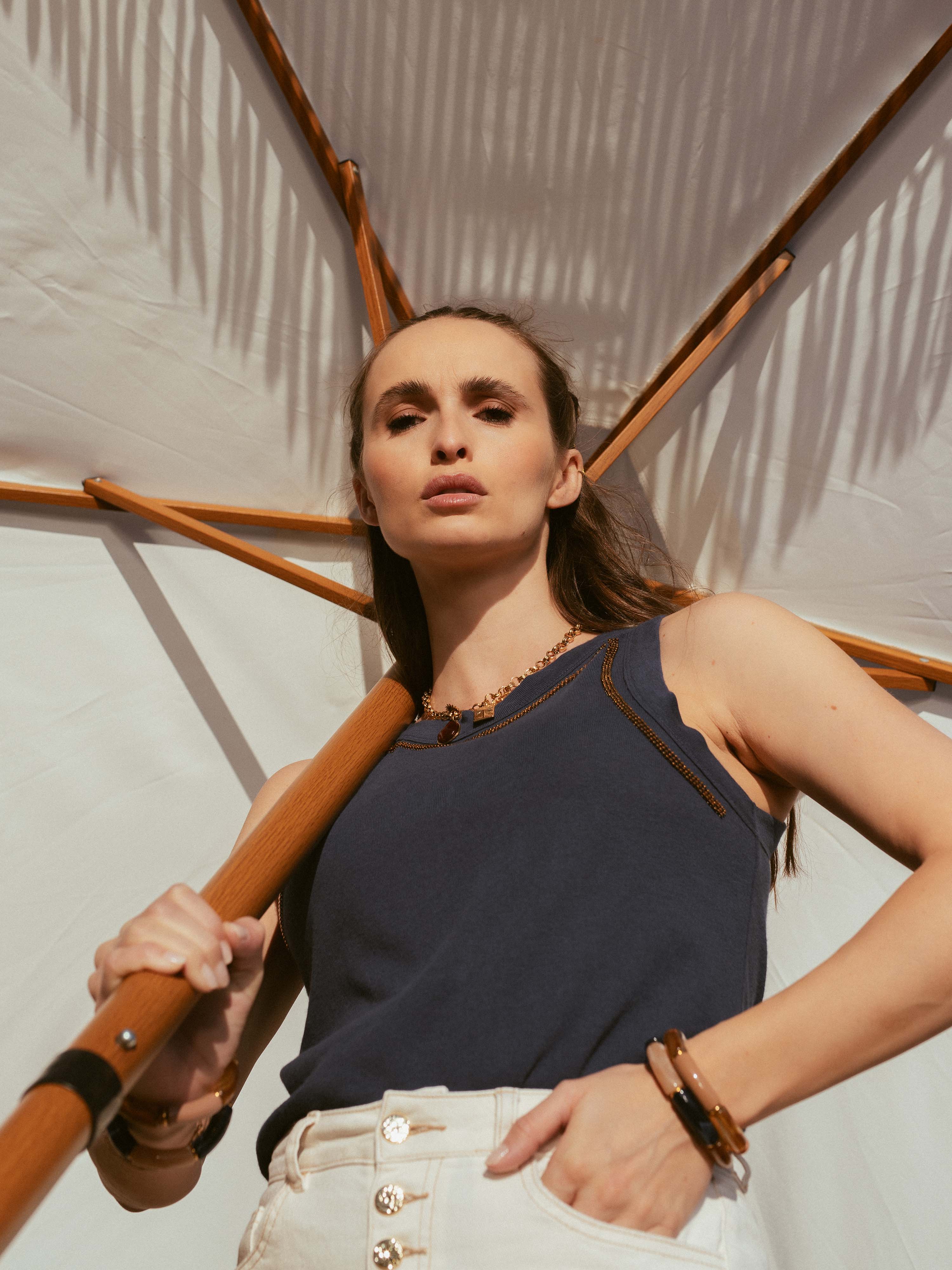 Optez pour ce débardeur élégant, sublimé par ses emmanchures et encolure ornées de perles pour une touche sophistiquée et féminine.