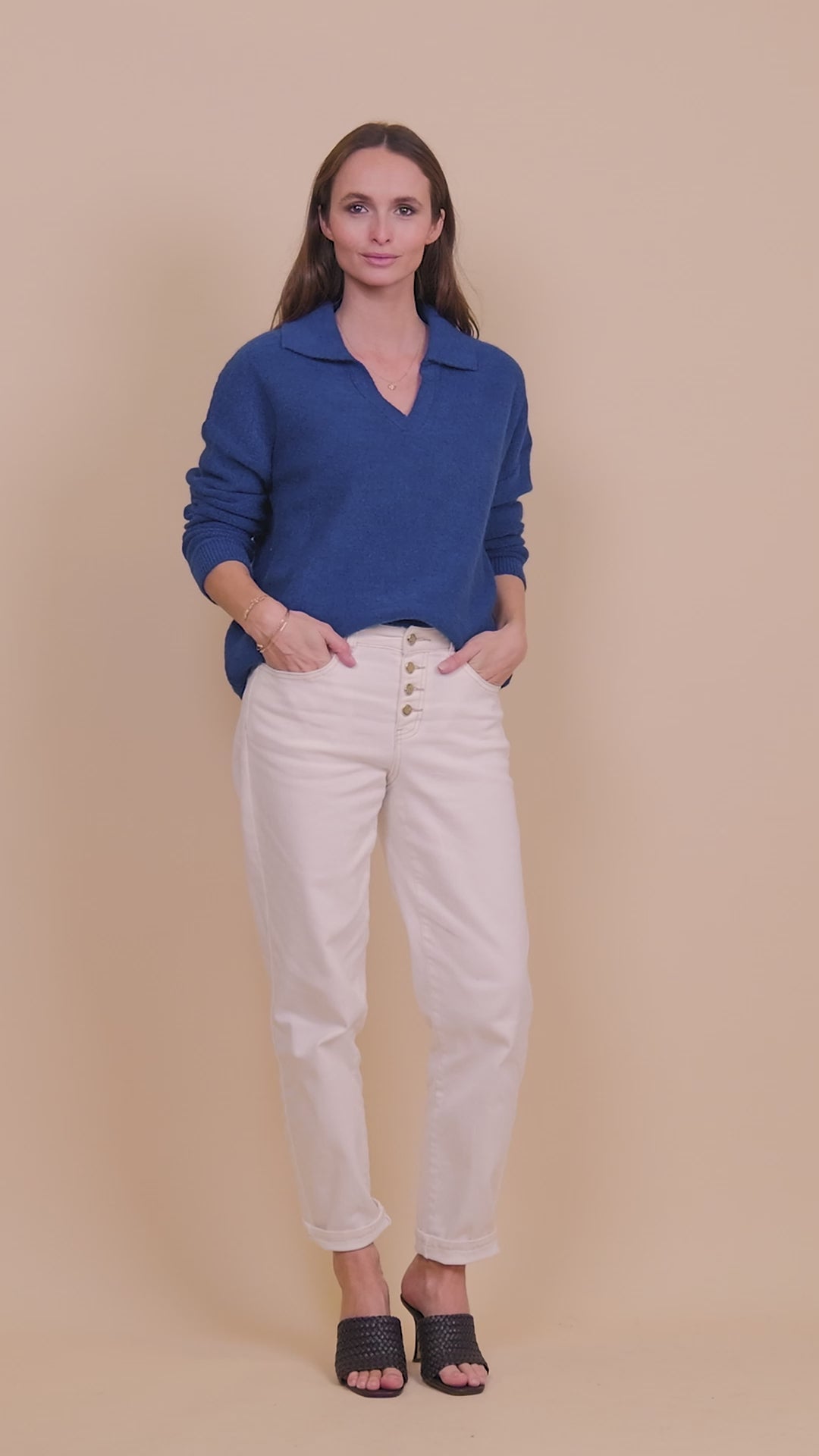 Pour un porté confort, nous vous conseillons de prendre votre taille habituelle. Pour un porté ajusté, prendre une taille en dessous de votre taille habituelle. Maylis mesure 1,72m et porte une taille 1. Johanna mesure 1,74m et porte une taille 1.