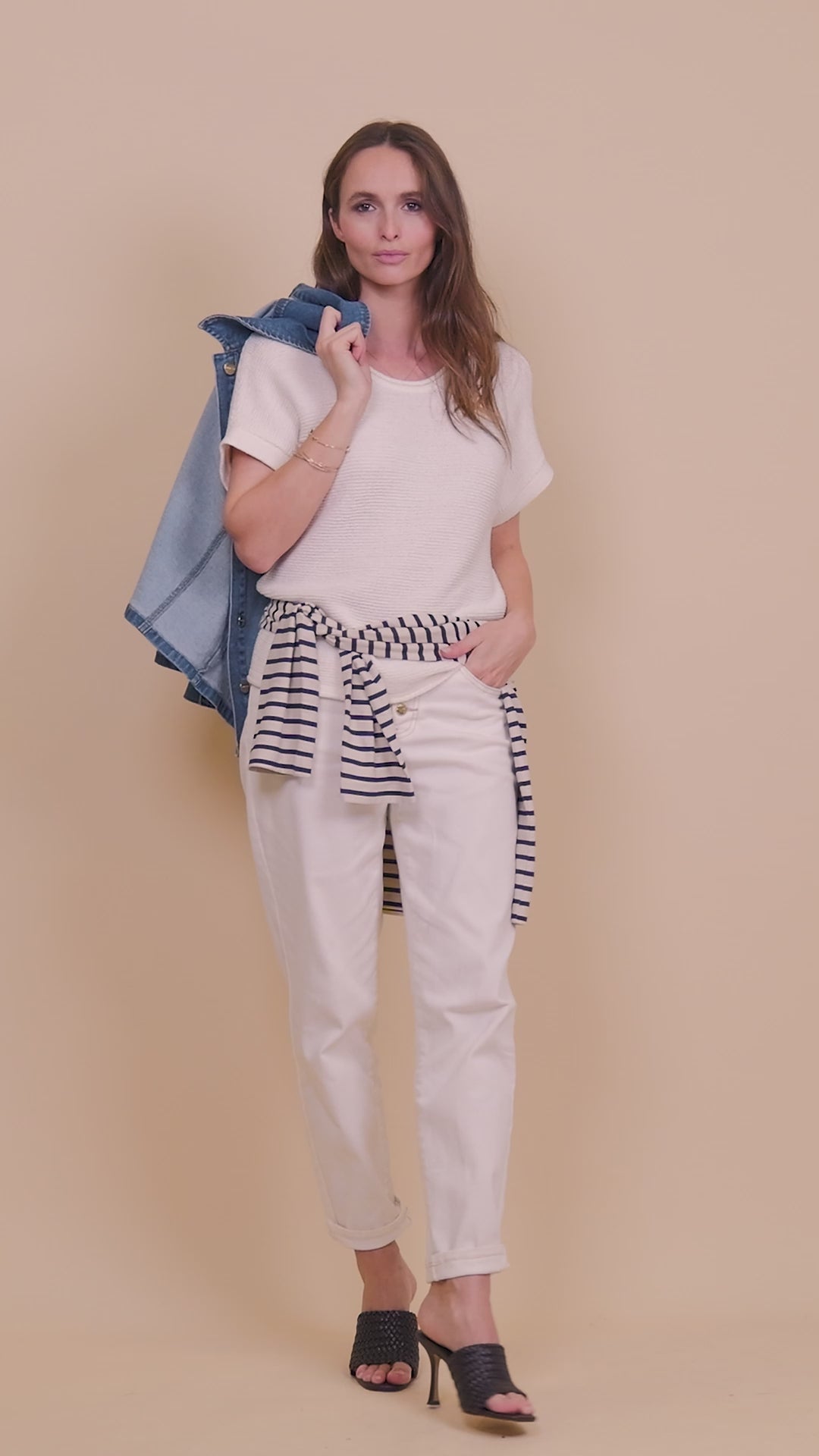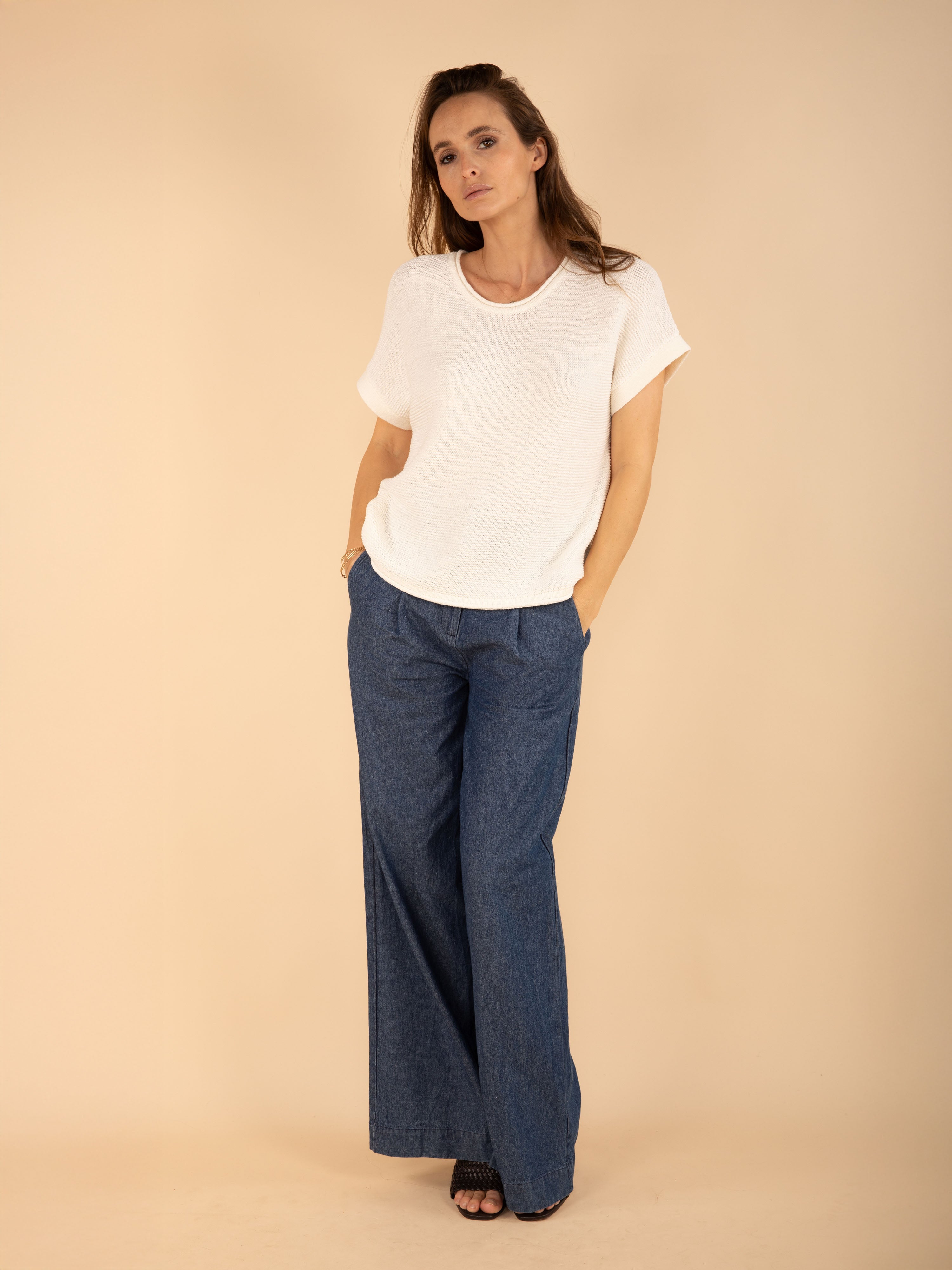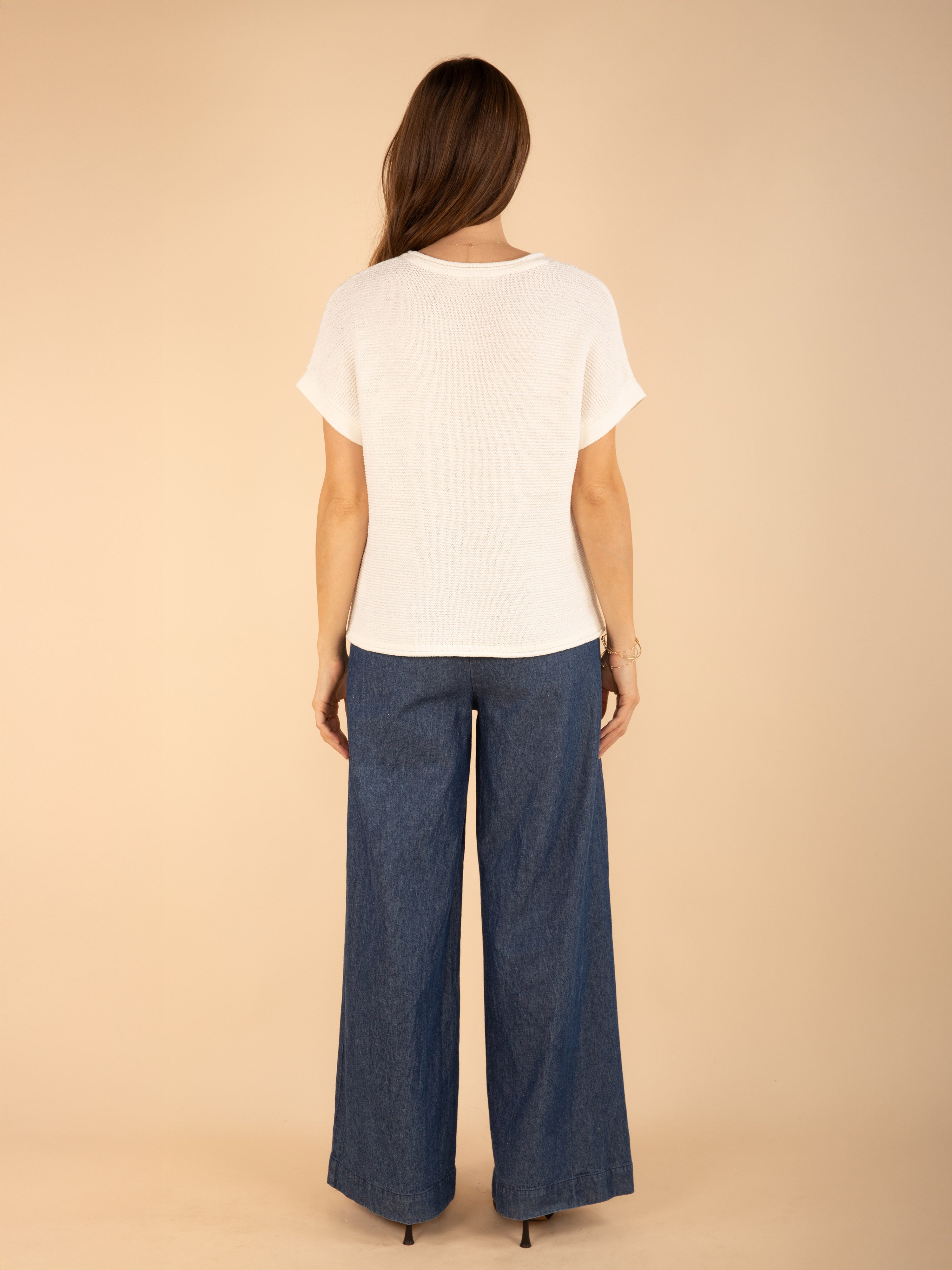 Optez pour ce pull manches courtes, sublimé par ses finitions bord-côte pour une silhouette moderne et épurée.