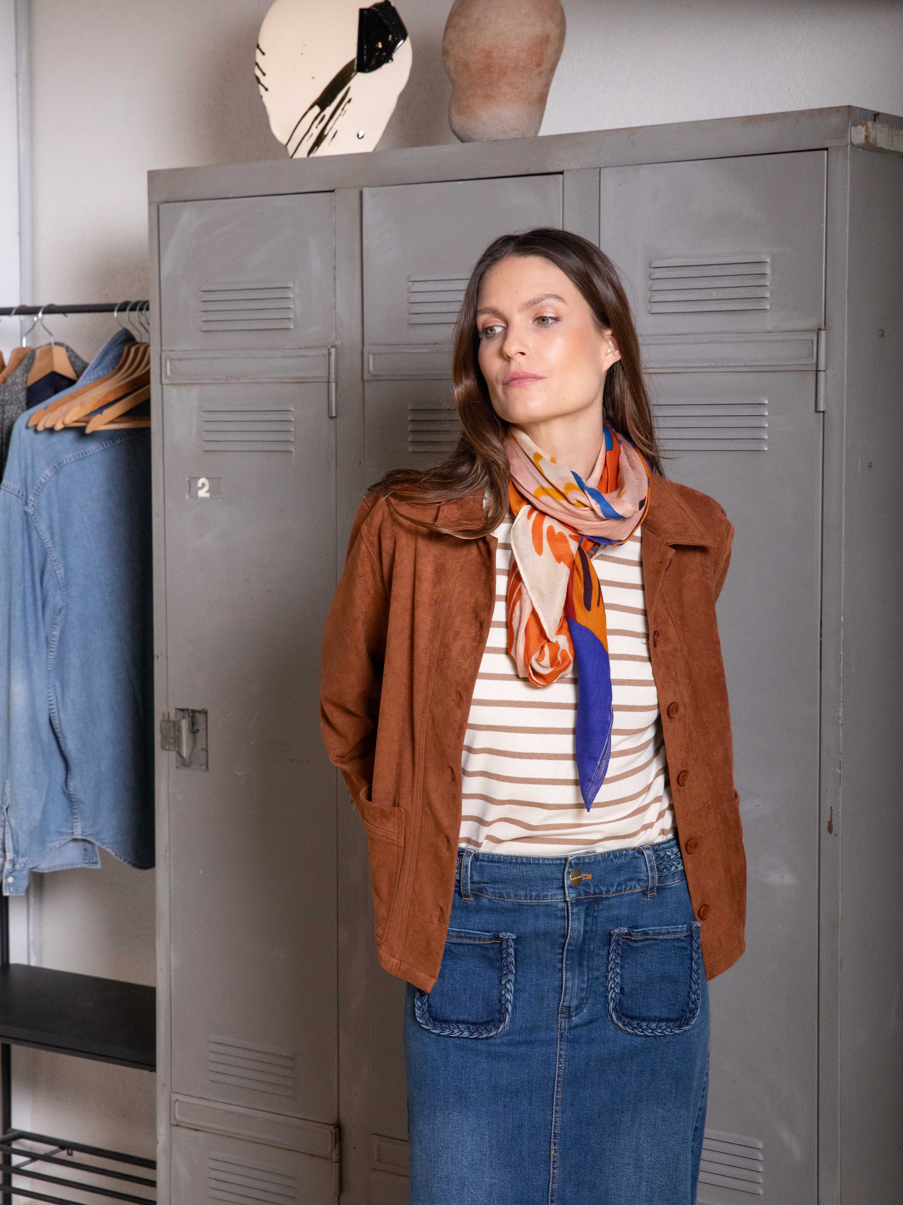Ce produit taille normalement. Nous vous conseillons de prendre votre taille habituelle. Maylis mesure 1,72m et porte une taille 1. Johanna mesure 1,74m et porte une taille 1.
